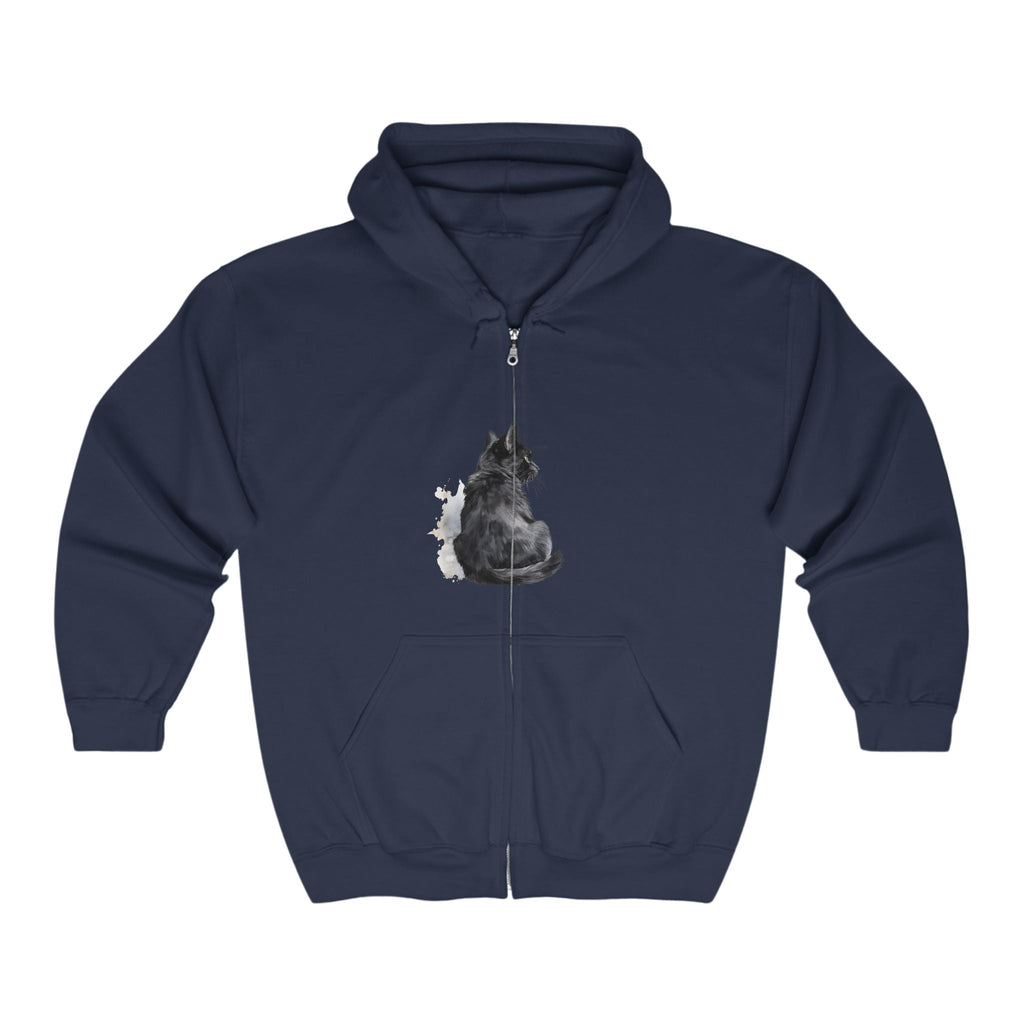 Felpa con cappuccio con stampa acquerello di gatto nero - Comfort mistico per gli amanti dei gatti