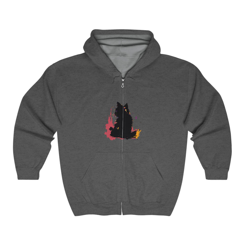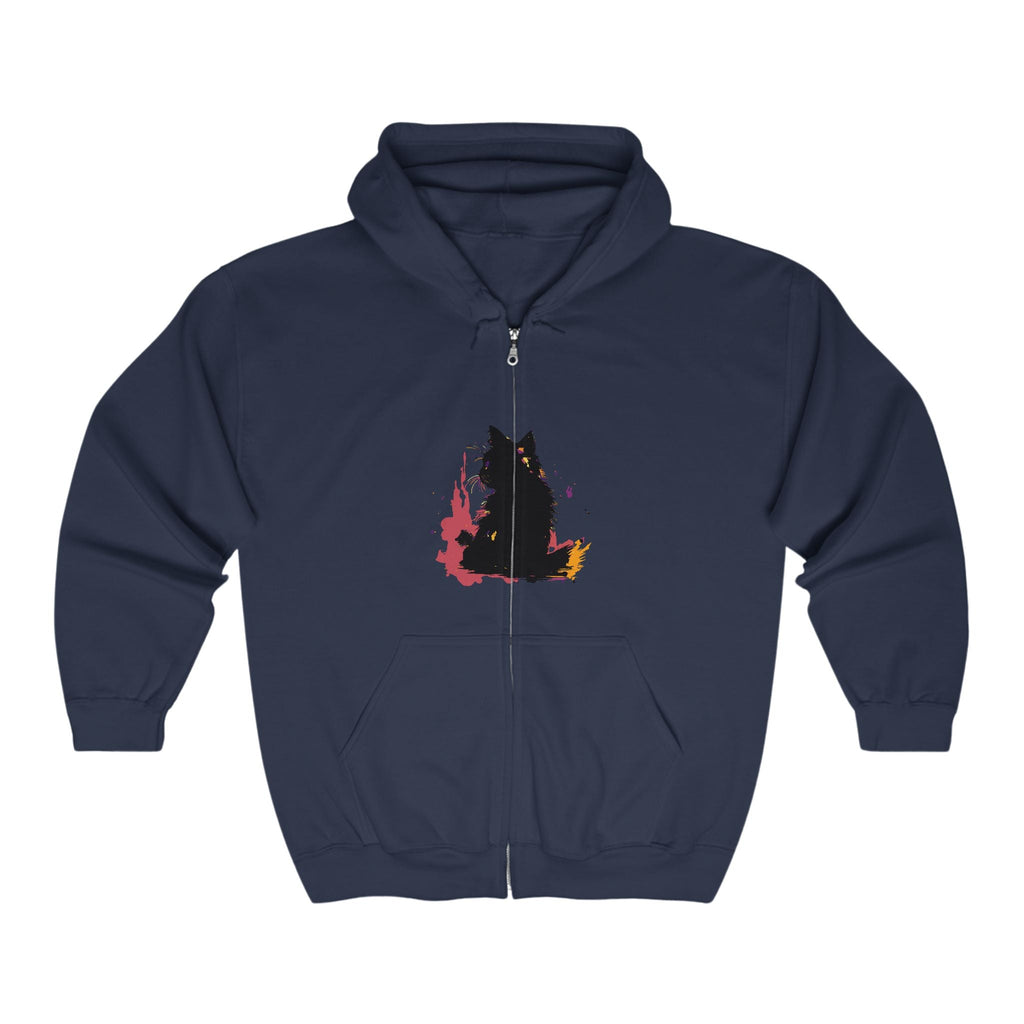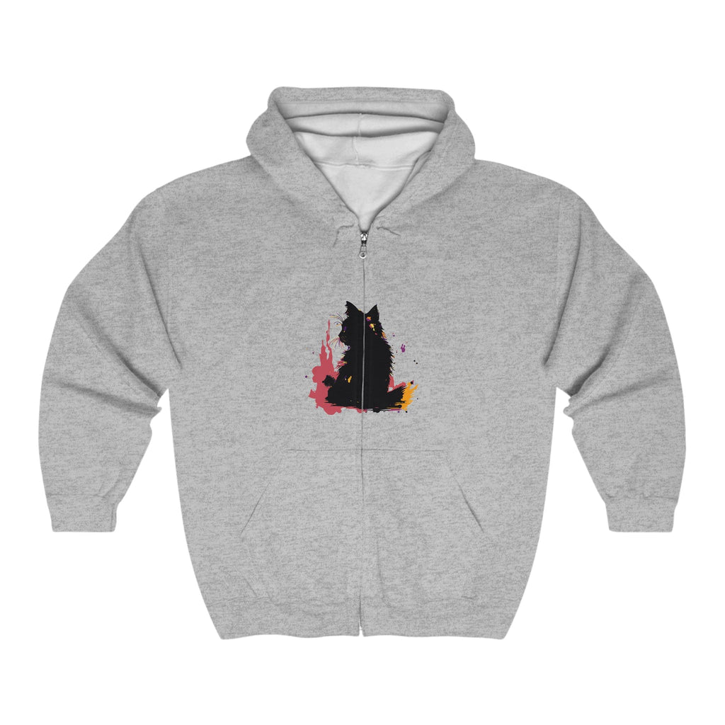 Felpa con cappuccio acquerello gatto nero mistico