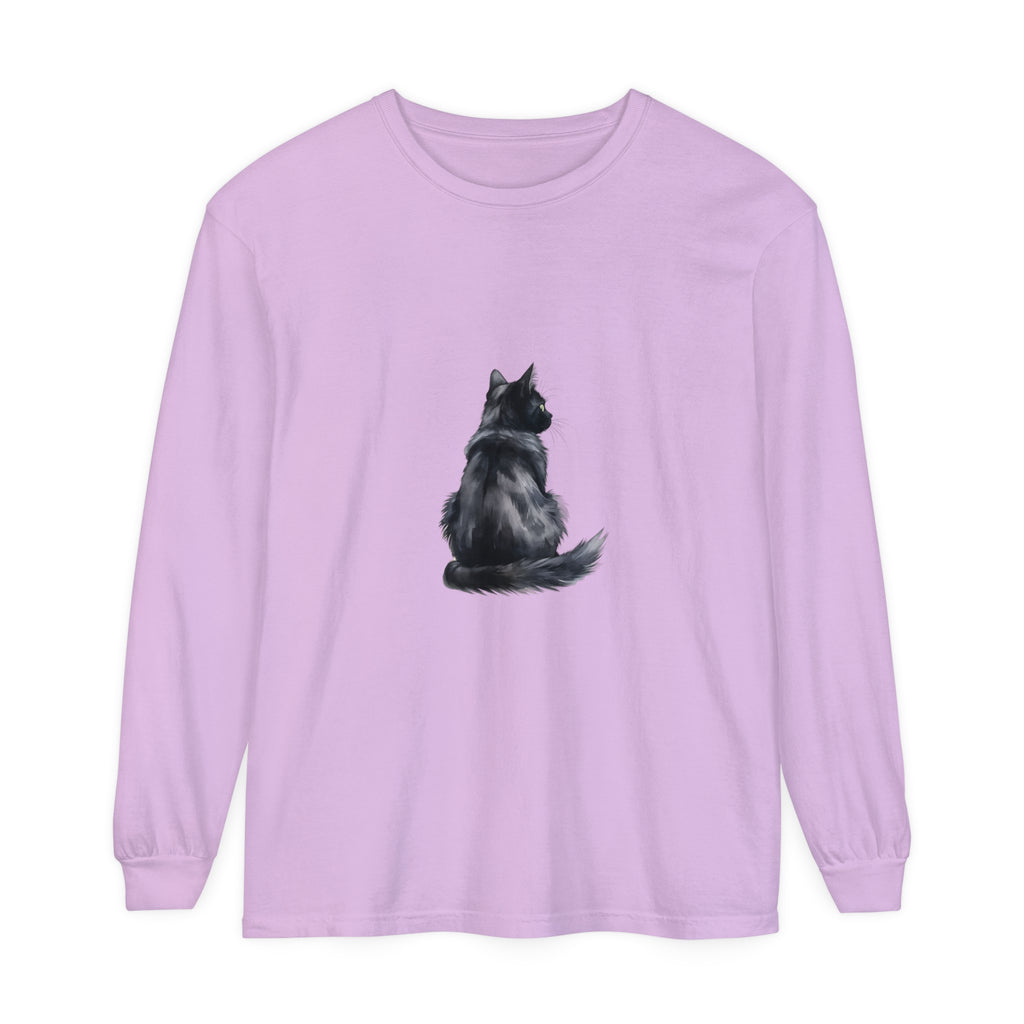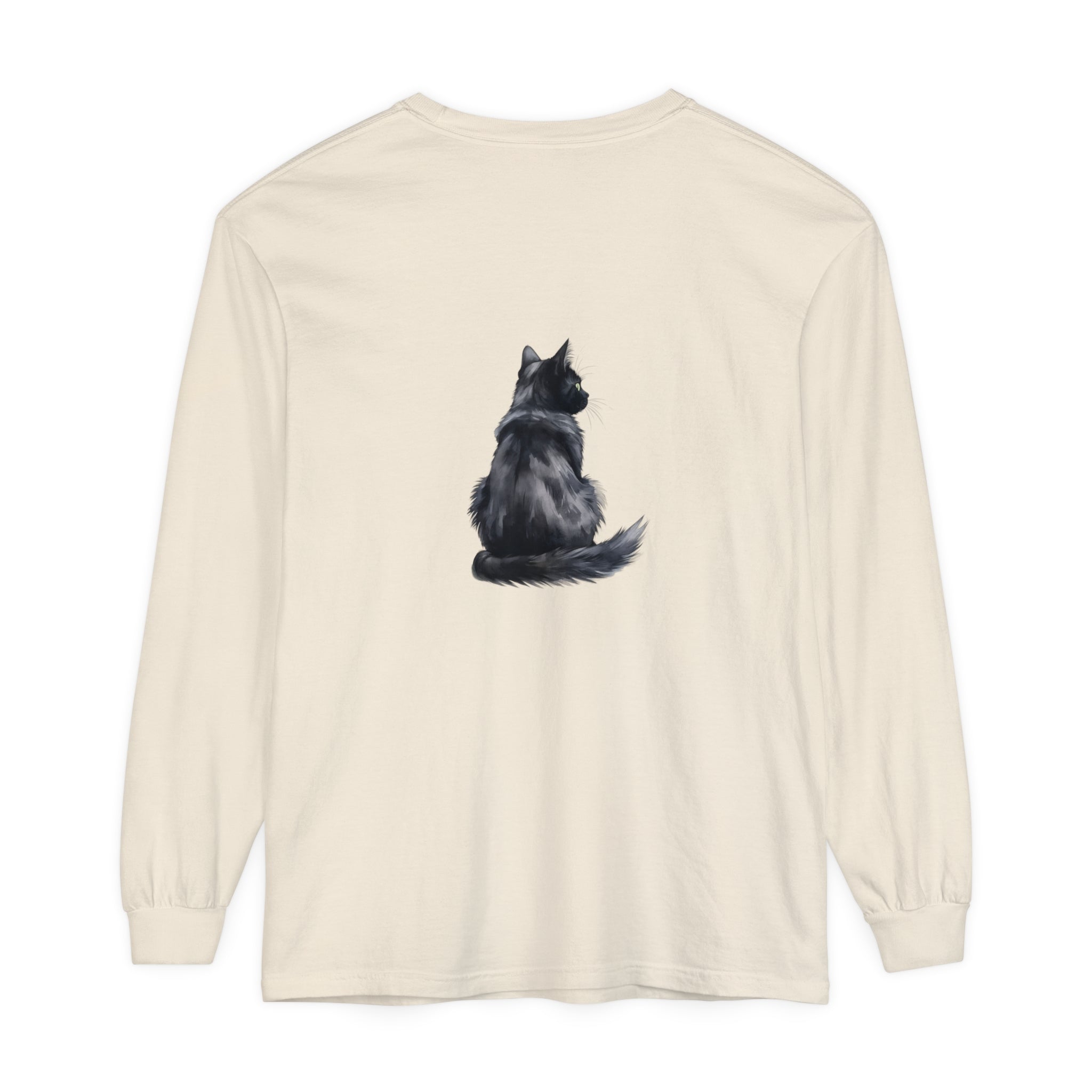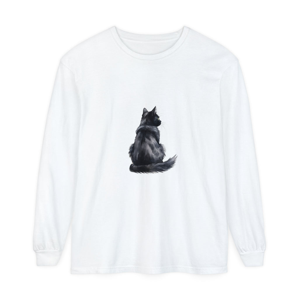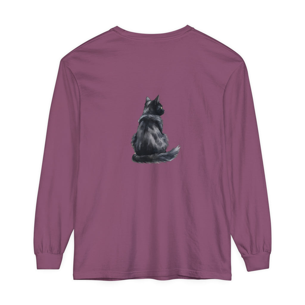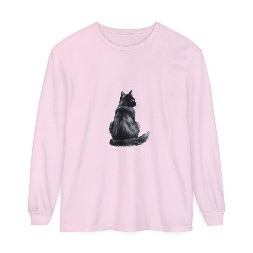 Soft and comfortable long sleeve t-shirt with a watercolor black cat design