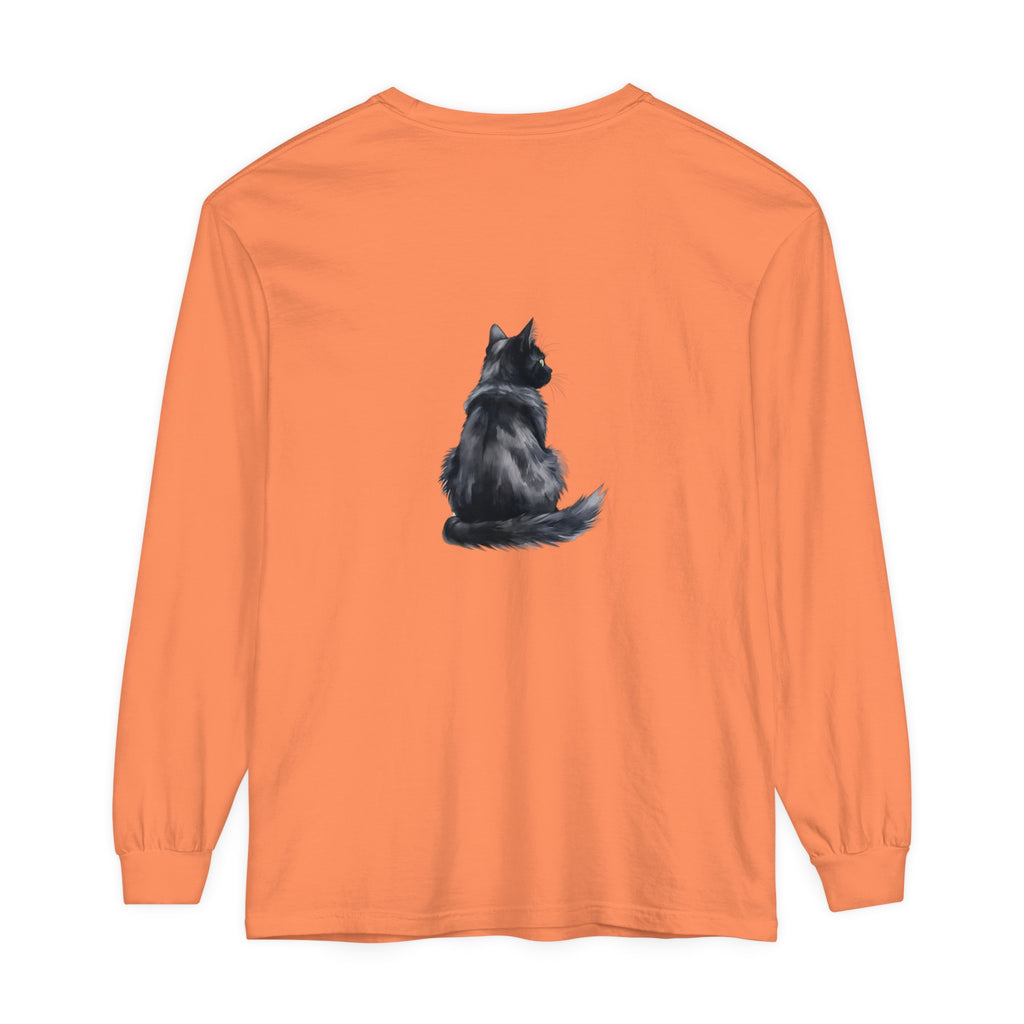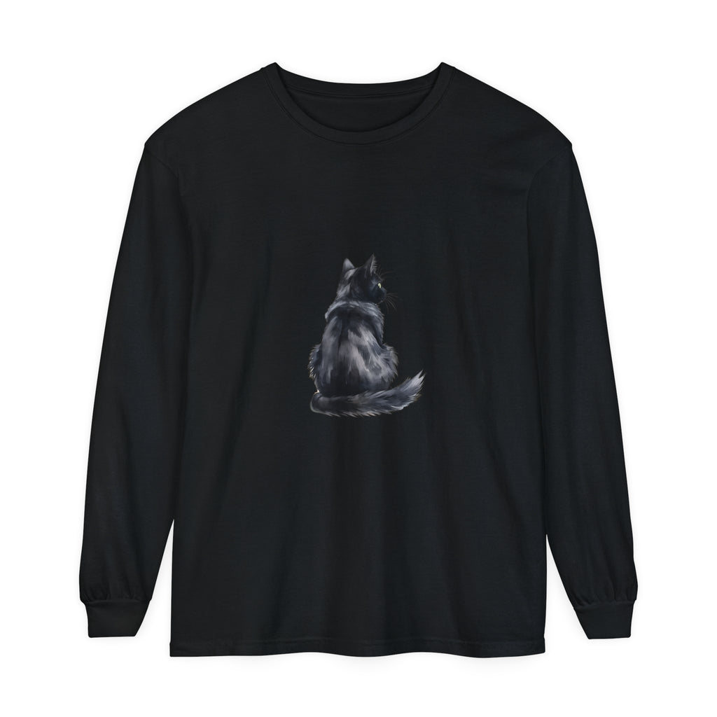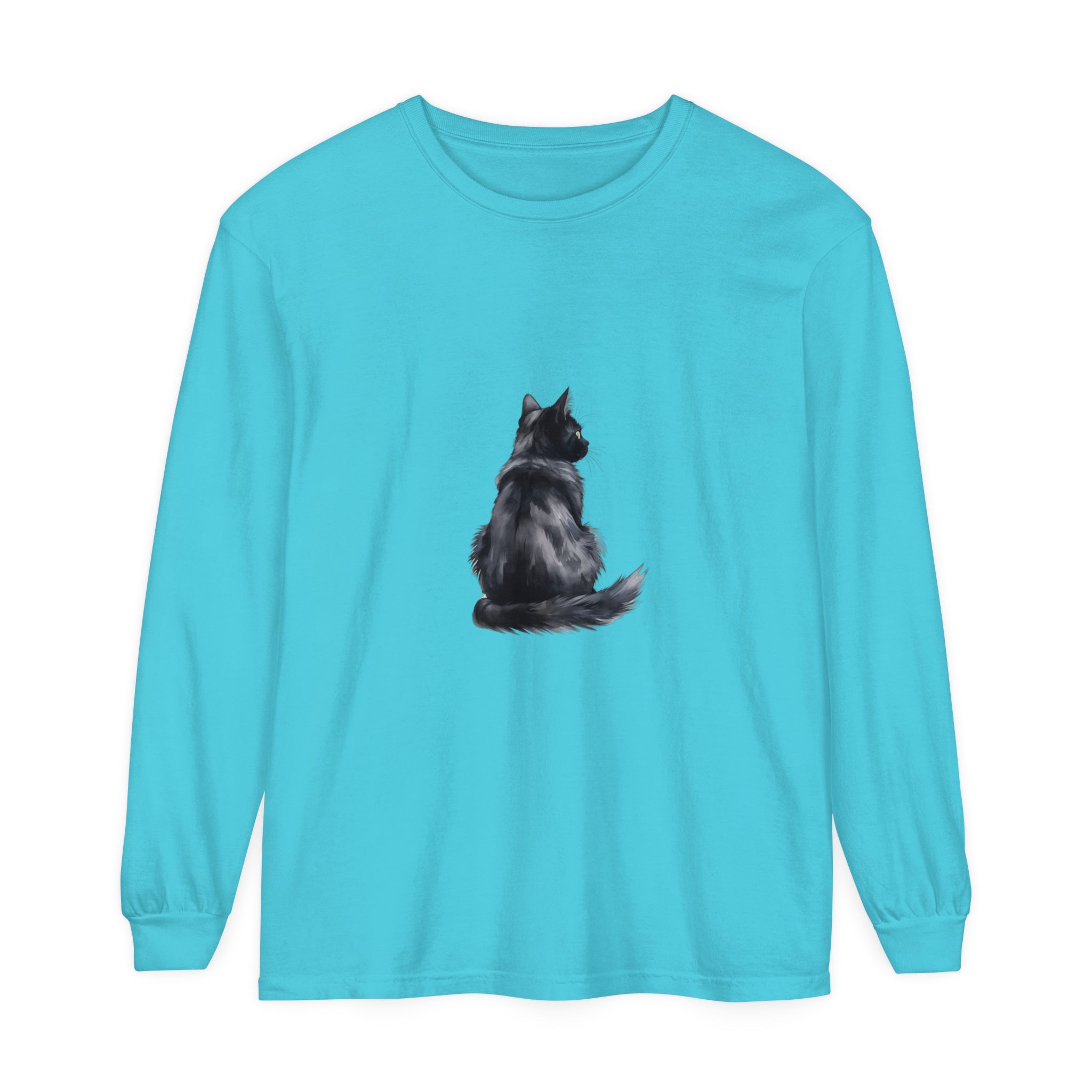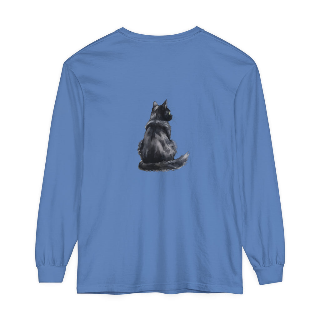 Soft and comfortable long sleeve t-shirt with a watercolor black cat design