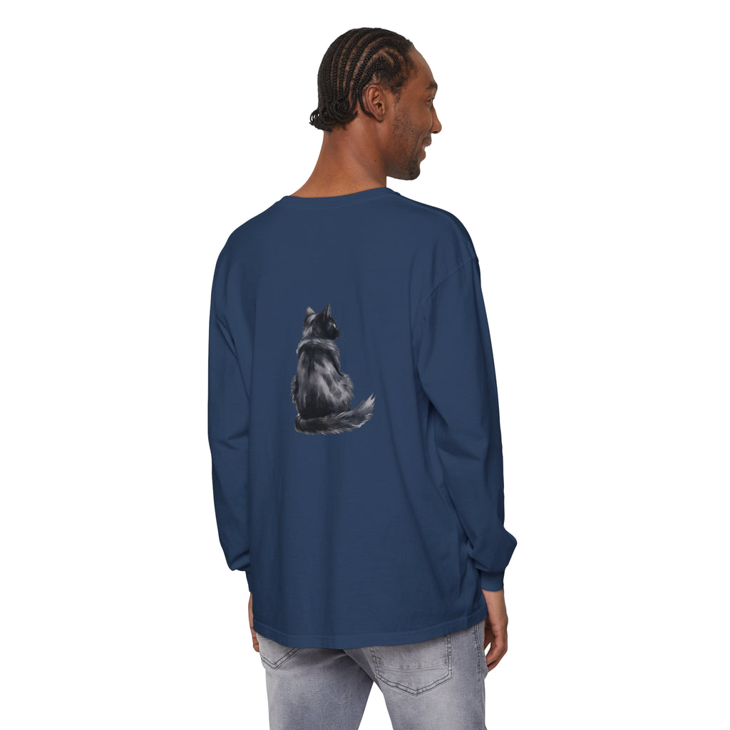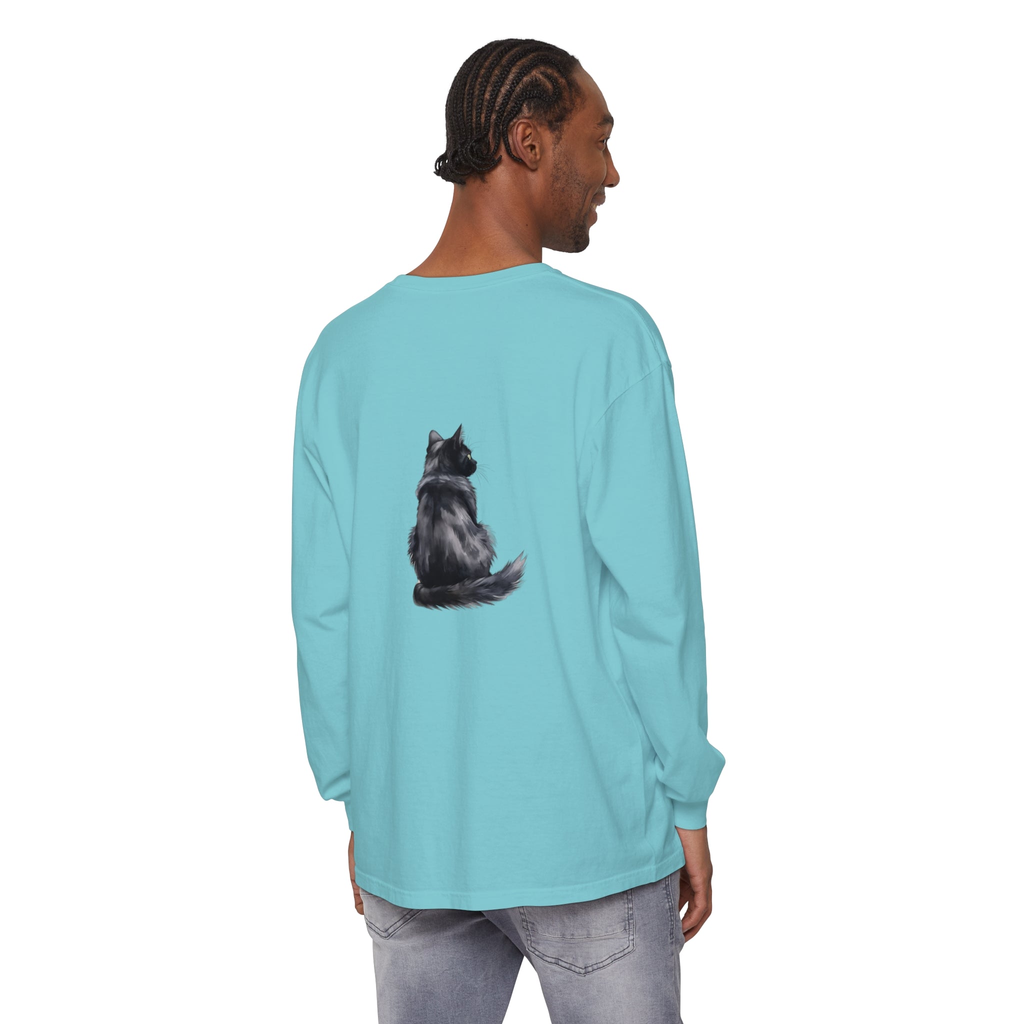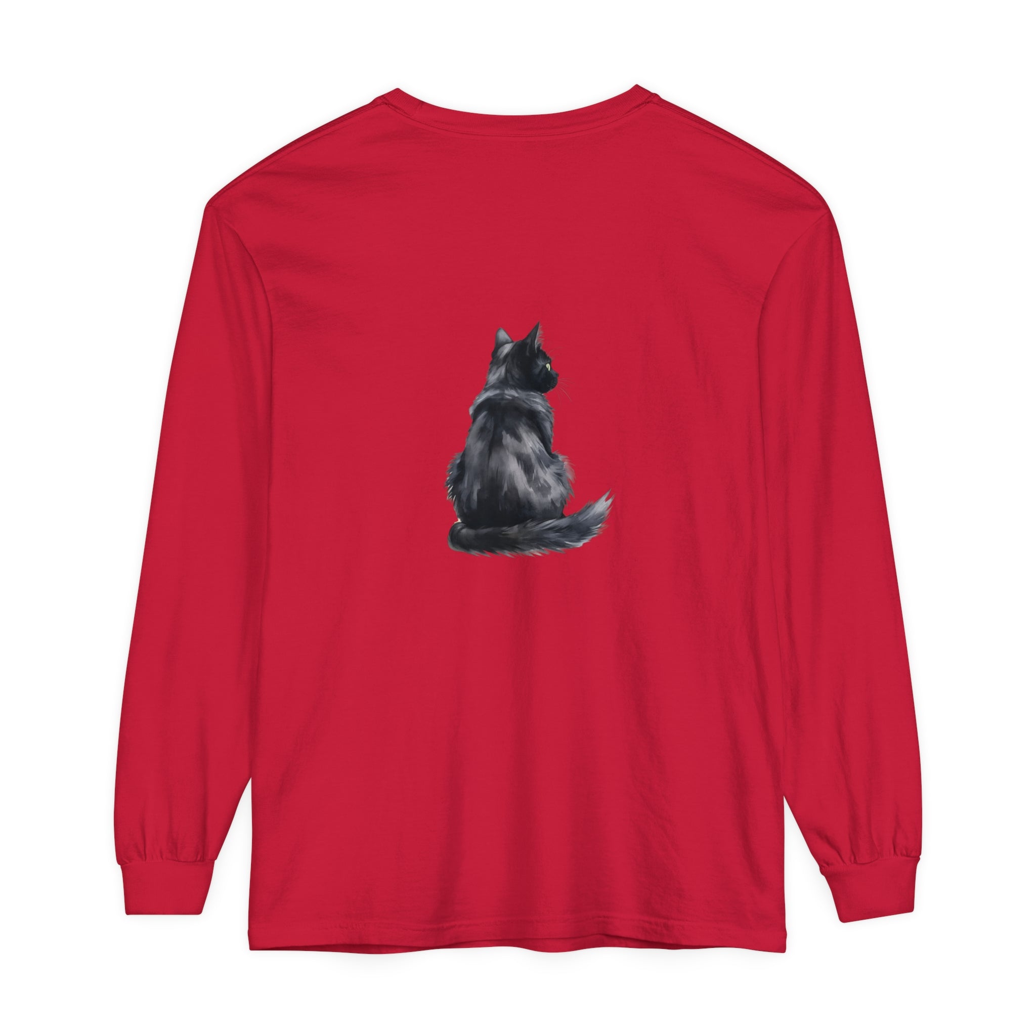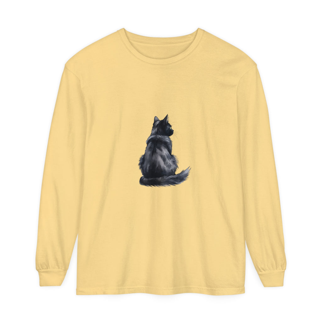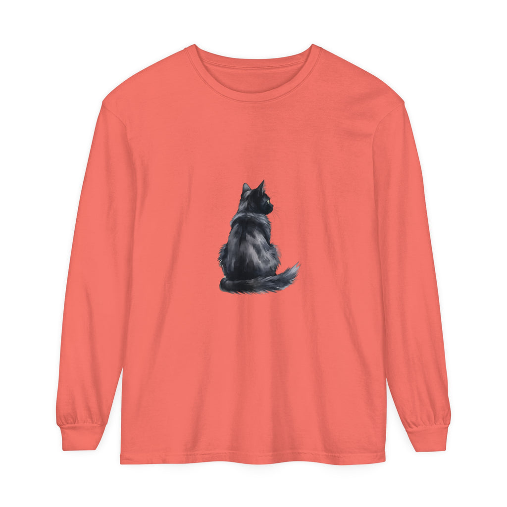 Soft and comfortable long sleeve t-shirt with a watercolor black cat design