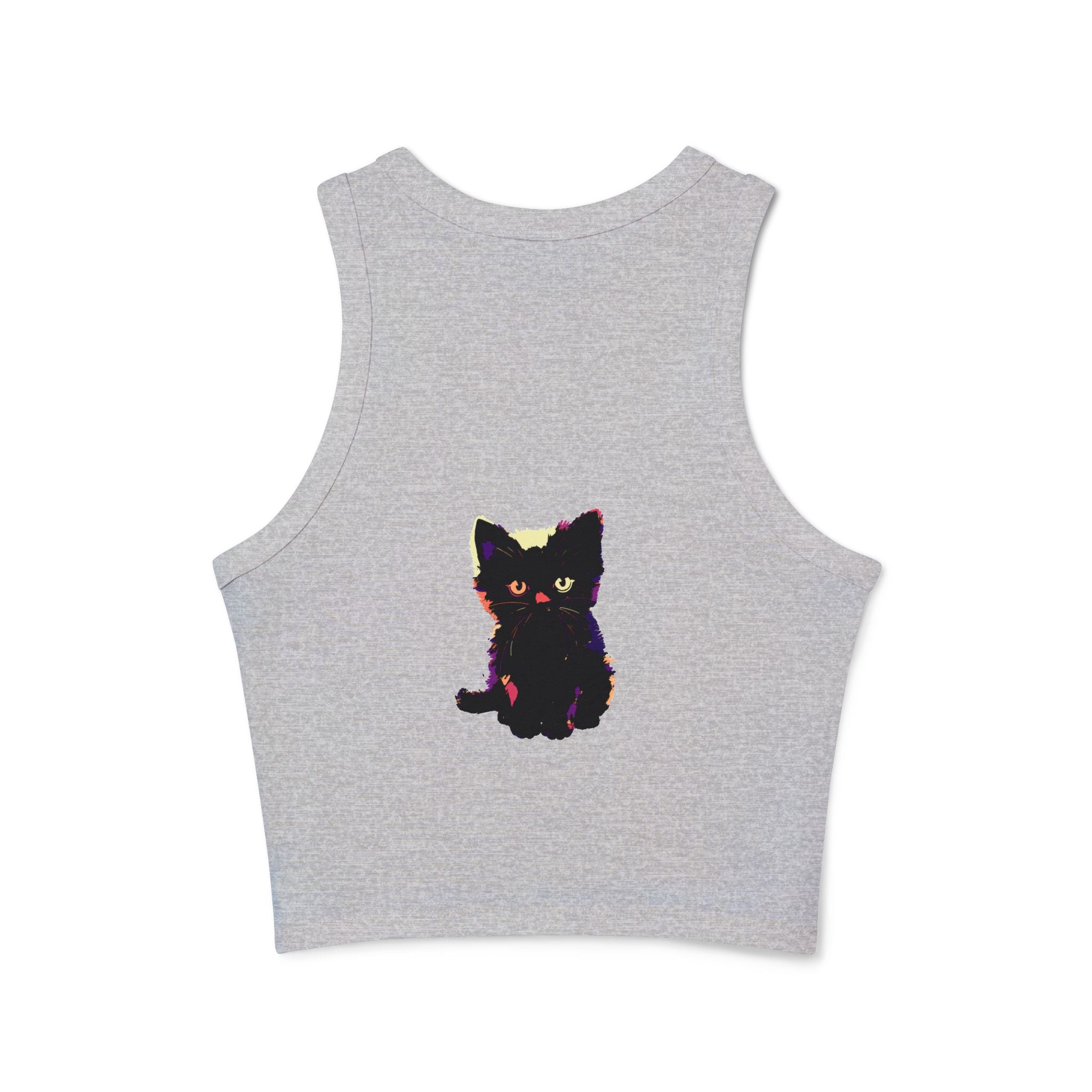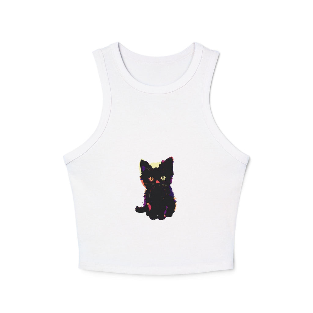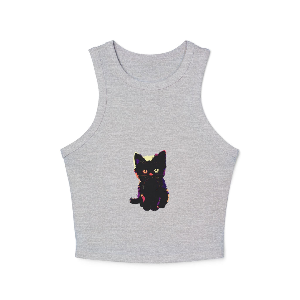 Fai subito la tua dichiarazione con questa canotta con disegno di un gatto nero e celebra il tuo amore per tutto ciò che è felino!