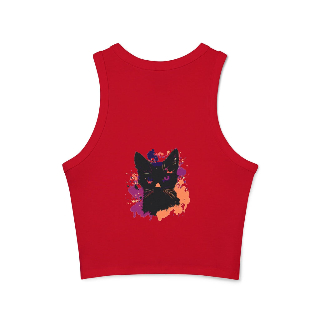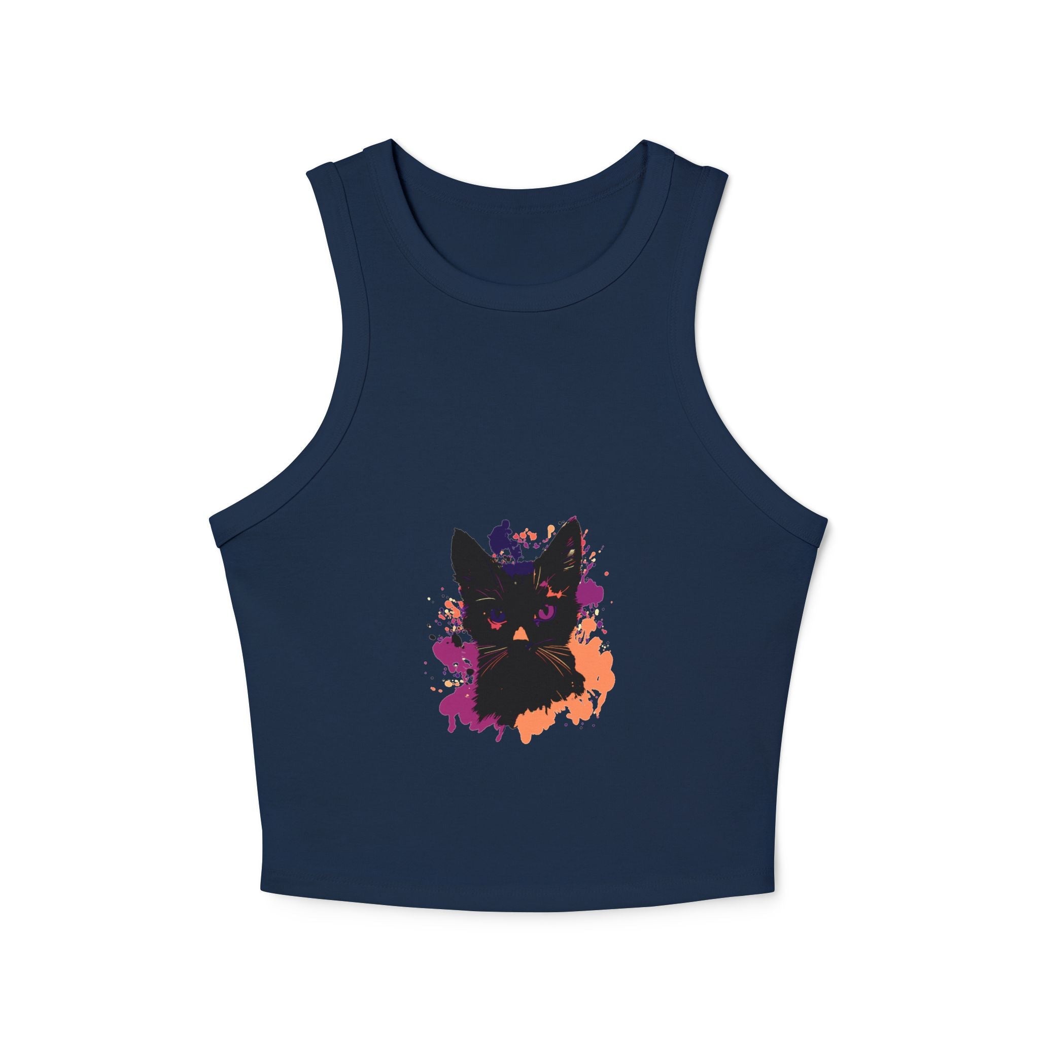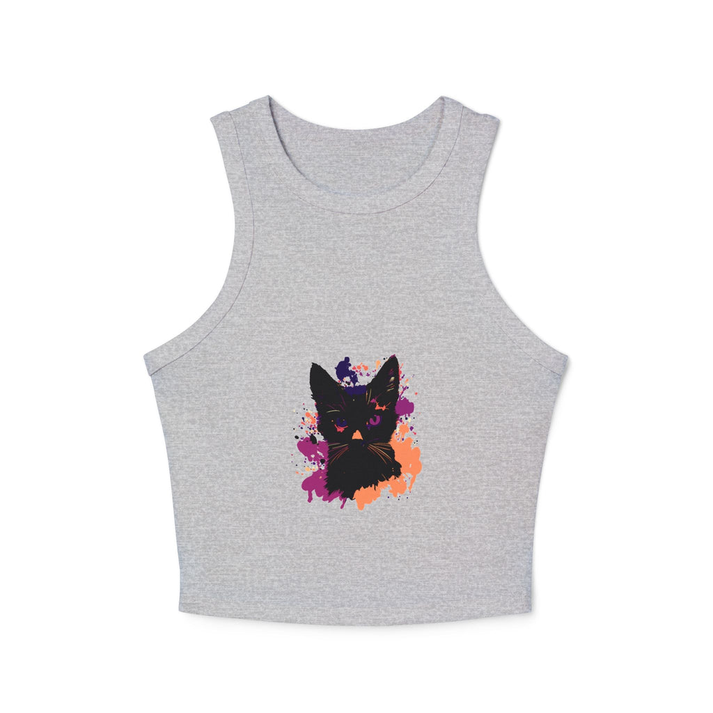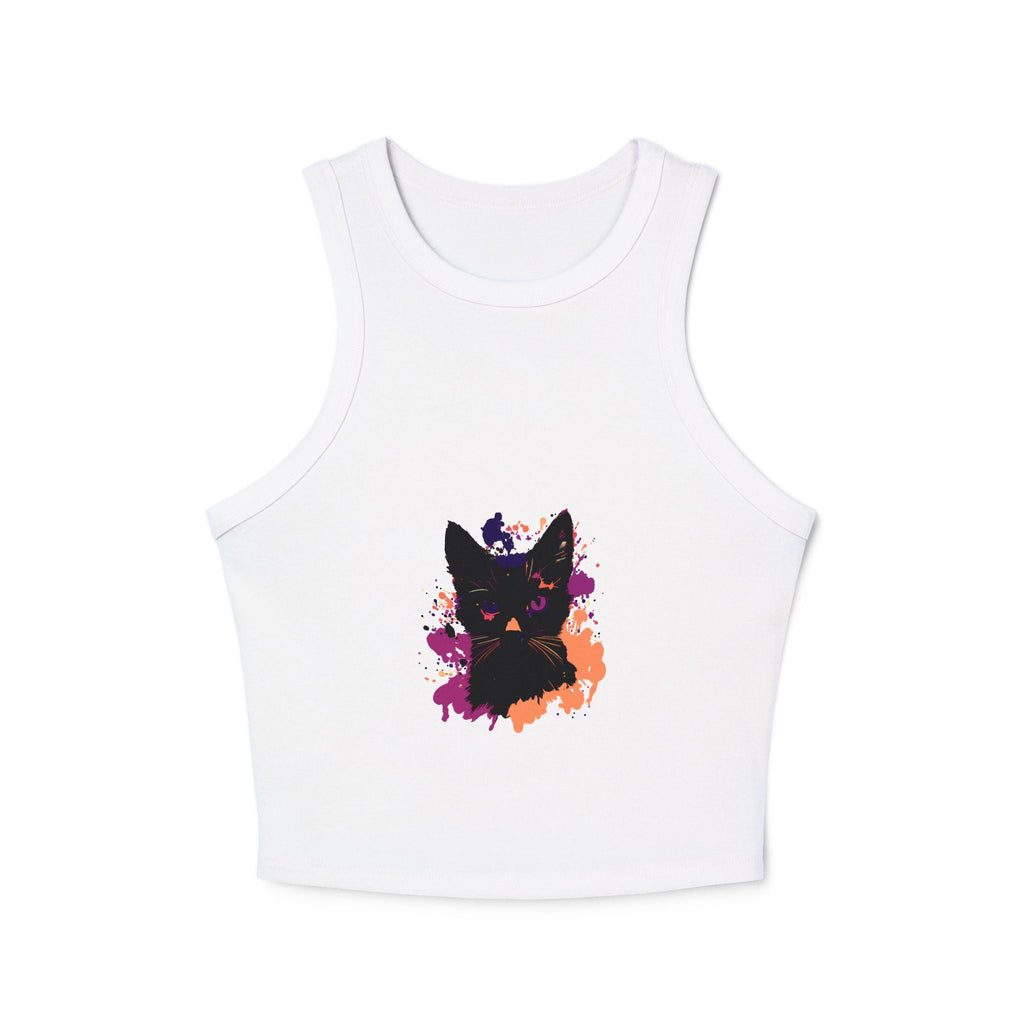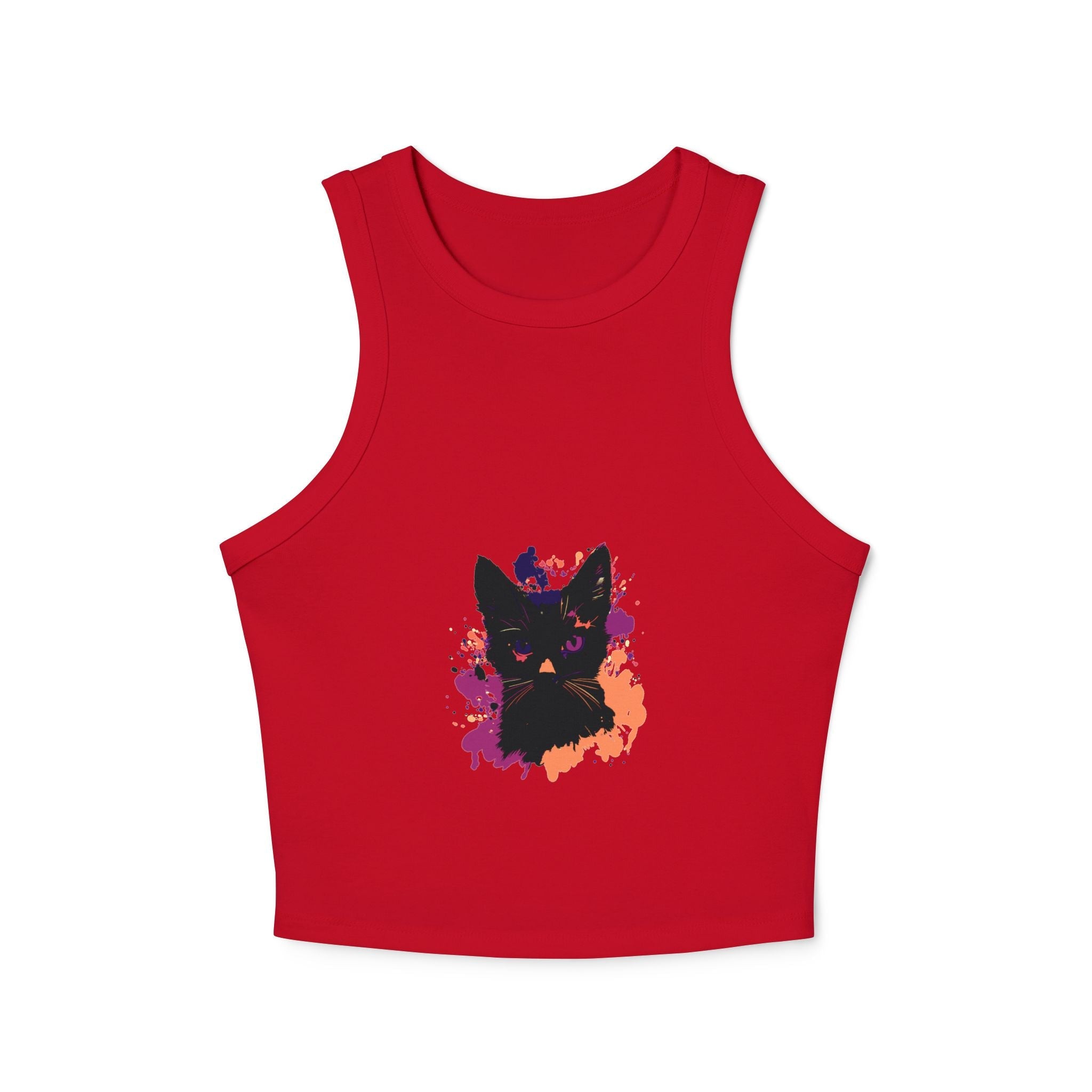 Scatena il tuo amore per i felini con questa splendida canotta, dove un audace gatto nero prende vita su uno sfondo di allegri schizzi ad acquerello. Ogni tratto cattura un'essenza giocosa, evocando un senso di stravaganza e fascino che non mancherà di attirare l'attenzione, sia che tu stia rilassandoti a casa o fuori.