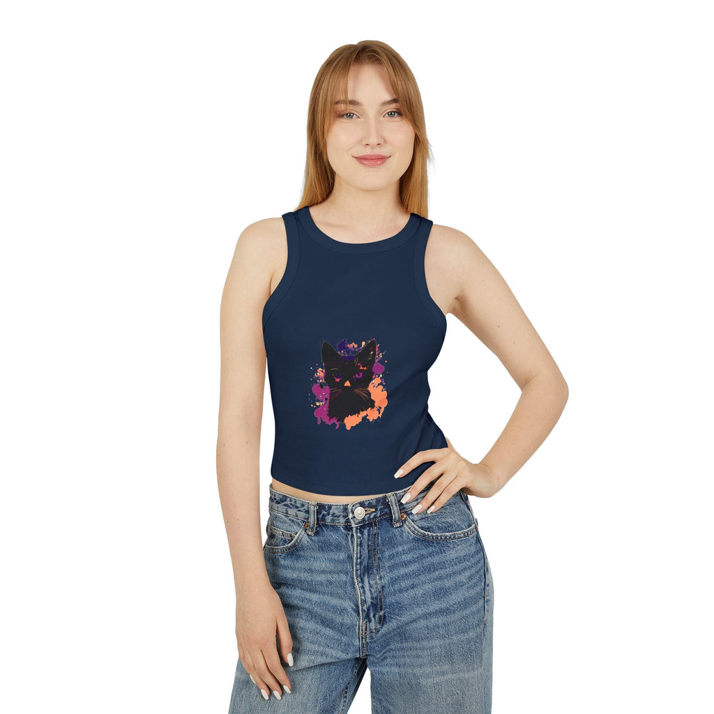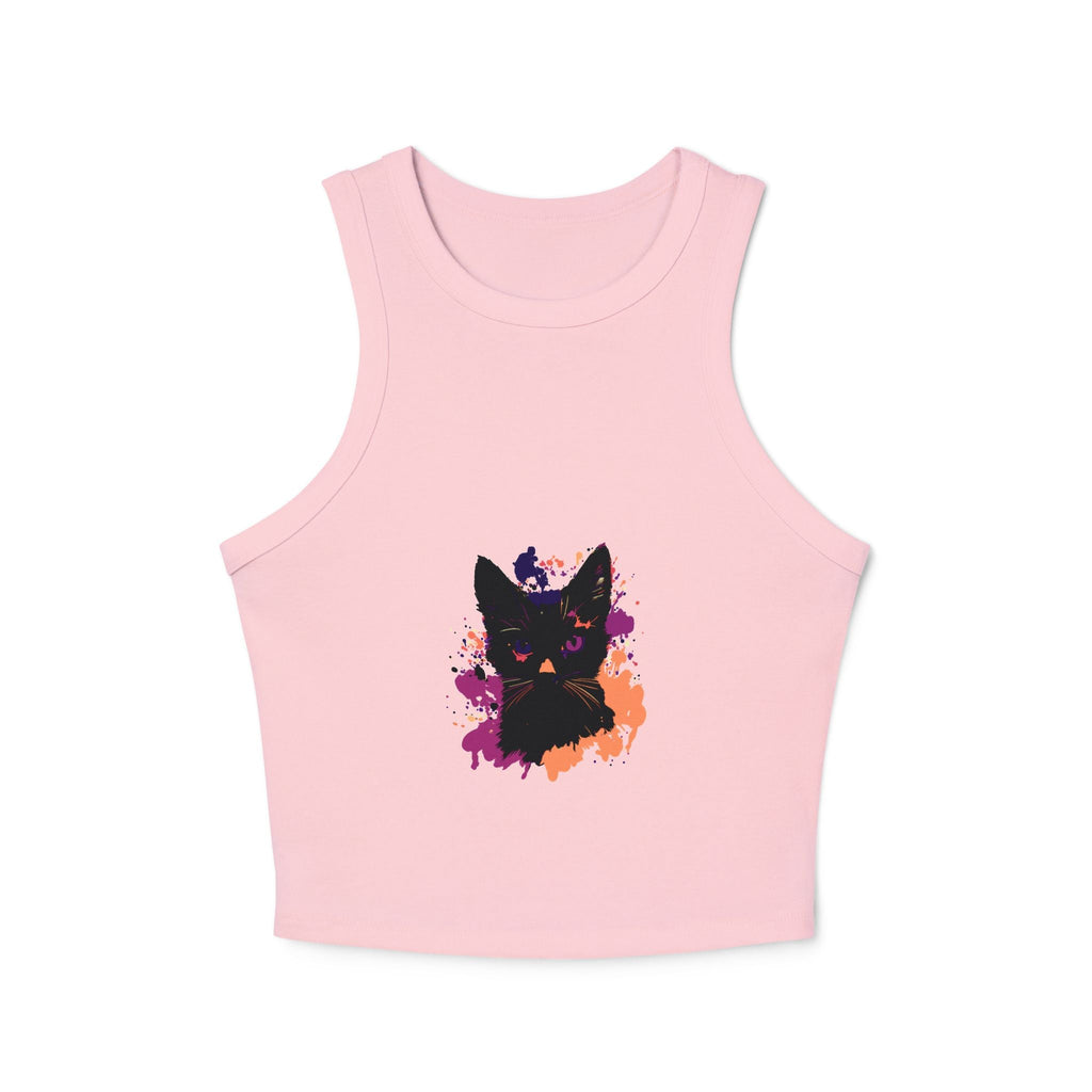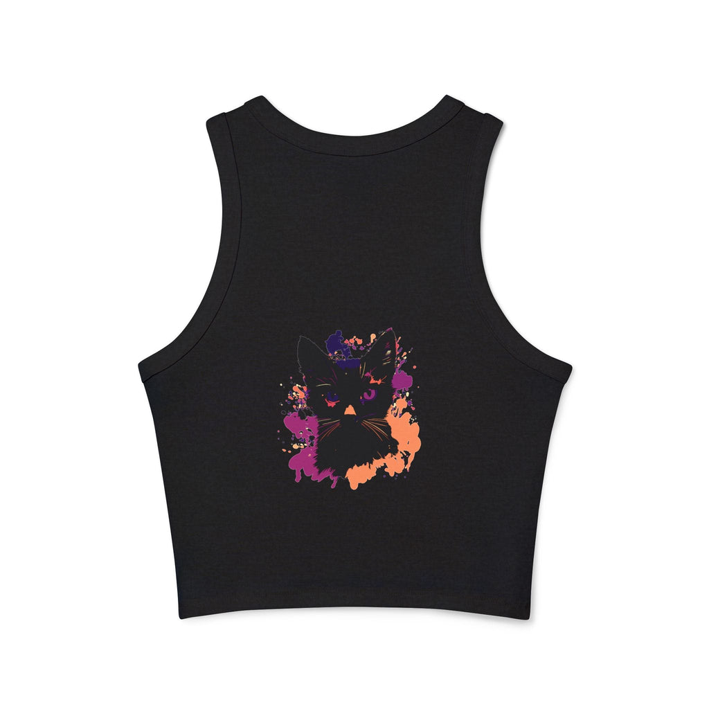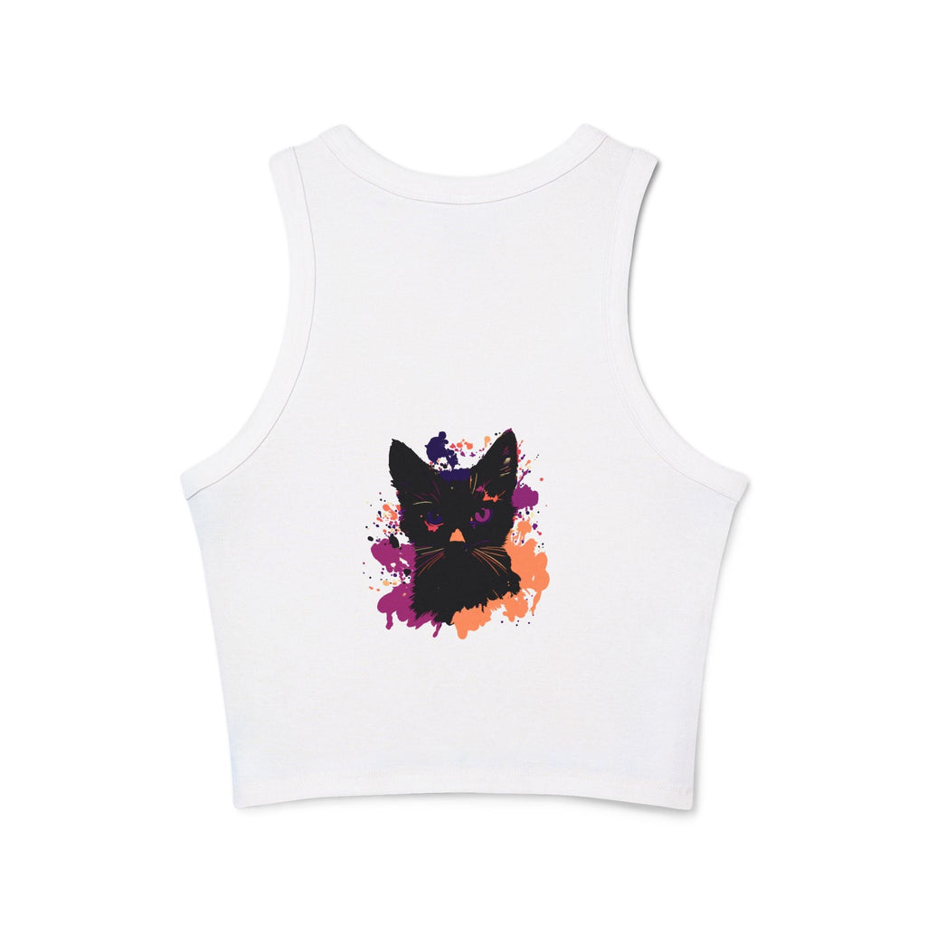 Scatena il tuo amore per i felini con questa splendida canotta, dove un audace gatto nero prende vita su uno sfondo di allegri schizzi ad acquerello. Ogni tratto cattura un'essenza giocosa, evocando un senso di stravaganza e fascino che non mancherà di attirare l'attenzione, sia che tu stia rilassandoti a casa o fuori.