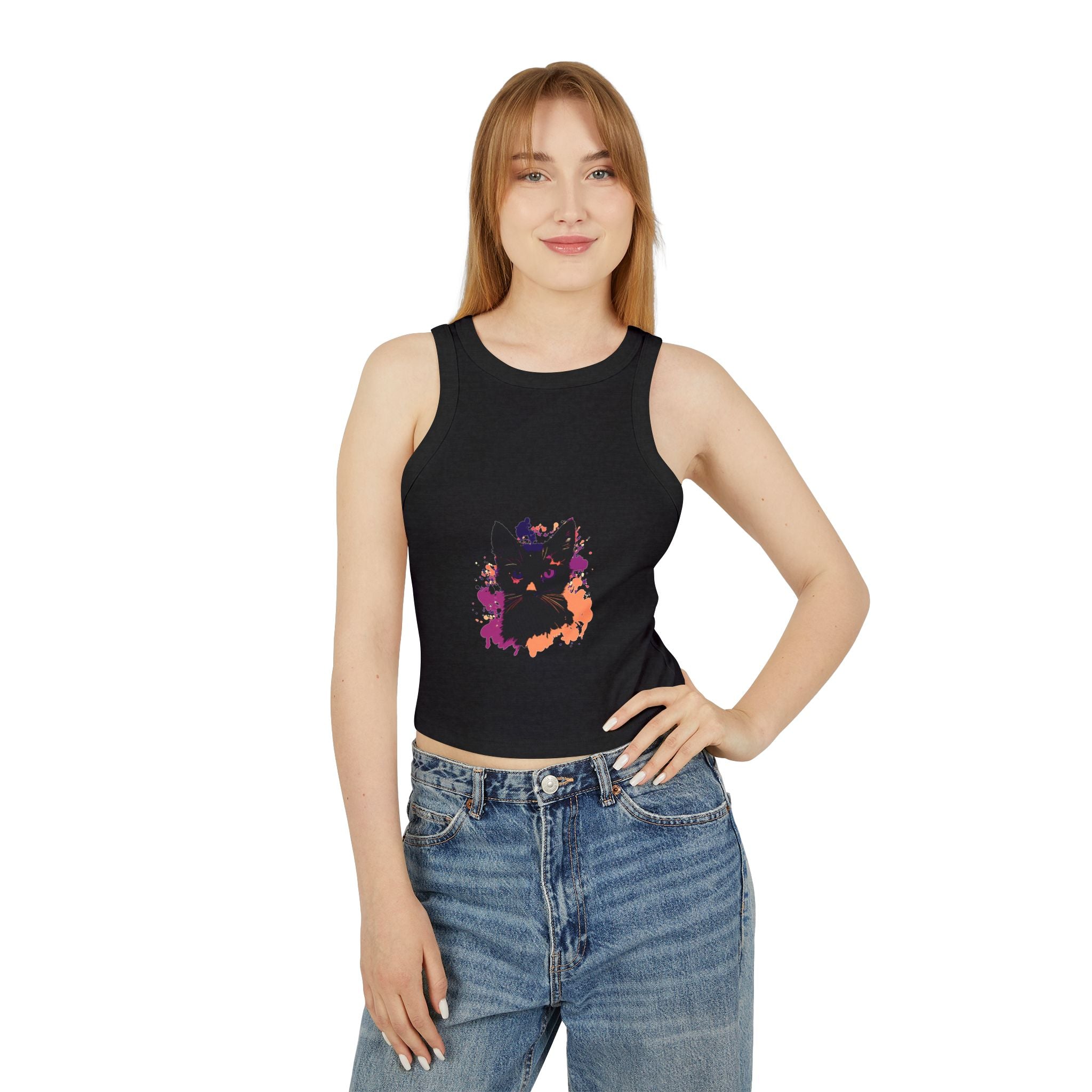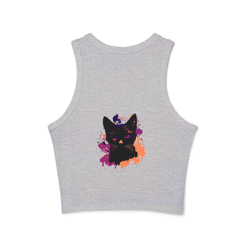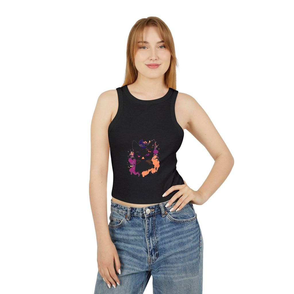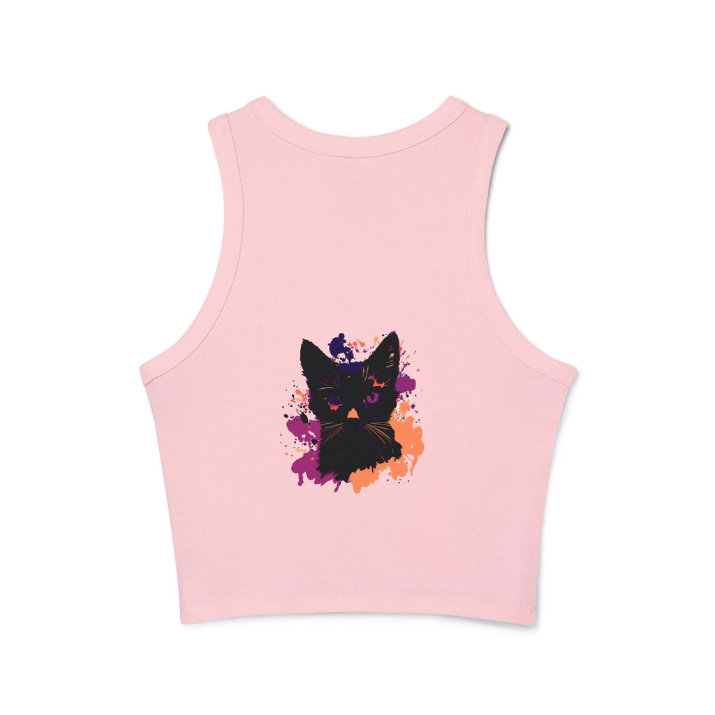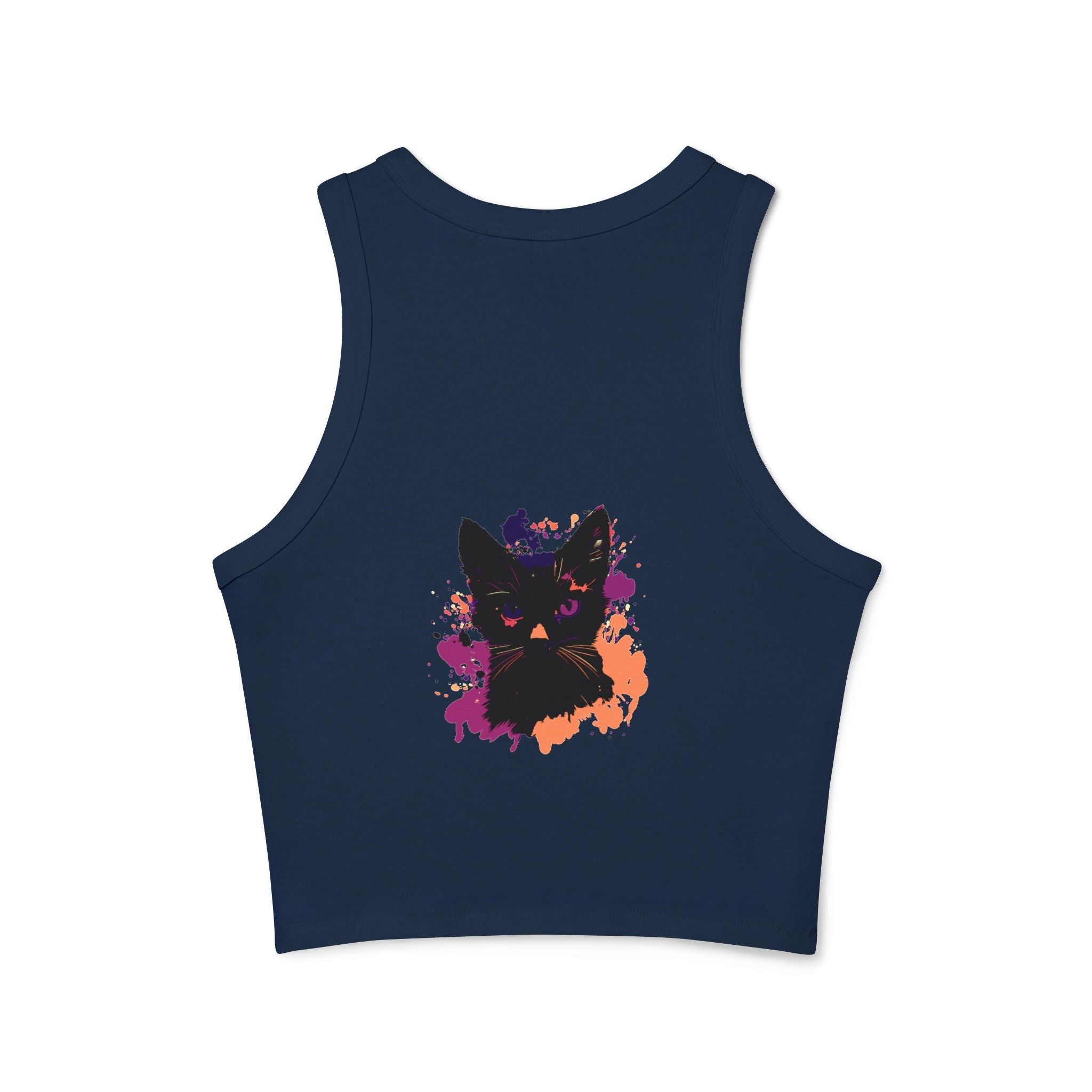 Scatena il tuo amore per i felini con questa splendida canotta, dove un audace gatto nero prende vita su uno sfondo di allegri schizzi ad acquerello. Ogni tratto cattura un'essenza giocosa, evocando un senso di stravaganza e fascino che non mancherà di attirare l'attenzione, sia che tu stia rilassandoti a casa o fuori.