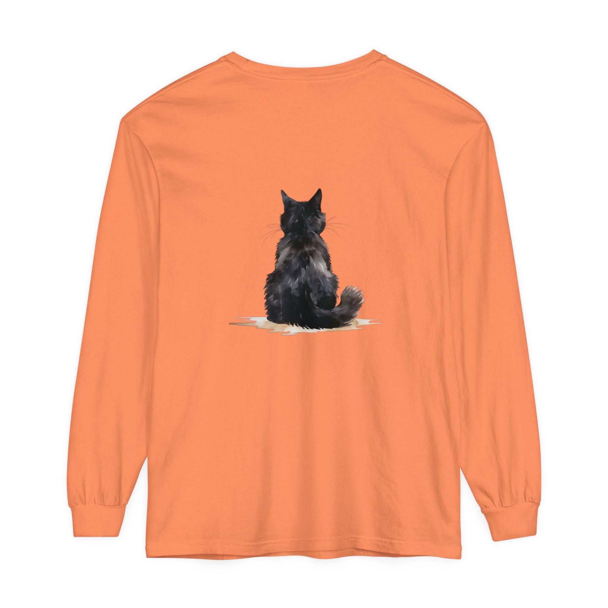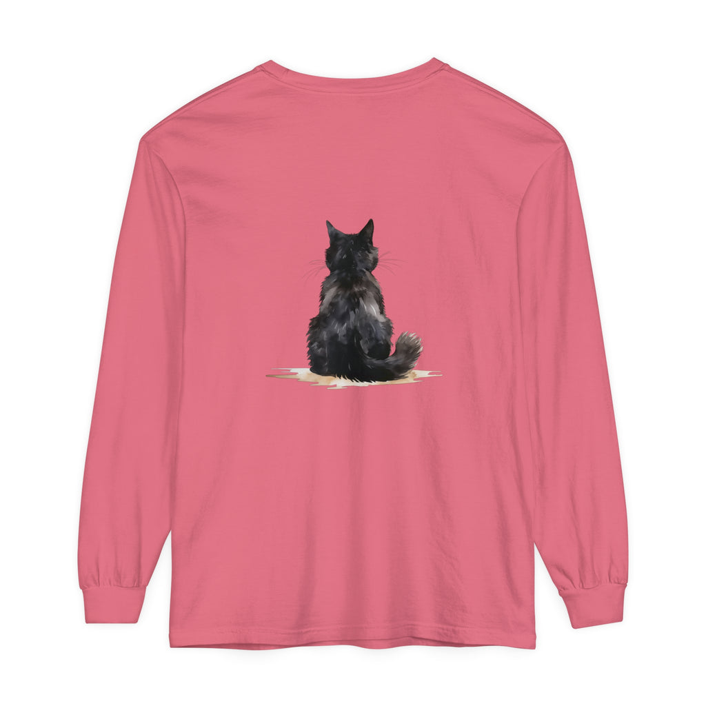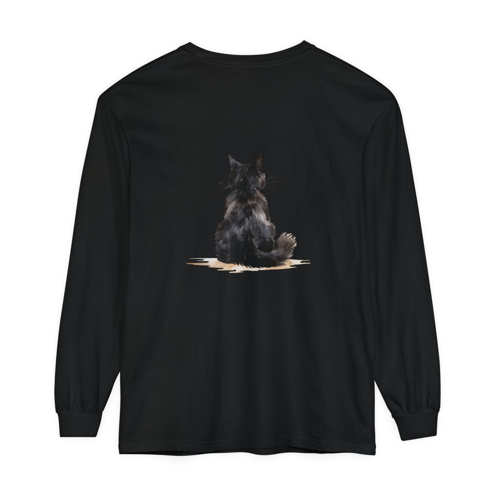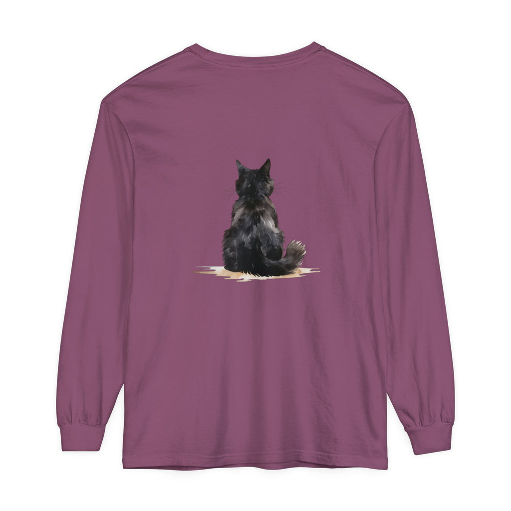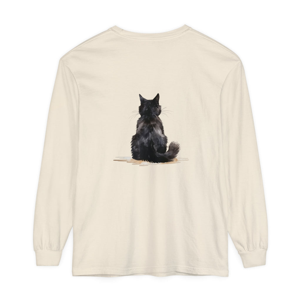 Black Cat Watercolor design on a comfortable unisex long sleeve t-shirt