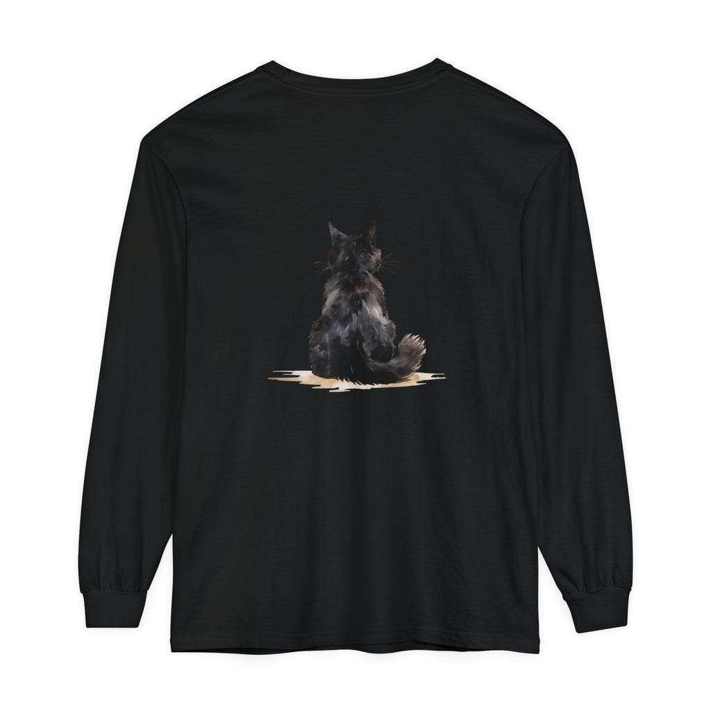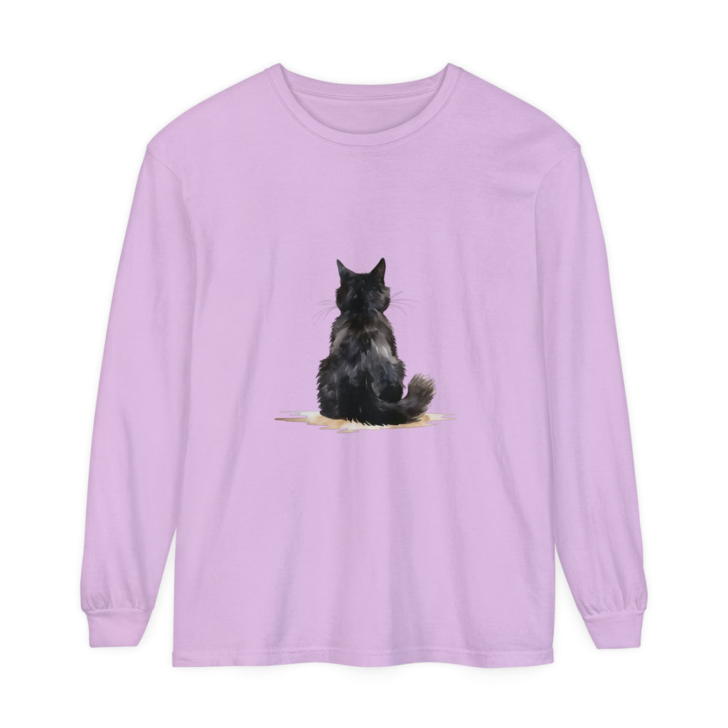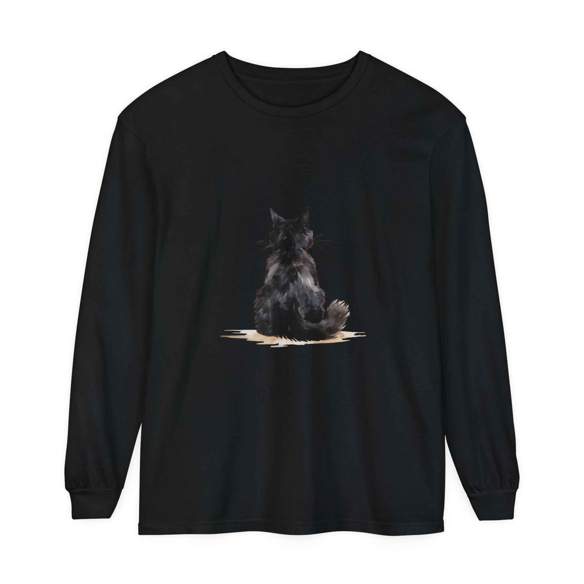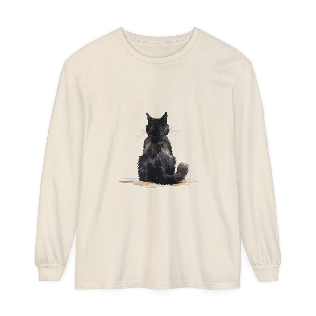 Black Cat Watercolor Long Sleeve T-Shirt - Unisex, loose-fitting, comfortable shirt
