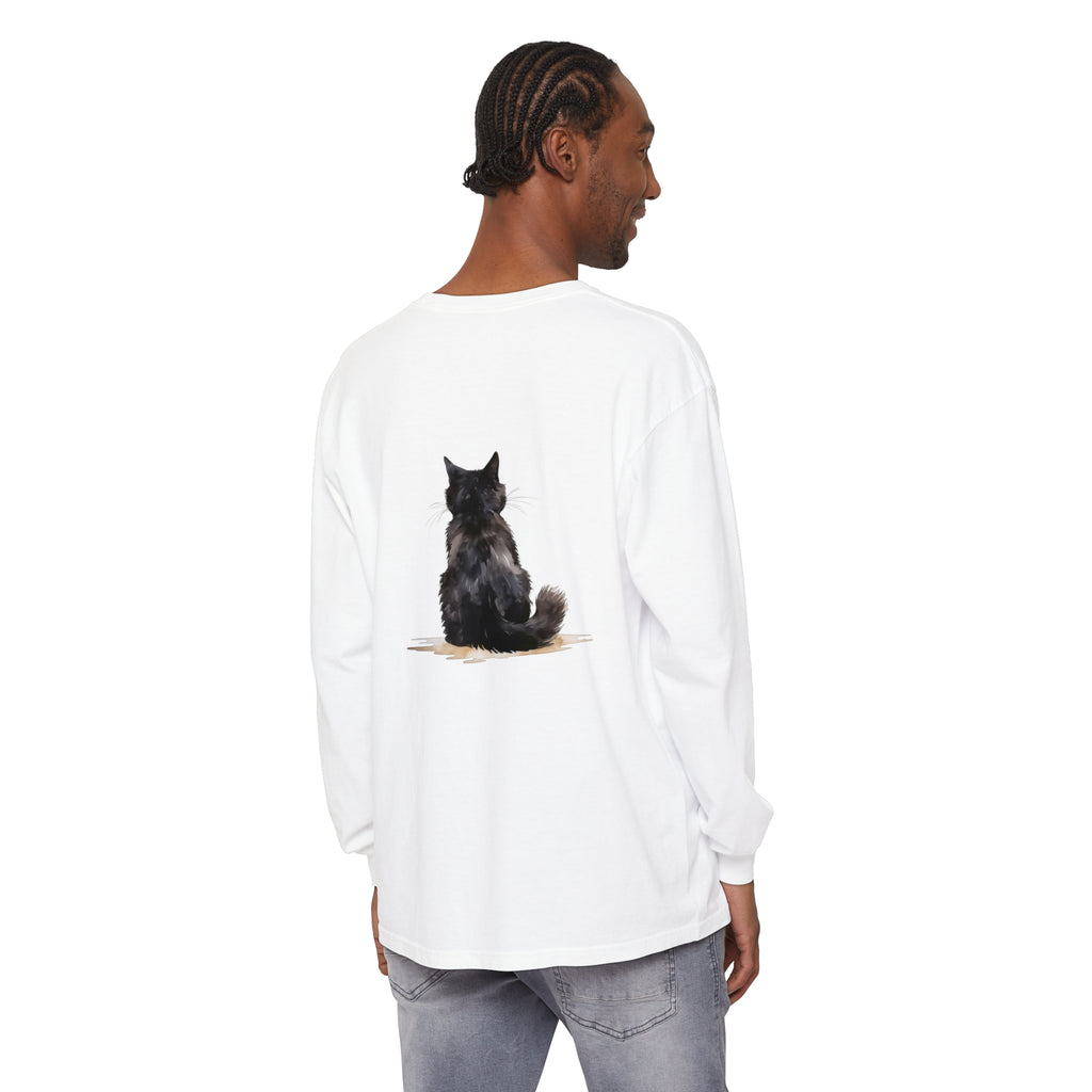 Black Cat Watercolor - Unisex Long Sleeve T-Shirt featuring a stylish, vibrant watercolor design of a black cat on a comfortable long sleeve shirt