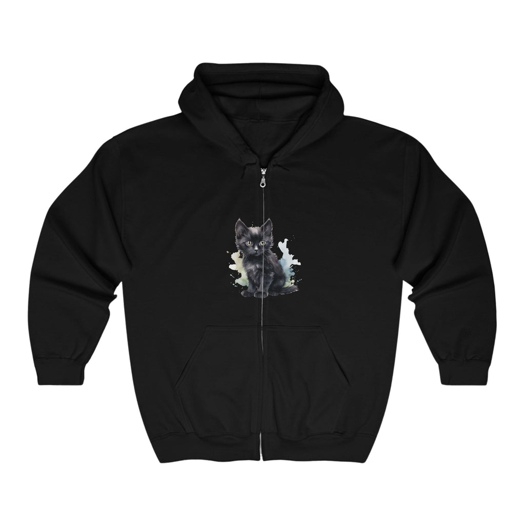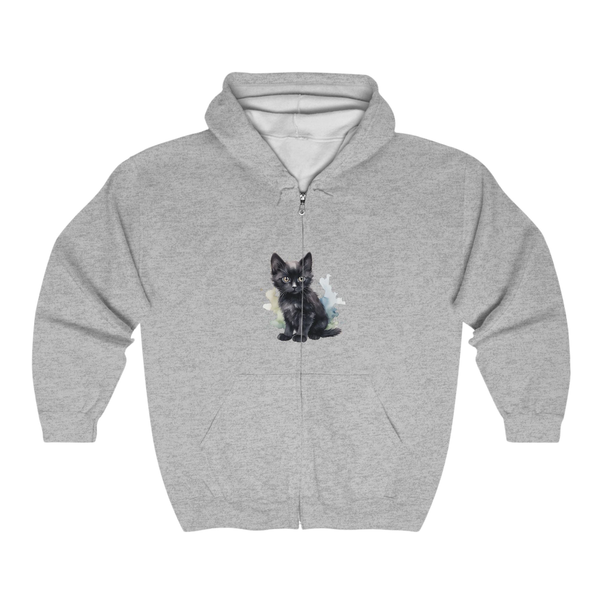 Con un accattivante design ad acquerello raffigurante un incantevole gatto nero, questa felpa con cappuccio ti cattura, evocando un senso di fantasia e fascino. L'intricato tocco di colore che circonda il giocoso felino crea un'atmosfera onirica, rendendola una splendida aggiunta al tuo guardaroba. Abbraccia la magia dell'arte e del comfort con questo capo unico che racconta una storia di creatività.