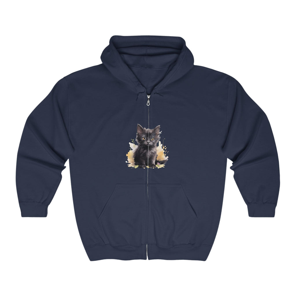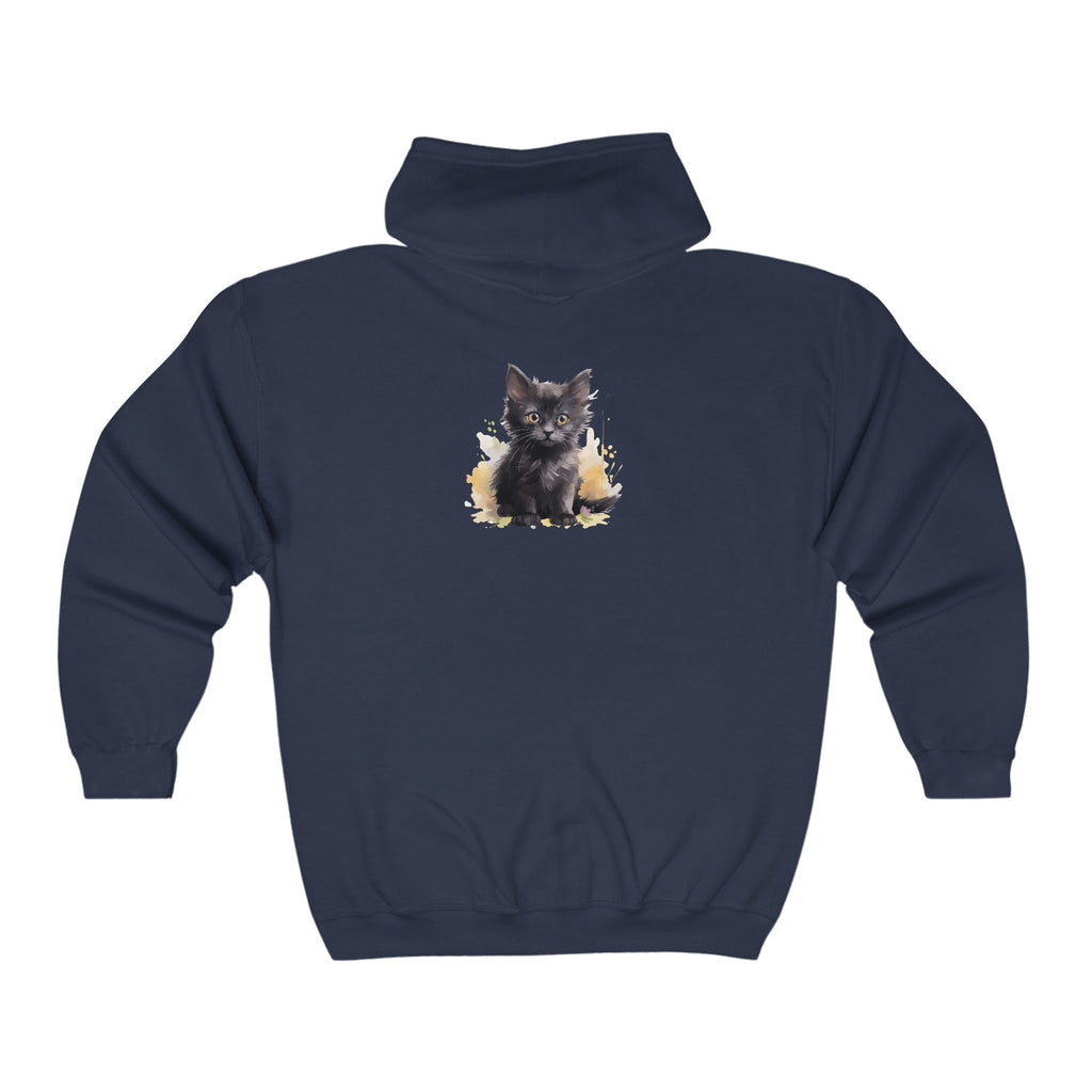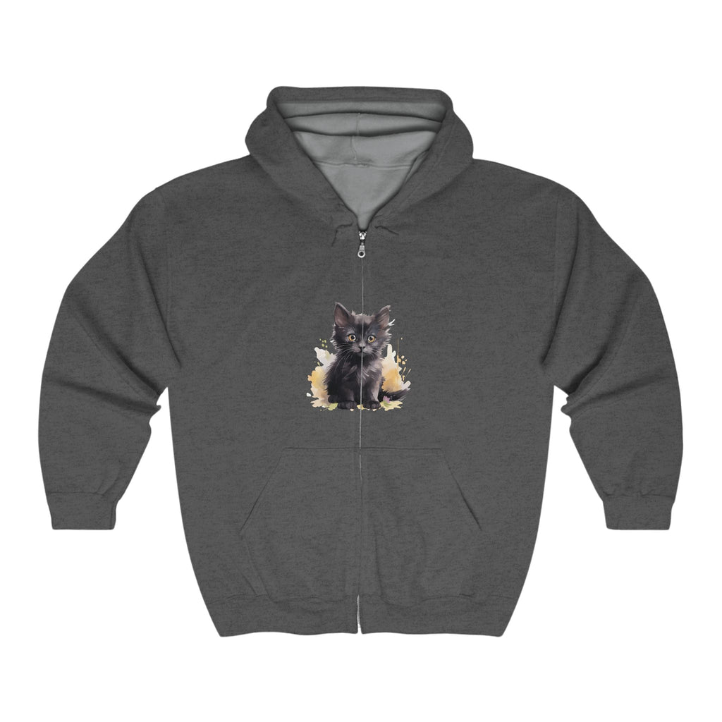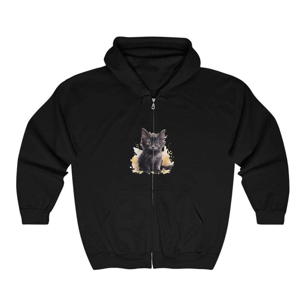 Felpa con cappuccio con gattino nero giocoso e acquerello con ciondolo accogliente