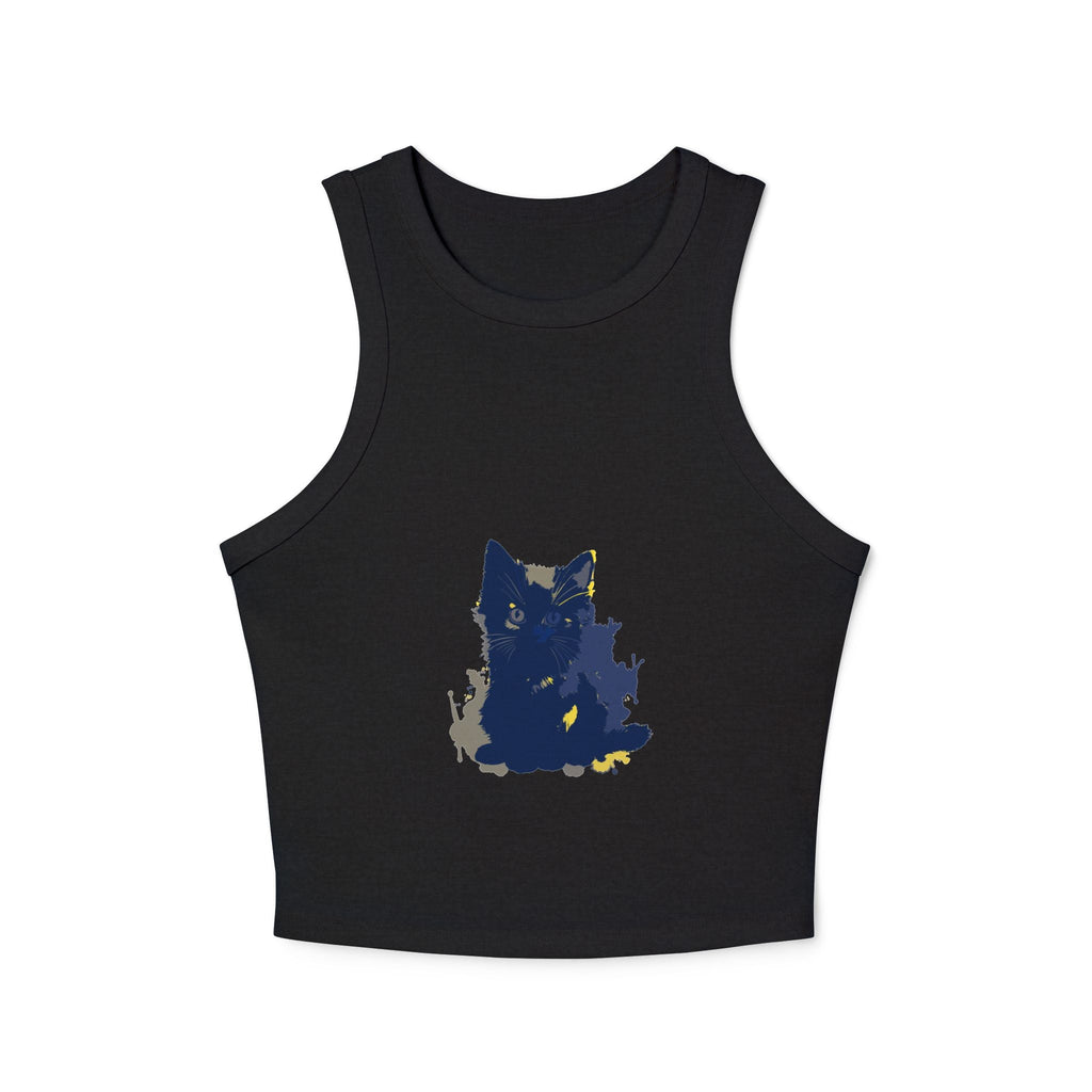 Canotta con schiena scoperta e gatto blu acquerello con tocco artistico