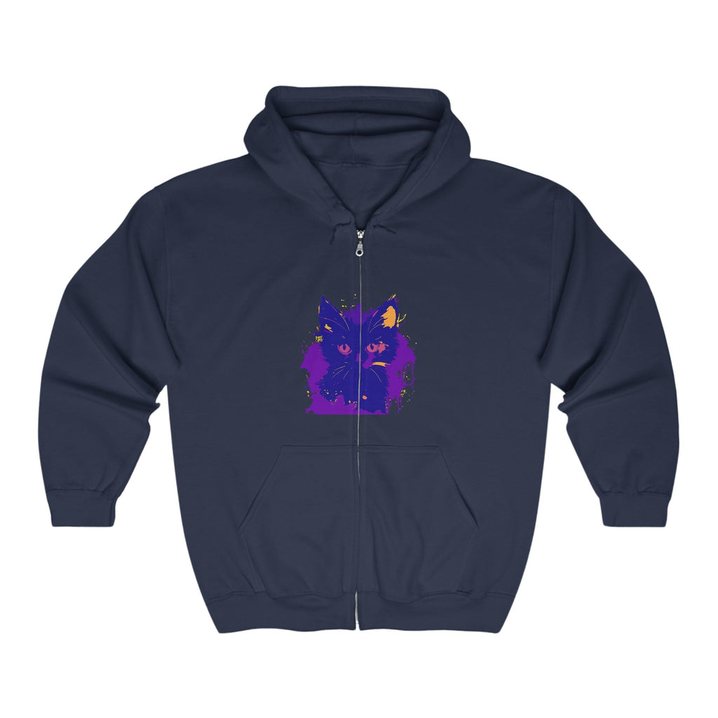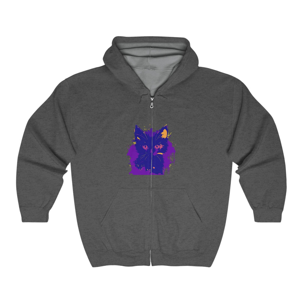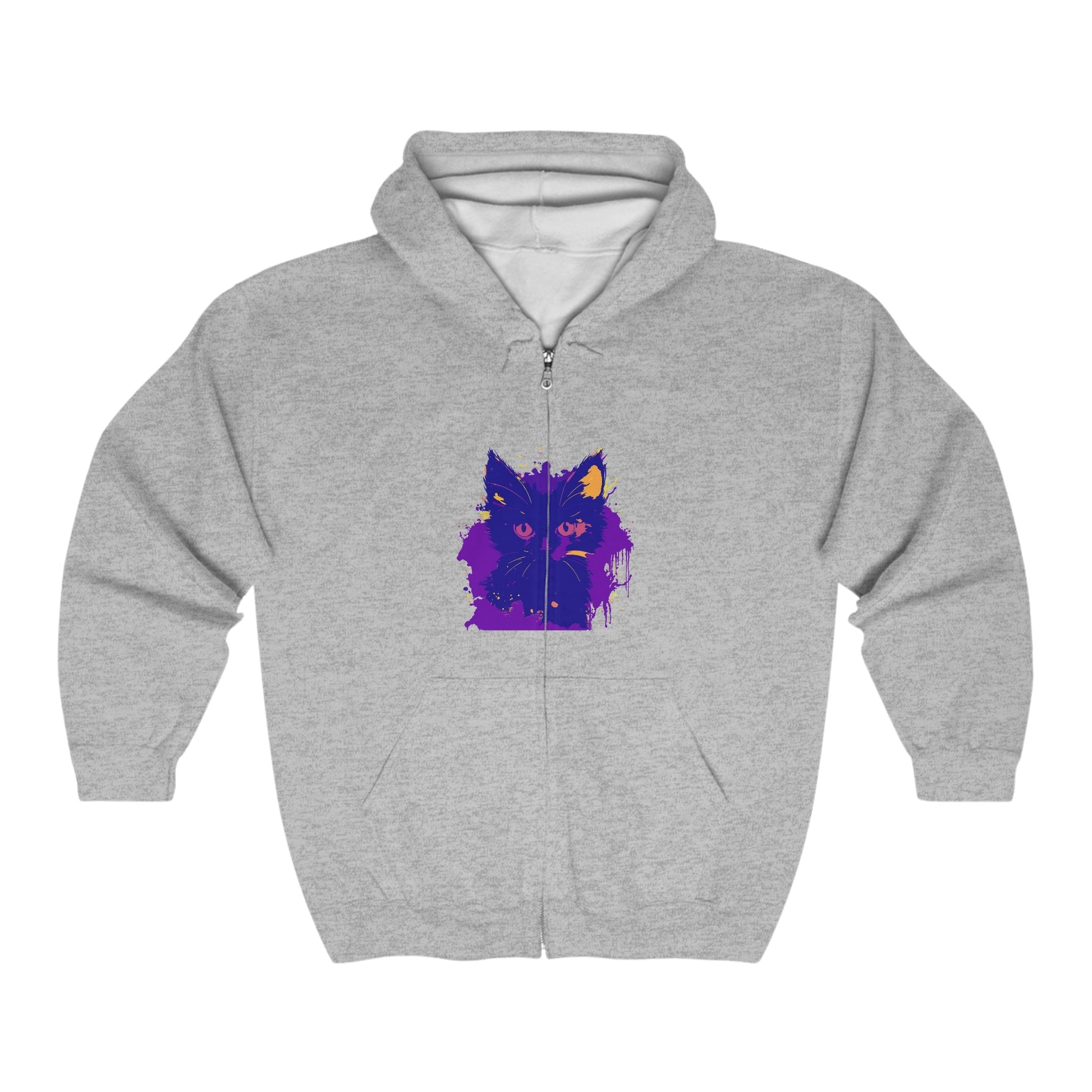 Felpa con cappuccio Fierce Feline Portrait in tonalità viola e giallo audaci