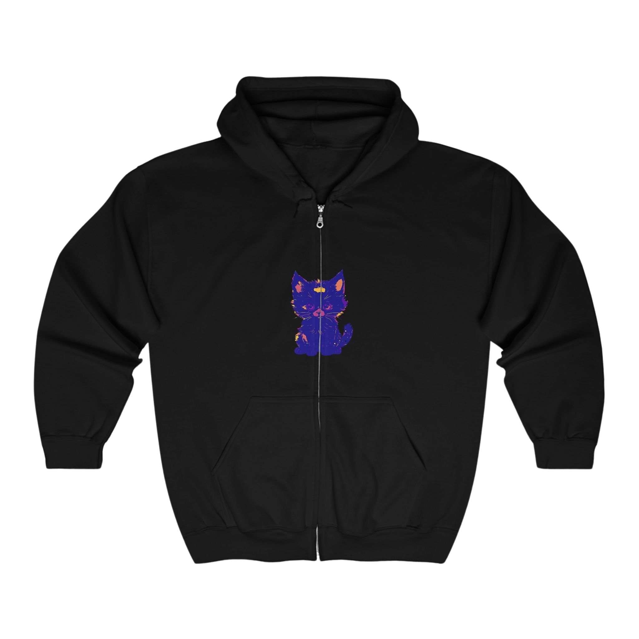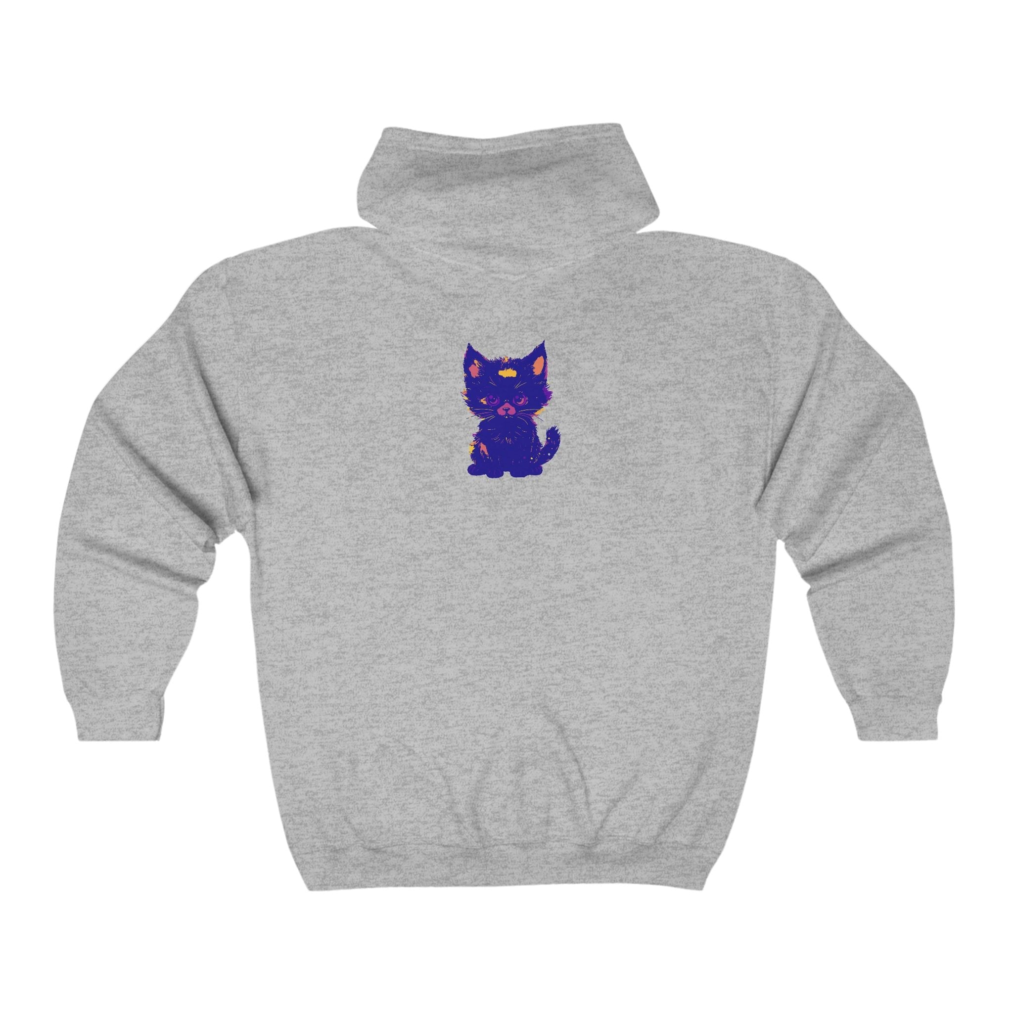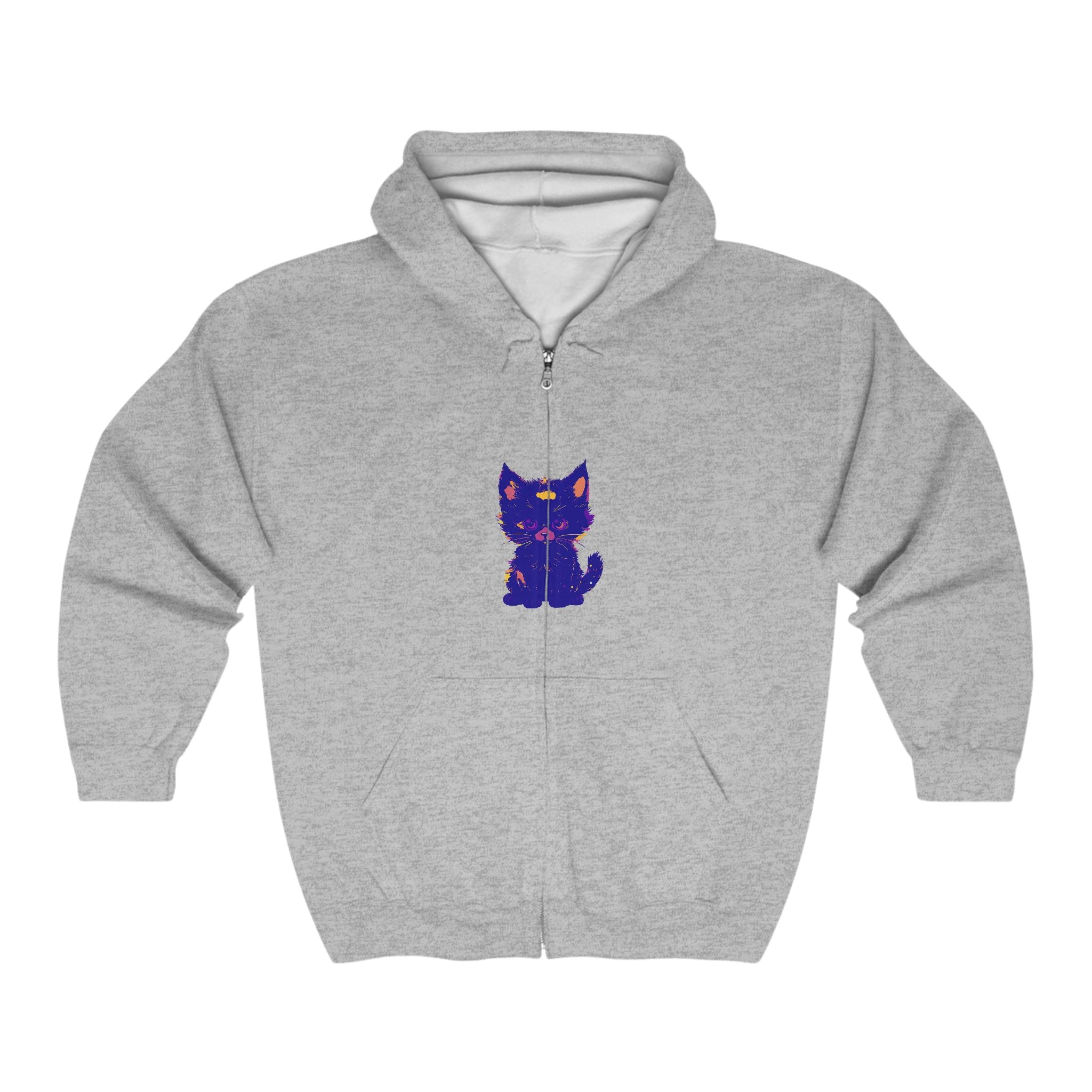Lasciati conquistare dall'incantevole fascino di un mistico gatto blu, splendidamente illustrato in tonalità vibranti che danzano sul tessuto. Il design accattivante ti trasporta in un mondo di fantasia e fascino, dove l'elegante felino sembra quasi vivo, invitandoti a esplorare il suo spirito giocoso. Questa comoda felpa con cappuccio non è solo un capo d'abbigliamento; è una tela d'arte che racconta una storia.