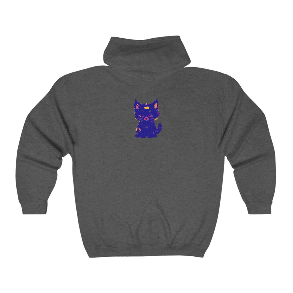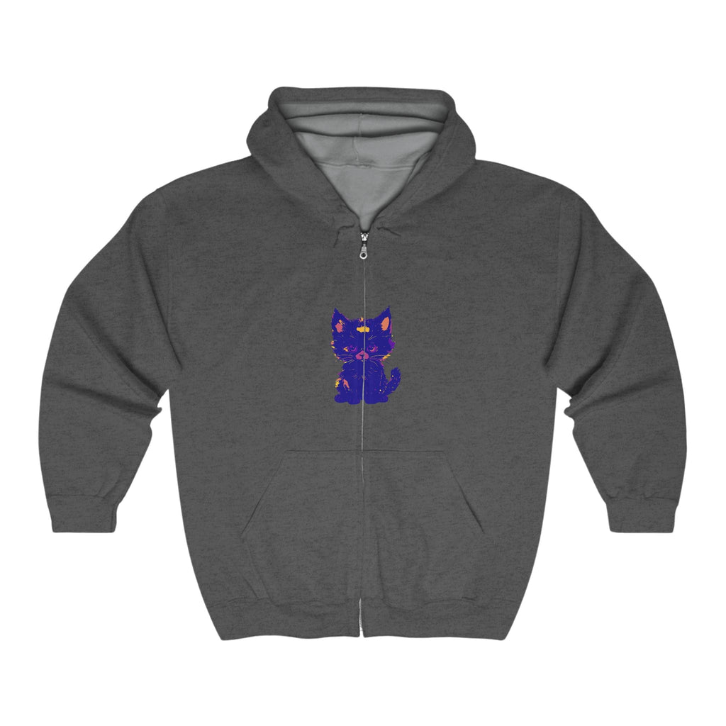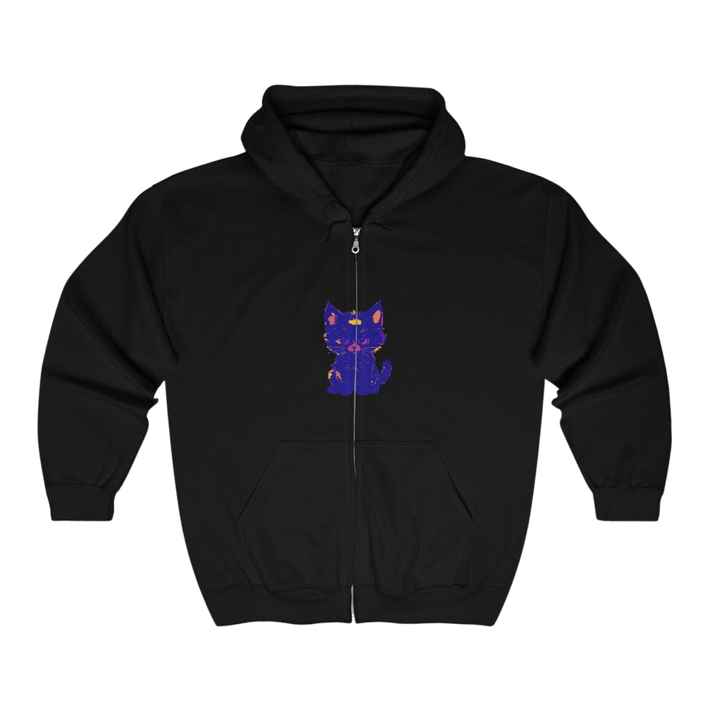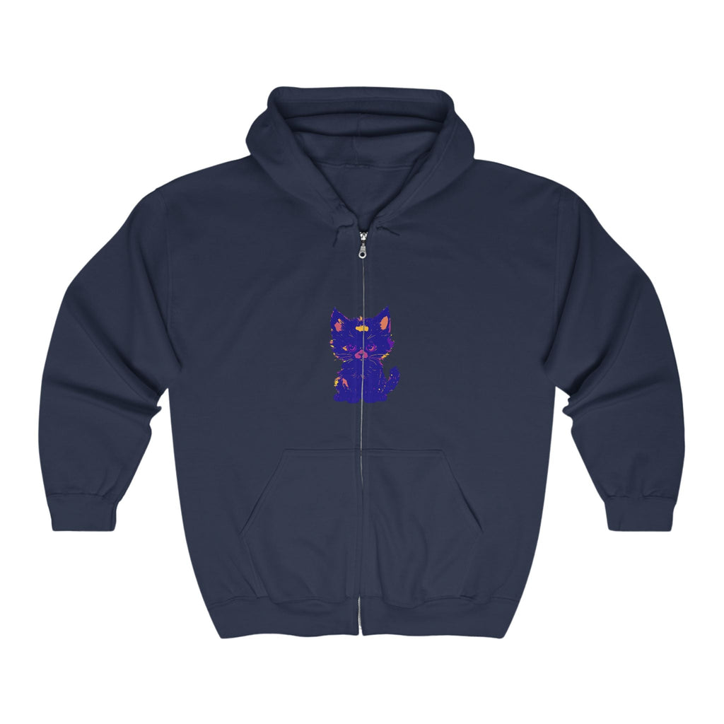 Lasciati conquistare dall'incantevole fascino di un mistico gatto blu, splendidamente illustrato in tonalità vibranti che danzano sul tessuto. Il design accattivante ti trasporta in un mondo di fantasia e fascino, dove l'elegante felino sembra quasi vivo, invitandoti a esplorare il suo spirito giocoso. Questa comoda felpa con cappuccio non è solo un capo d'abbigliamento; è una tela d'arte che racconta una storia.