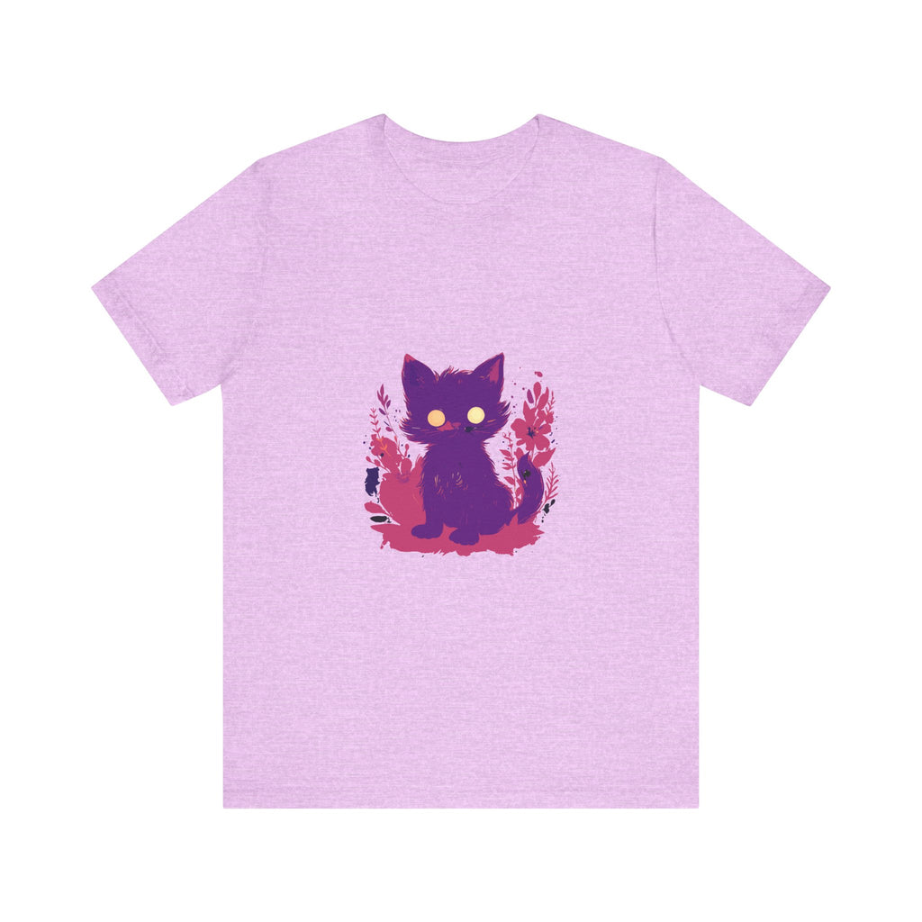 Lasciati avvolgere dal fascino irresistibile di un bizzarro felino viola, circondato da incantevoli elementi floreali. Questo design vivace infonde vitalità al tuo guardaroba, incarnando uno spirito di divertimento e creatività che ogni amante dei gatti adorerà. Che tu stia rilassandoti a casa o fuori con gli amici, questa t-shirt grafica è la tela perfetta per esprimere te stessa.