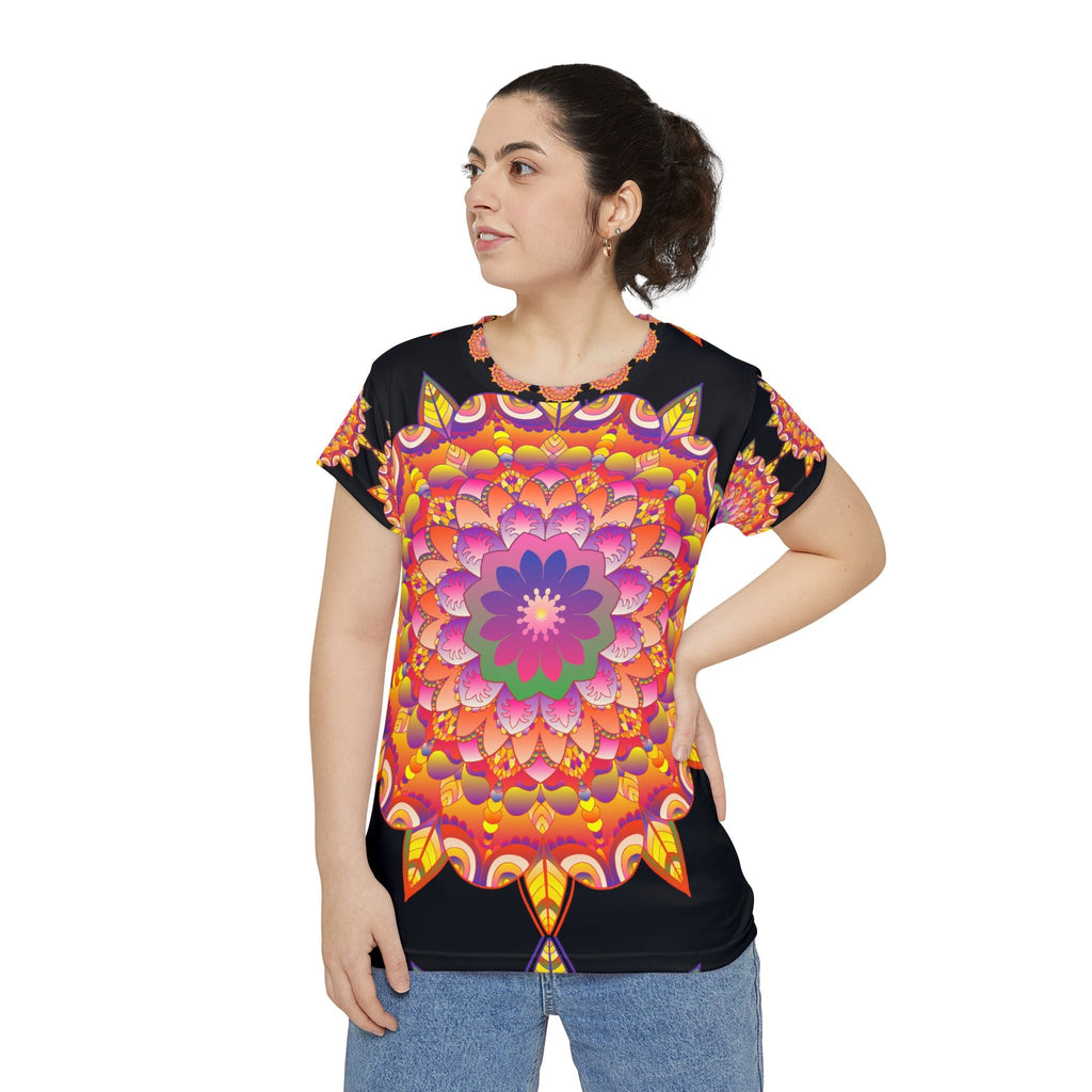 Libera il tuo spirito interiore con questa accattivante t-shirt, caratterizzata da uno splendido motivo mandala che irradia energia vibrante e armonia. I motivi intricati si fondono in un tripudio di colori – rosa acceso, viola intenso e arancio brillante – che infonderanno un senso di gioia e un tocco artistico al tuo guardaroba. Non è solo un capo d'abbigliamento; è una tela indossabile che ti invita a esprimere il tuo stile unico.