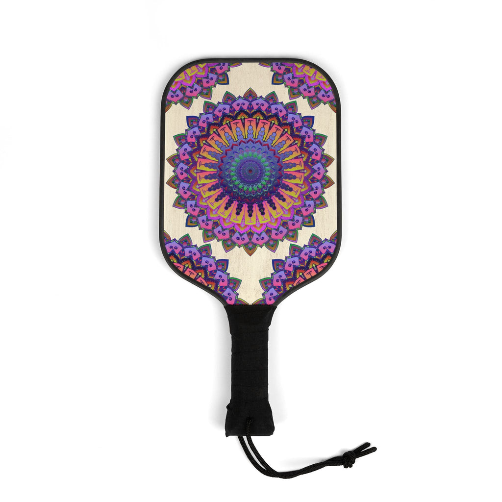 Set artistico Mandala Pickleball con accenti viola e gialli intensi