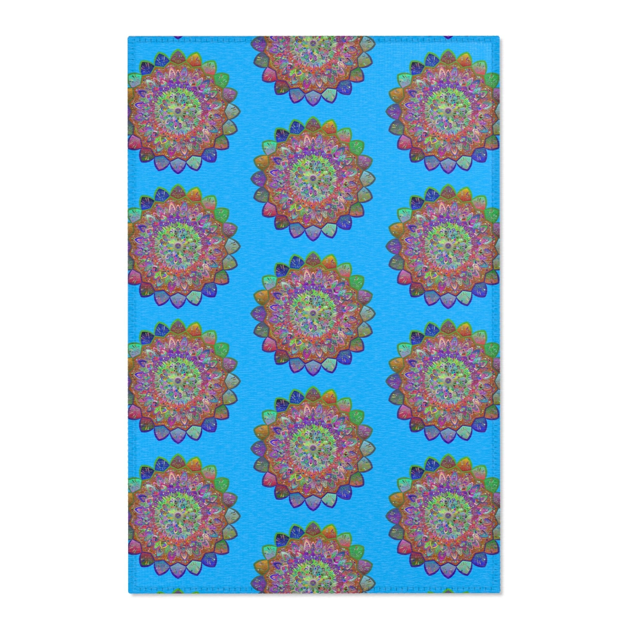 Immerse yourself in a vibrant world of color and harmony with this stunning mandala area rug. The lively patterns, set against a serene blue backdrop, evoke a sense of tranquility and joy, making it the perfect centerpiece for any room. Each enchanting mandala invites you to explore its intricate details, promoting a soothing atmosphere in your home.