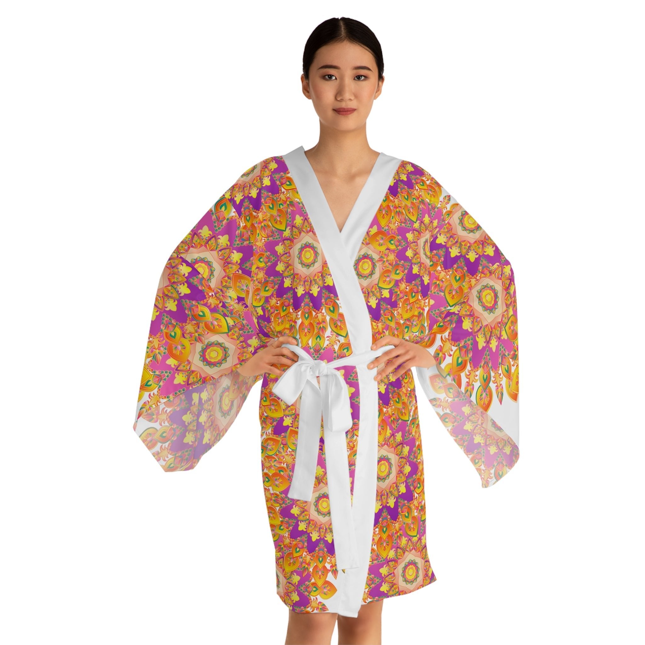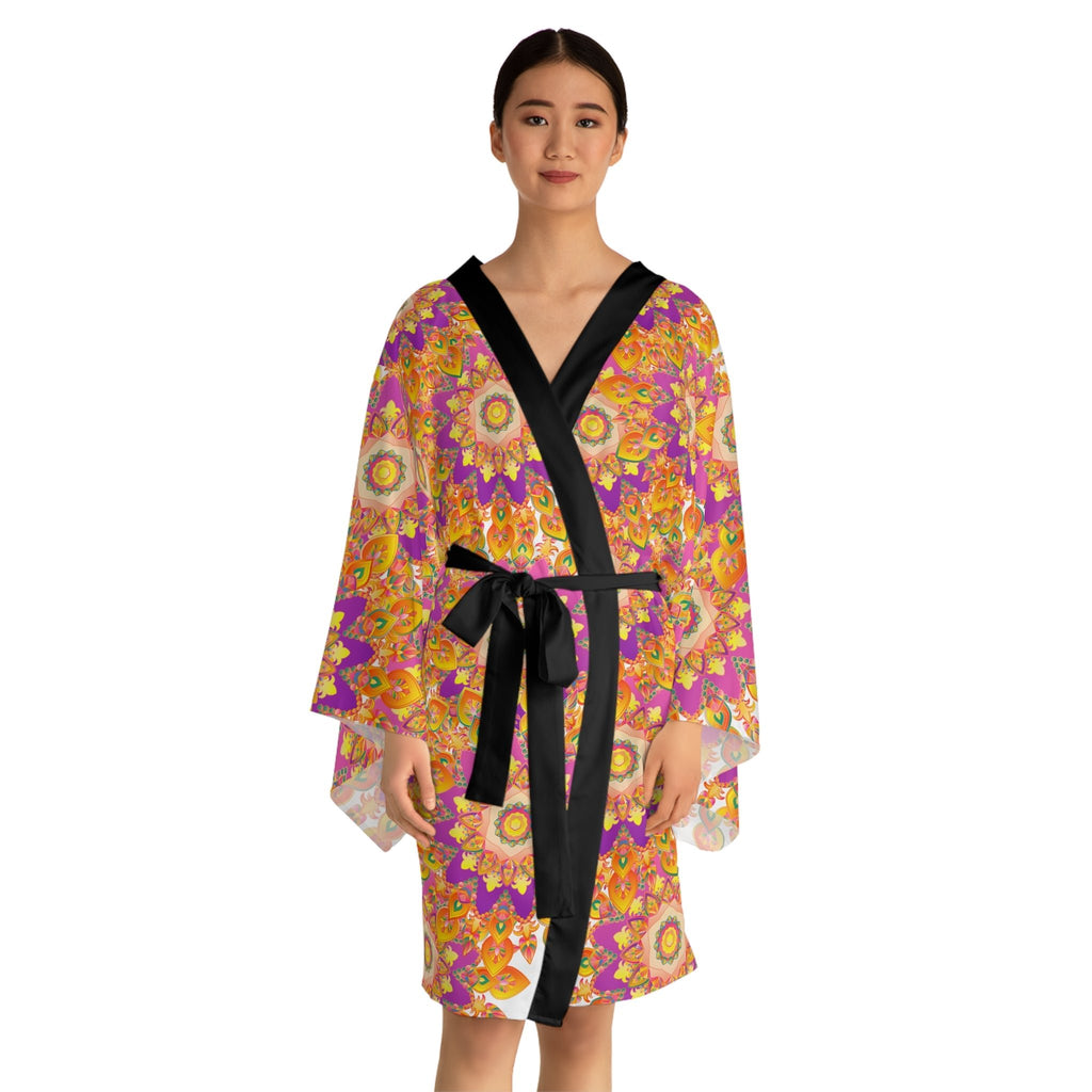 Wrap yourself in a breathtaking tapestry of vibrant mandala patterns, where bold pinks and fiery oranges dance together in a celebration of artistic expression. This stunning kimono robe exudes a sense of freedom and creativity, transforming your lounging experience into a vibrant escape. Each intricate design tells a story, inviting you to embrace your unique style with a splash of color and flair.
