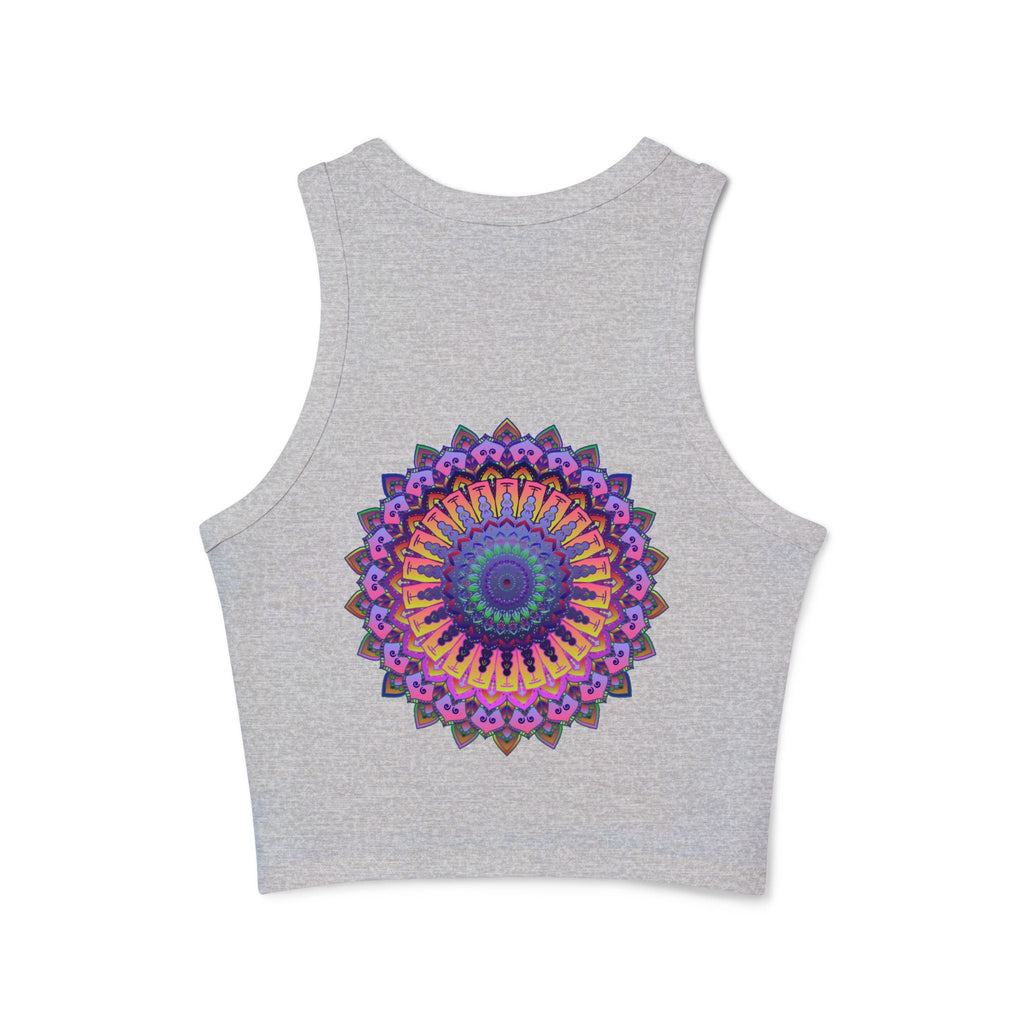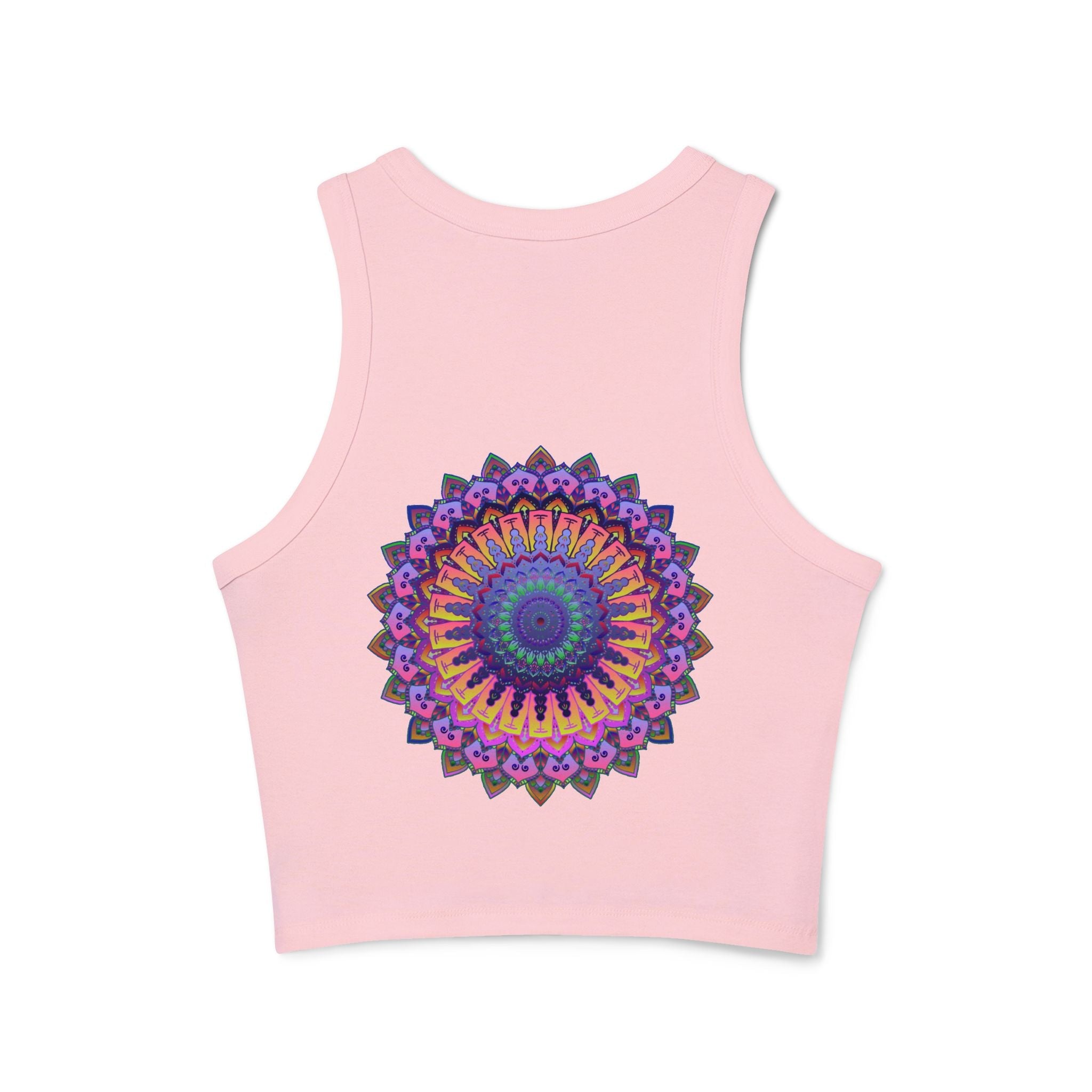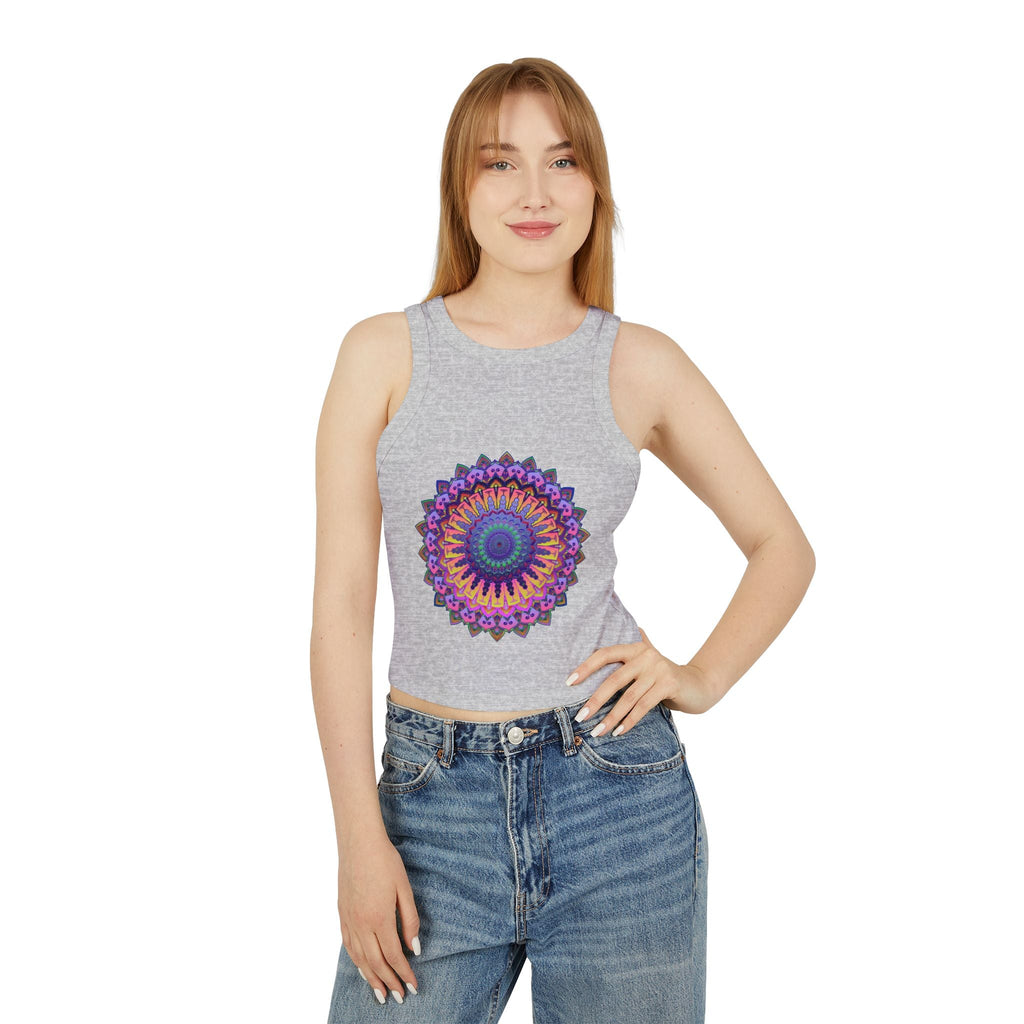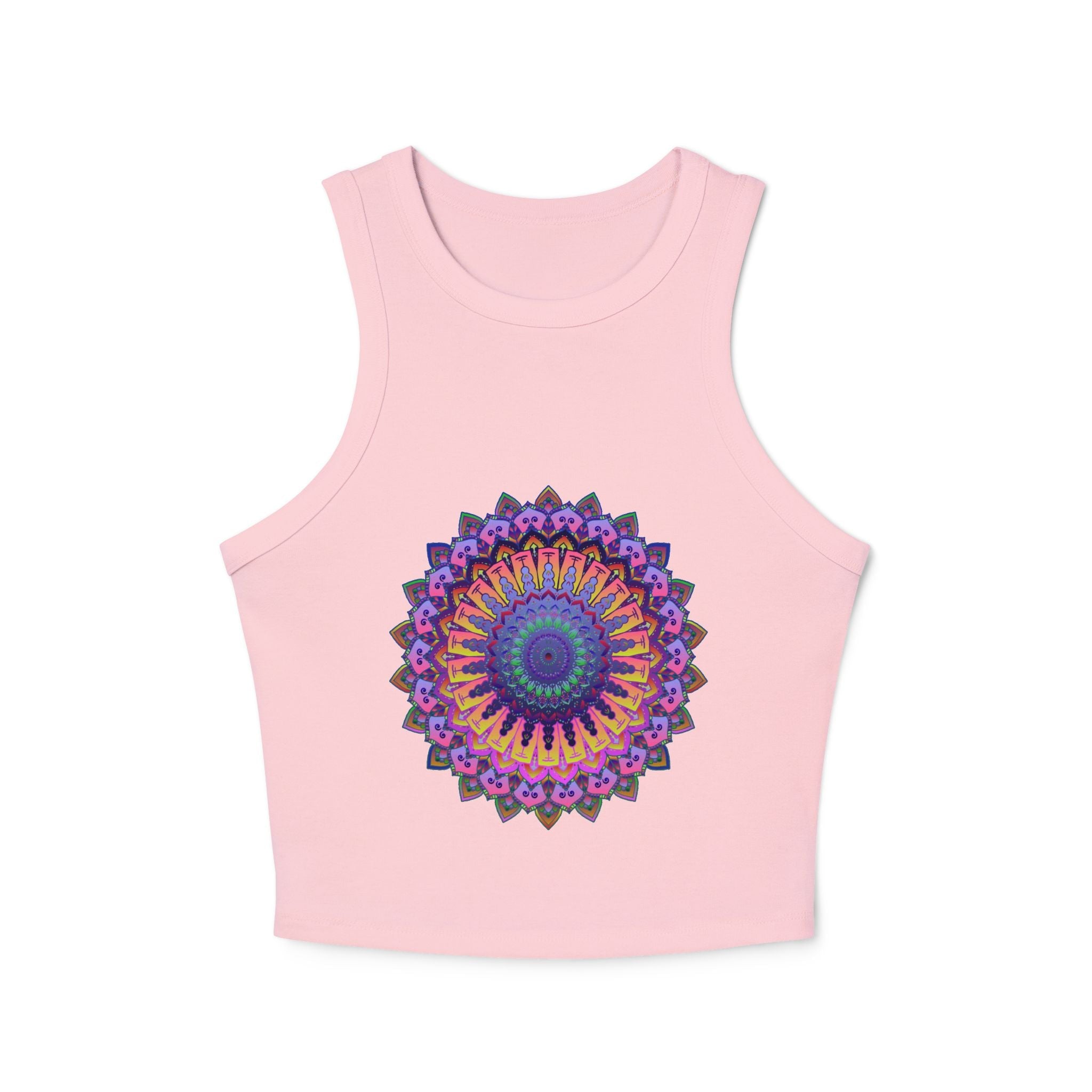 Radiating with vibrant purple and pink tones, this stunning racerback tank top features a mesmerizing mandala design that draws you into a world of tranquility and creativity. Each intricate pattern invites a sense of mindfulness, embodying a harmonious blend of traditional artistry and modern flair. This piece of wearable art transforms your everyday routine into a colorful celebration of individuality.