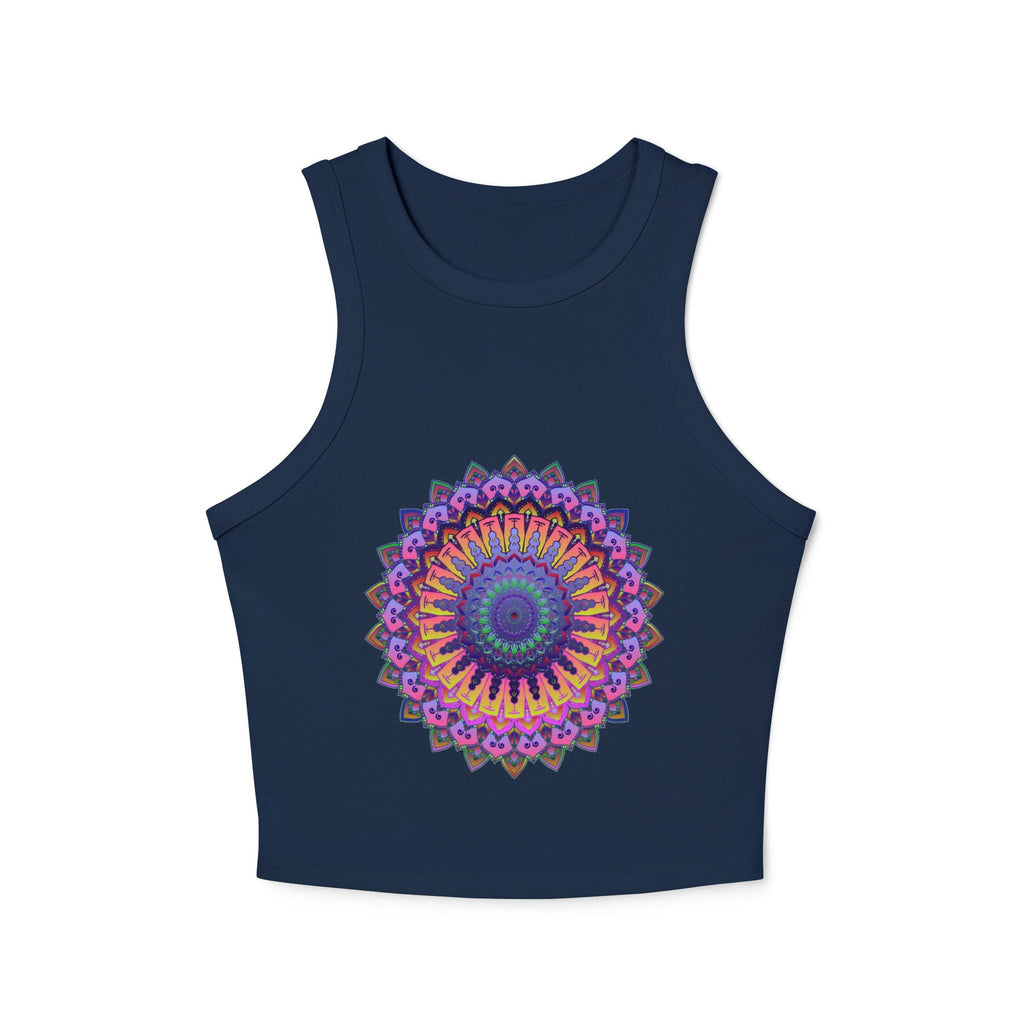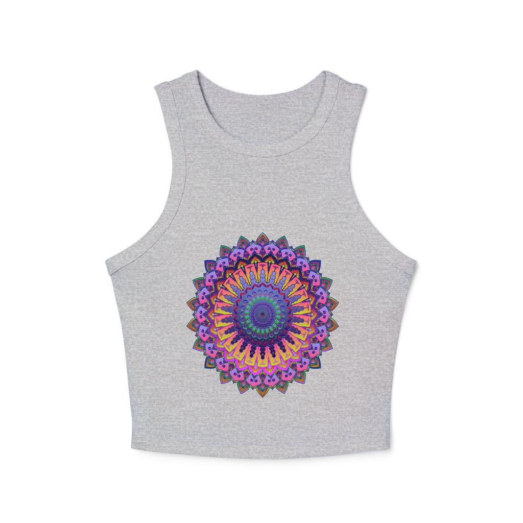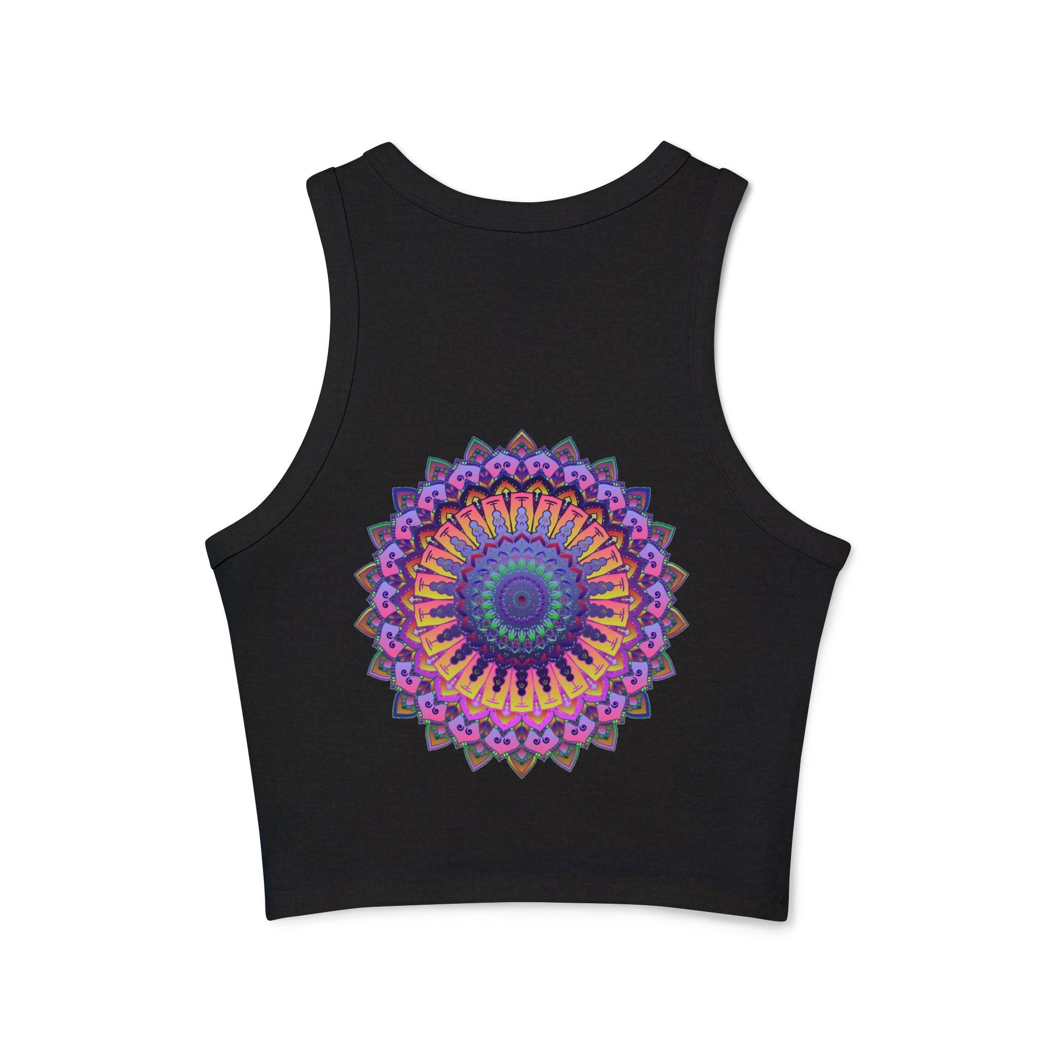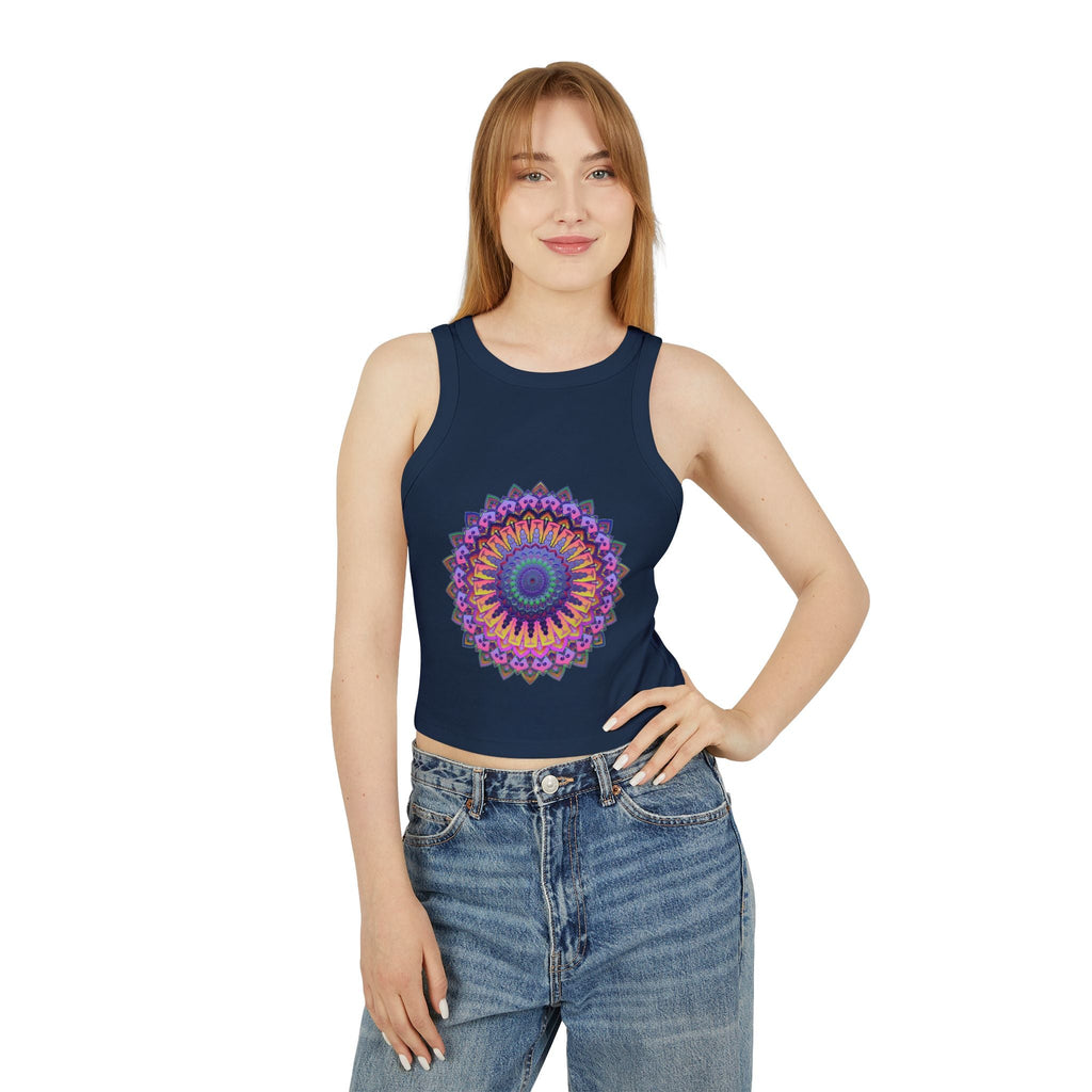 Radiating with vibrant purple and pink tones, this stunning racerback tank top features a mesmerizing mandala design that draws you into a world of tranquility and creativity. Each intricate pattern invites a sense of mindfulness, embodying a harmonious blend of traditional artistry and modern flair. This piece of wearable art transforms your everyday routine into a colorful celebration of individuality.