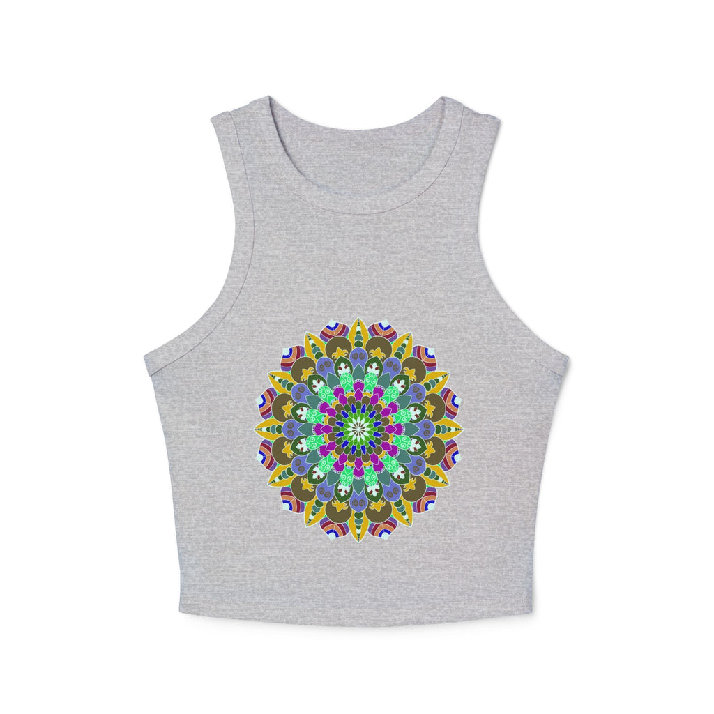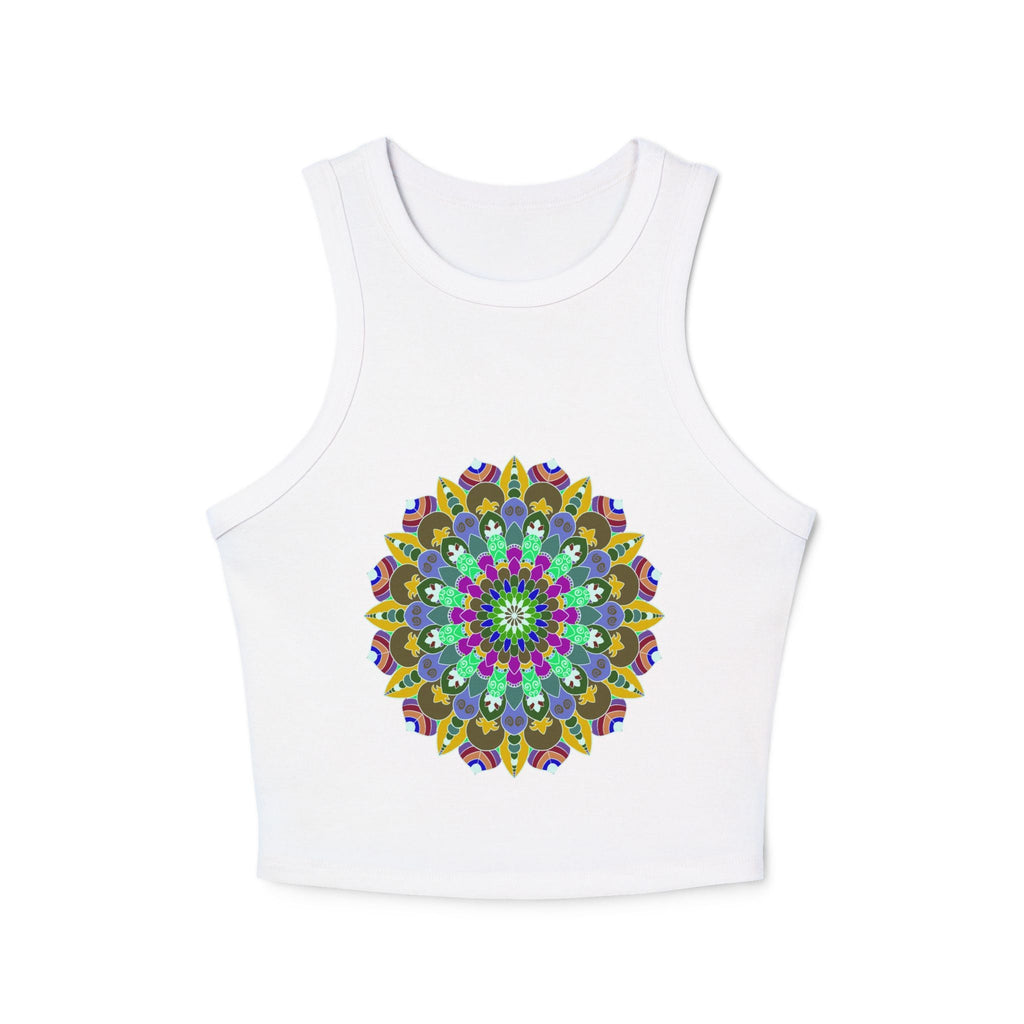 Unleash your inner spirit with a stunning racerback tank top that captivates with its intricate mandala design. Rich jewel tones swirl together in a mesmerizing tapestry, evoking feelings of peace and creativity. Each glance at the vibrant patterns transports you to a world of tranquility and inspiration, making this piece more than just clothing—it's a statement of your colorful lifestyle.