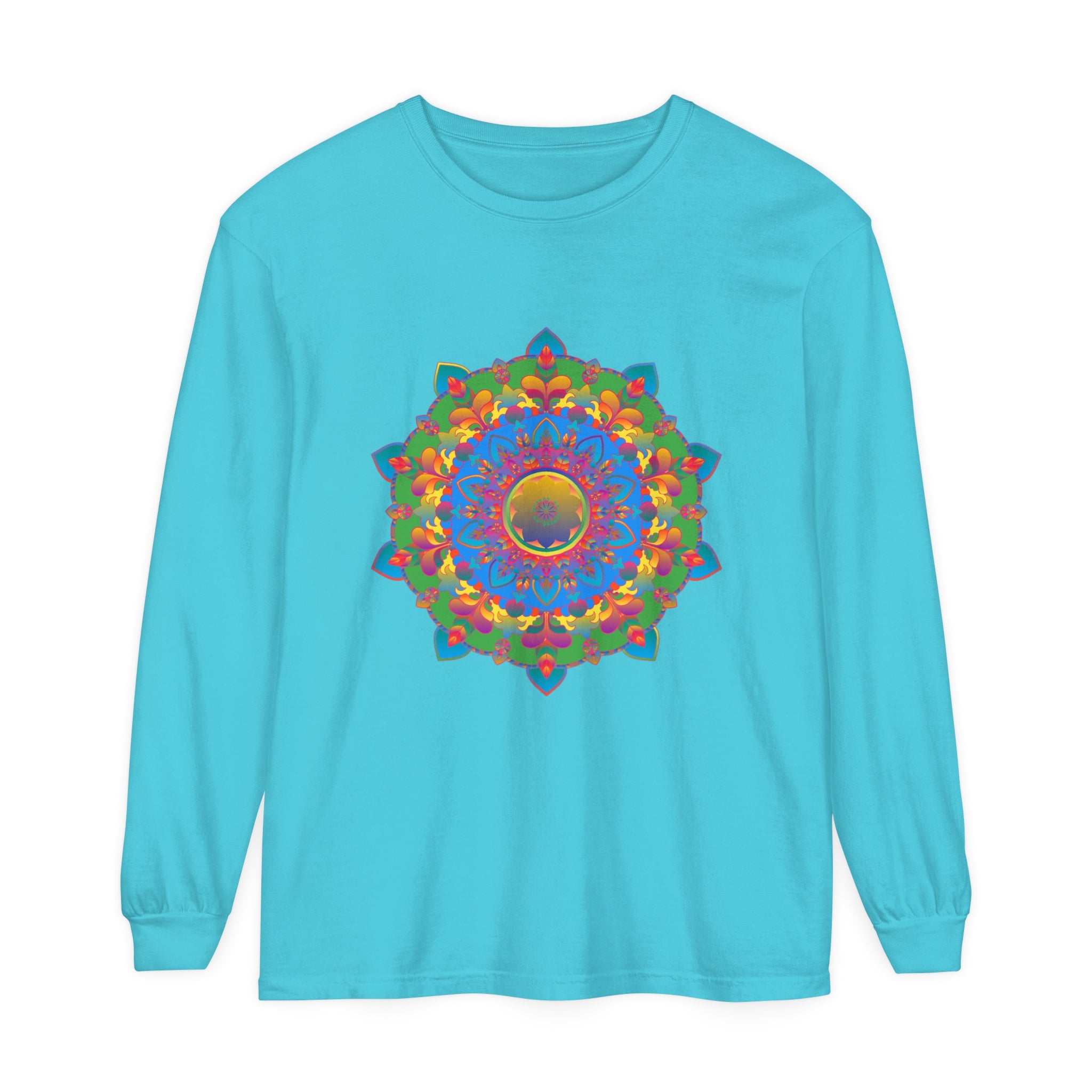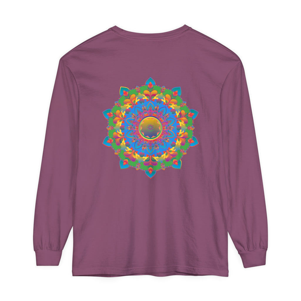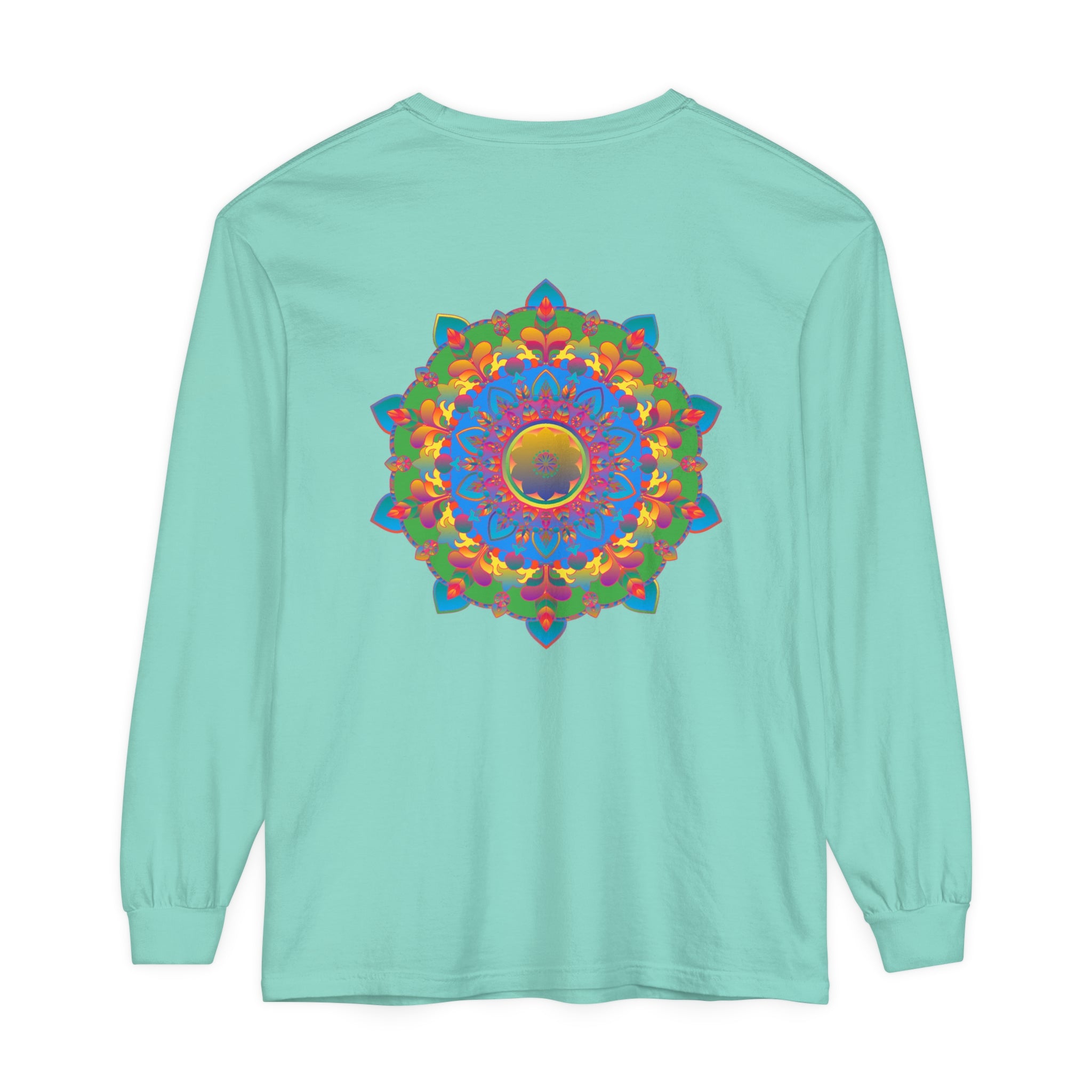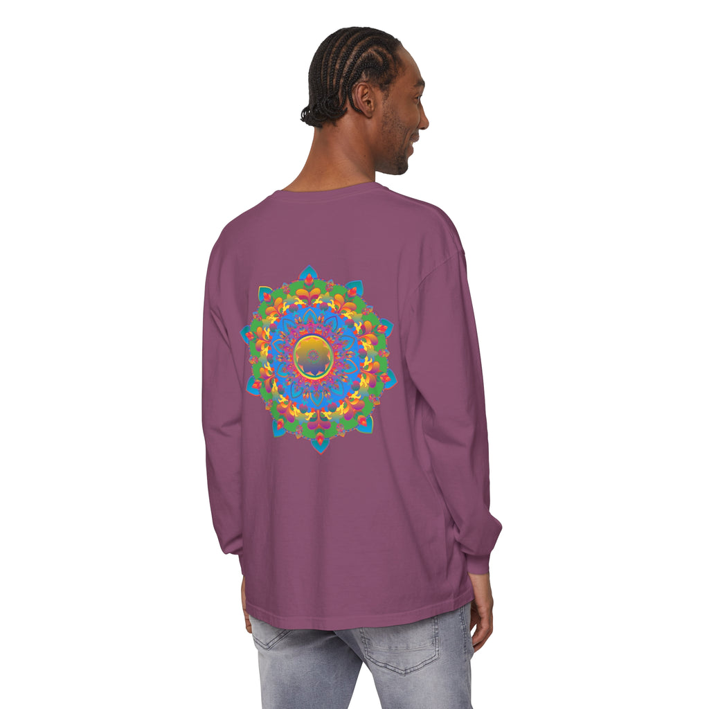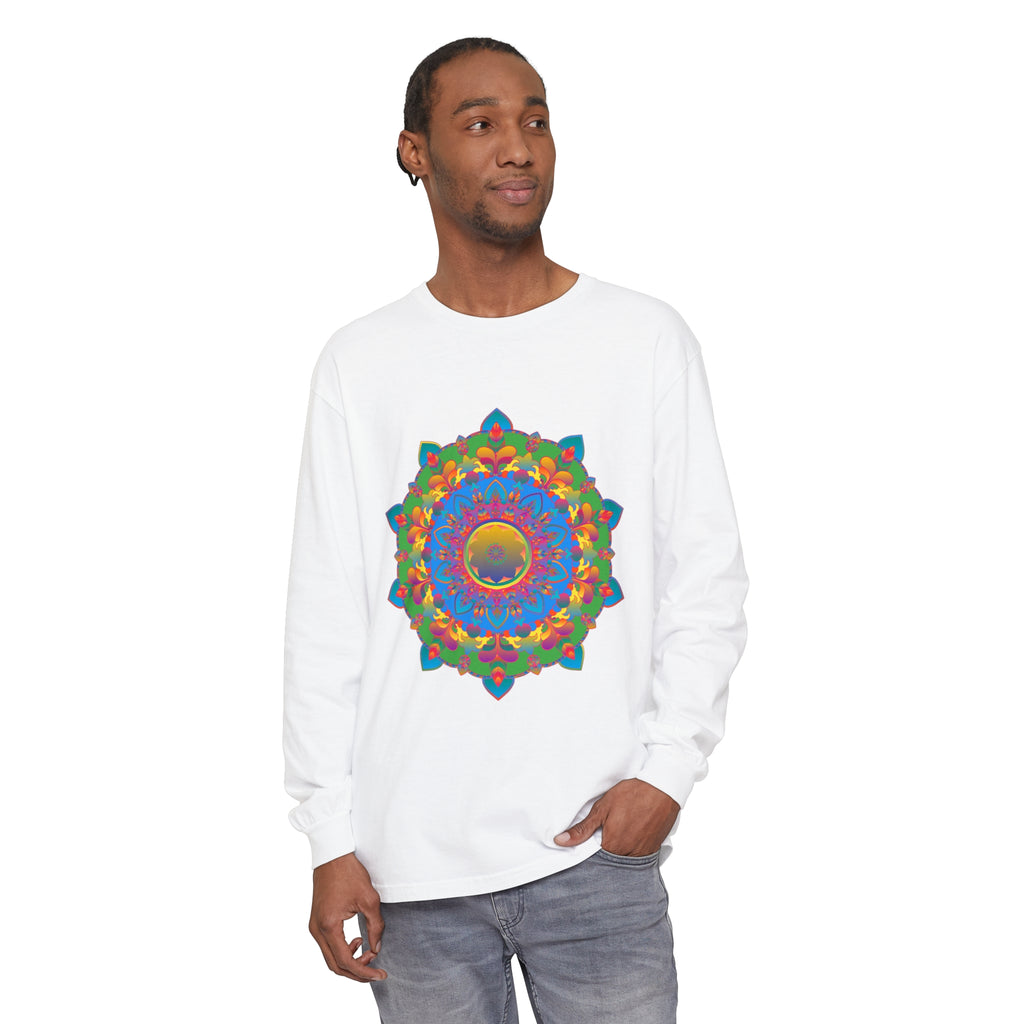 Eye-catching long sleeve t-shirt with a vibrant and detailed mandala design