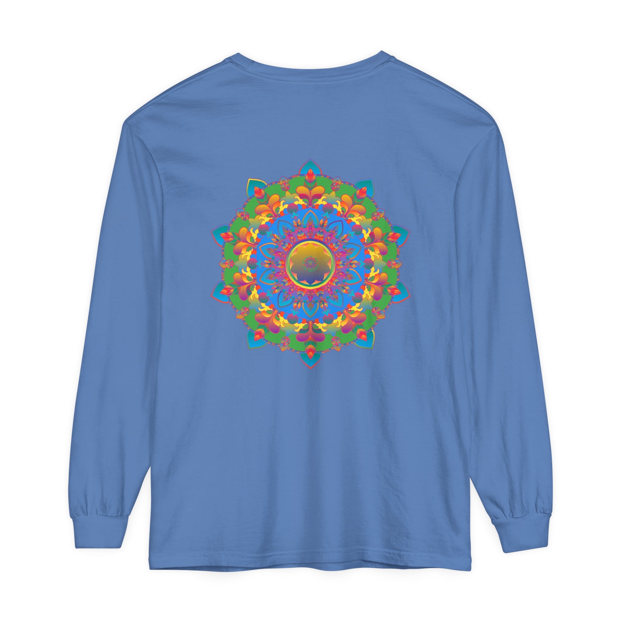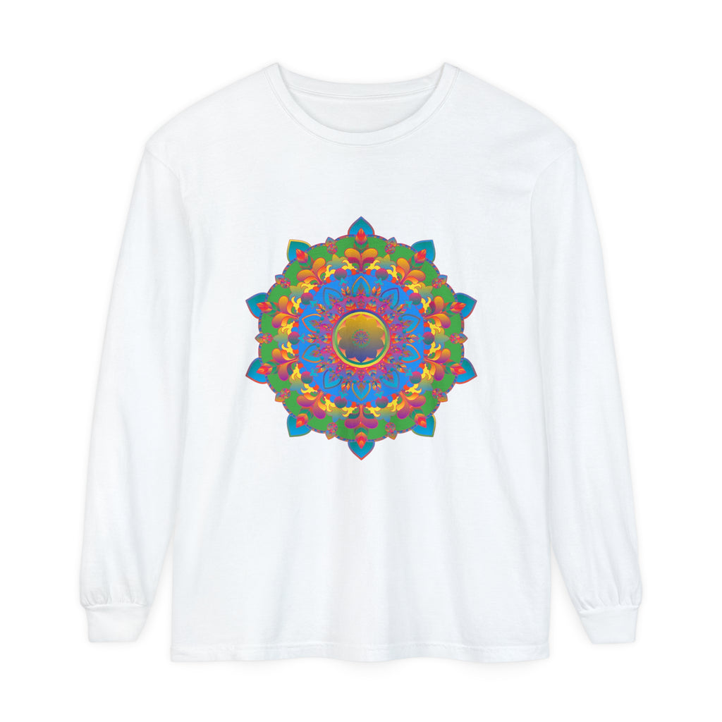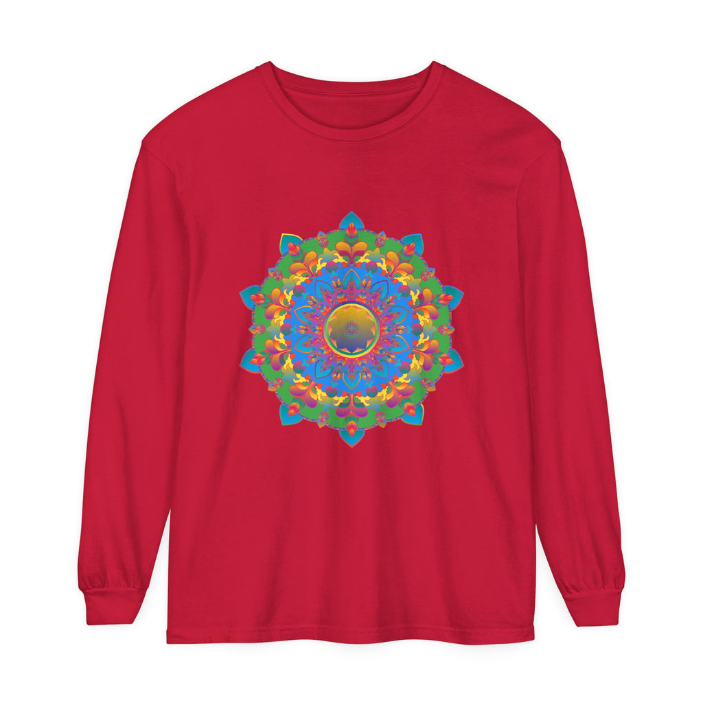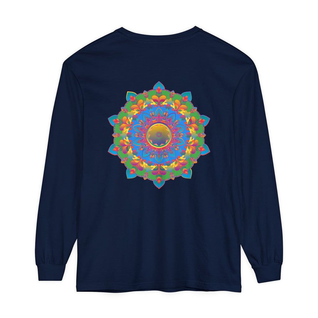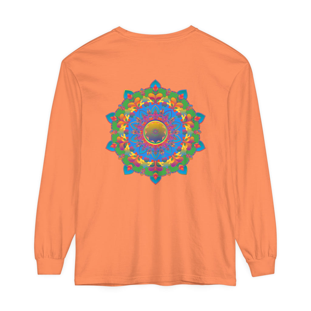 Eye-catching long sleeve t-shirt with a vibrant and detailed mandala design