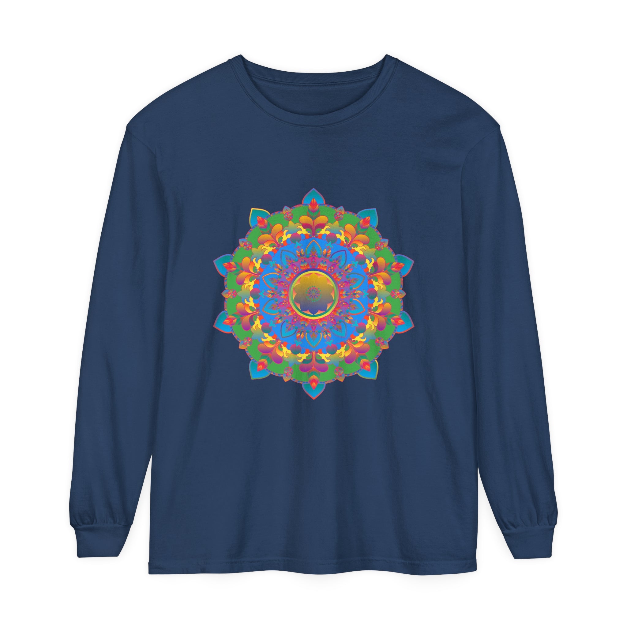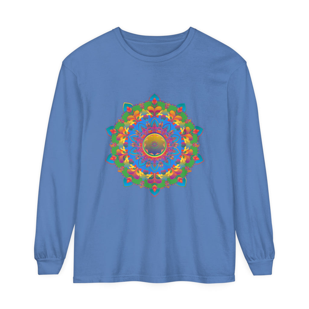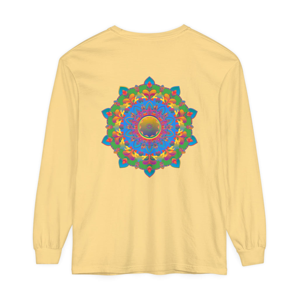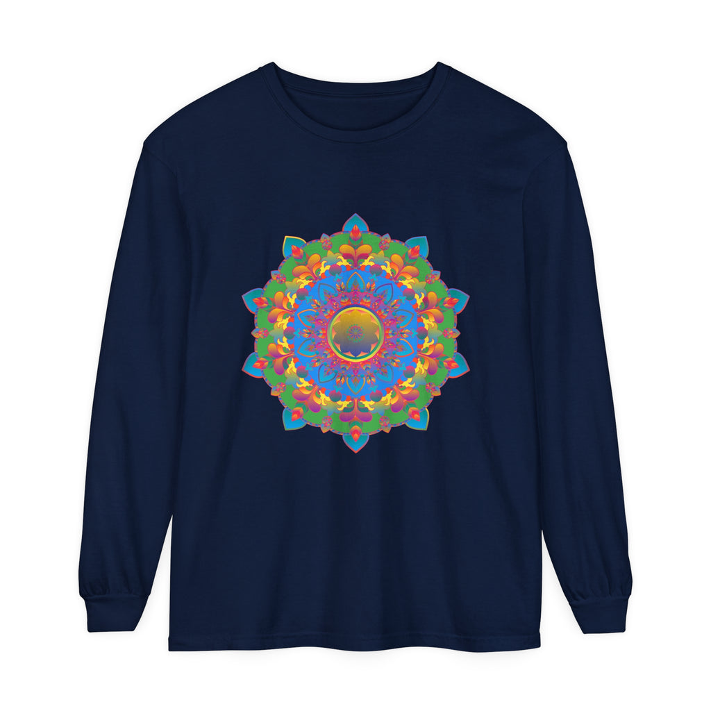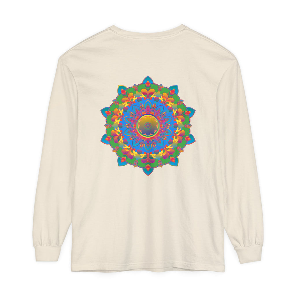 Eye-catching long sleeve t-shirt with a vibrant and detailed mandala design