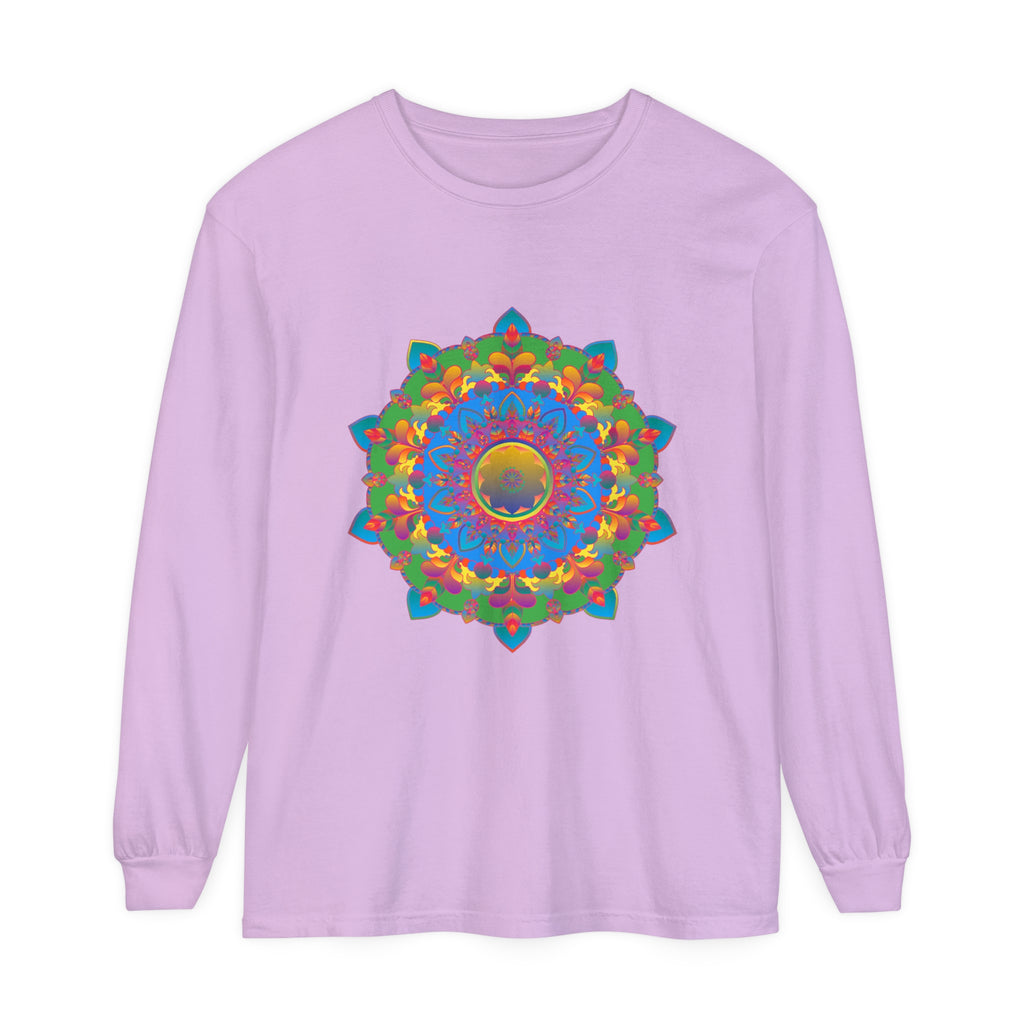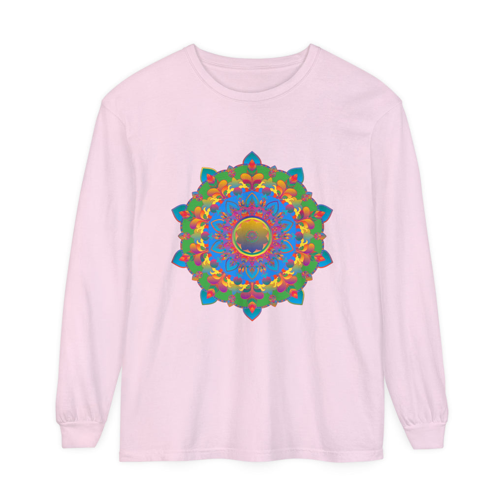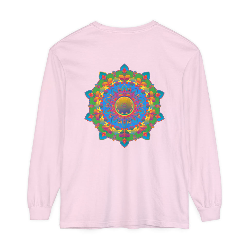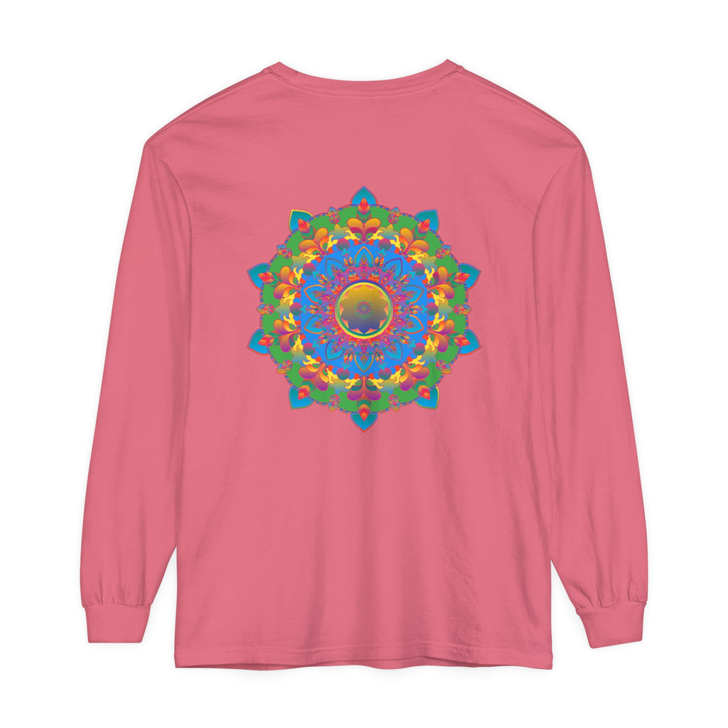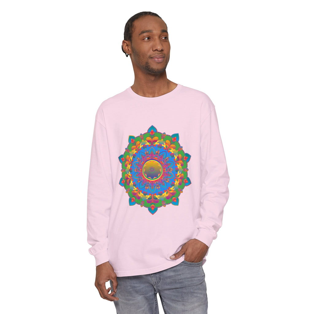 Eye-catching long sleeve t-shirt with a unique and vibrant mandala pattern