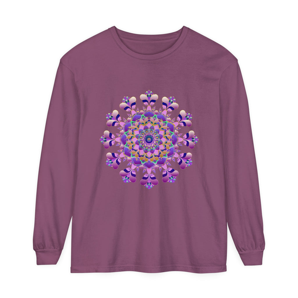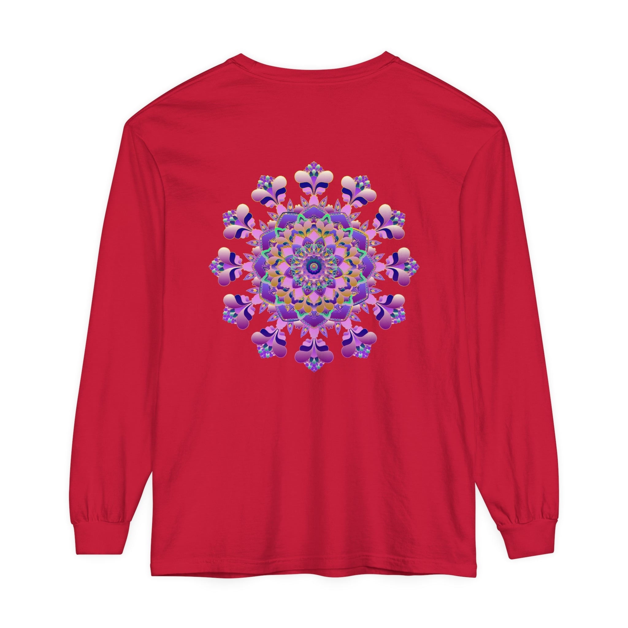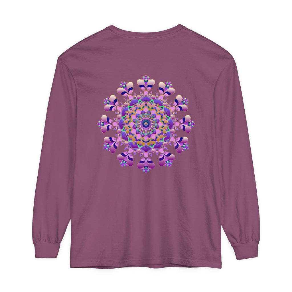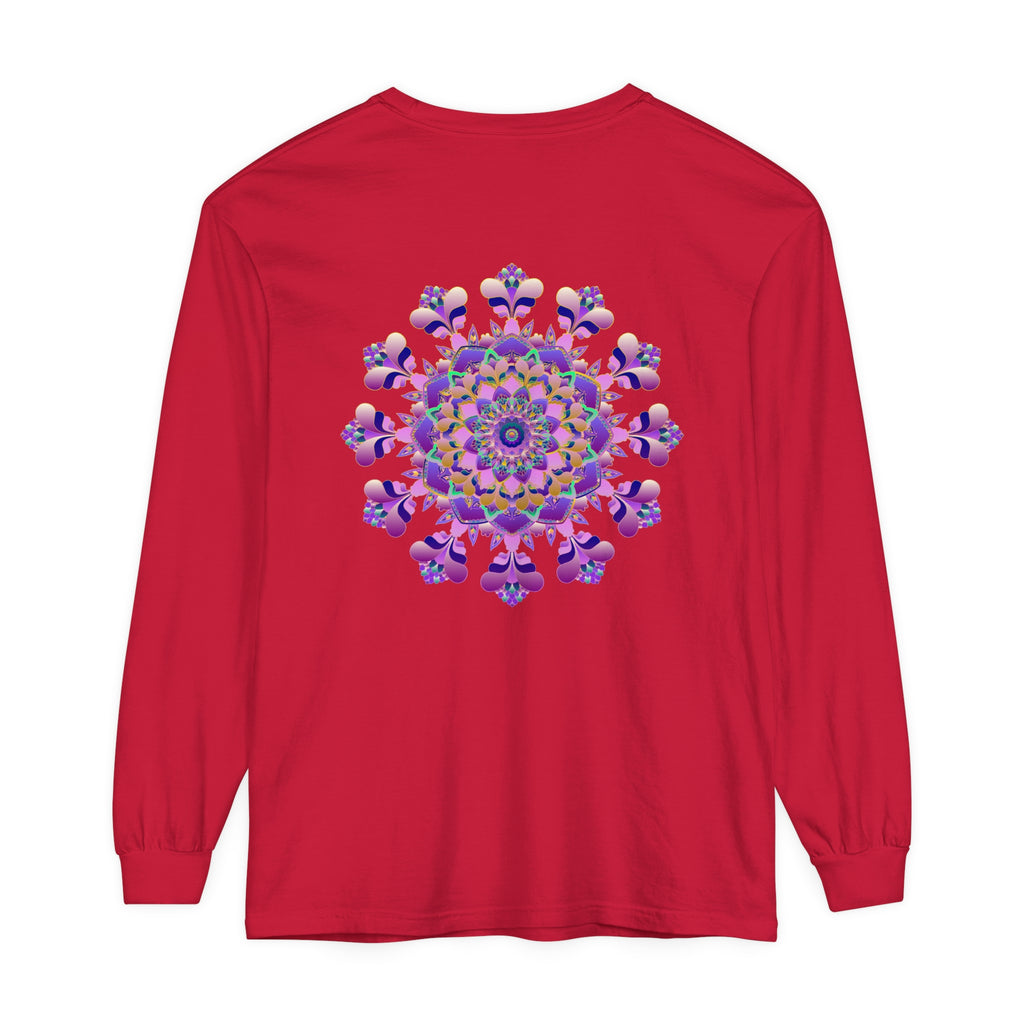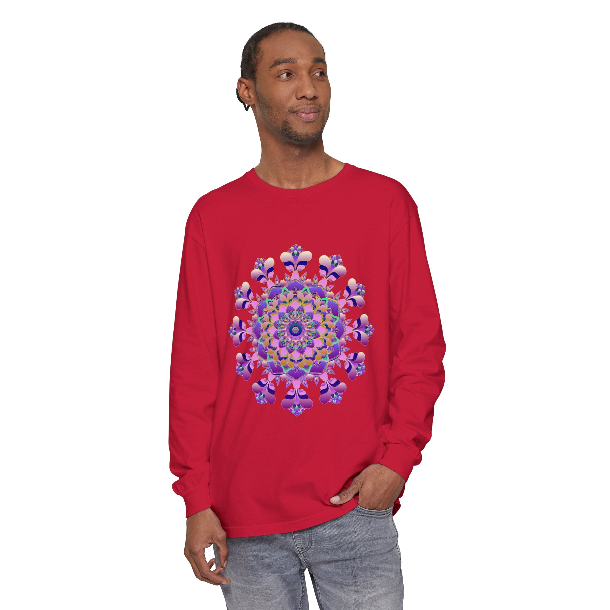 A vibrant and intricate mandala design adorns this unisex long sleeve t-shirt