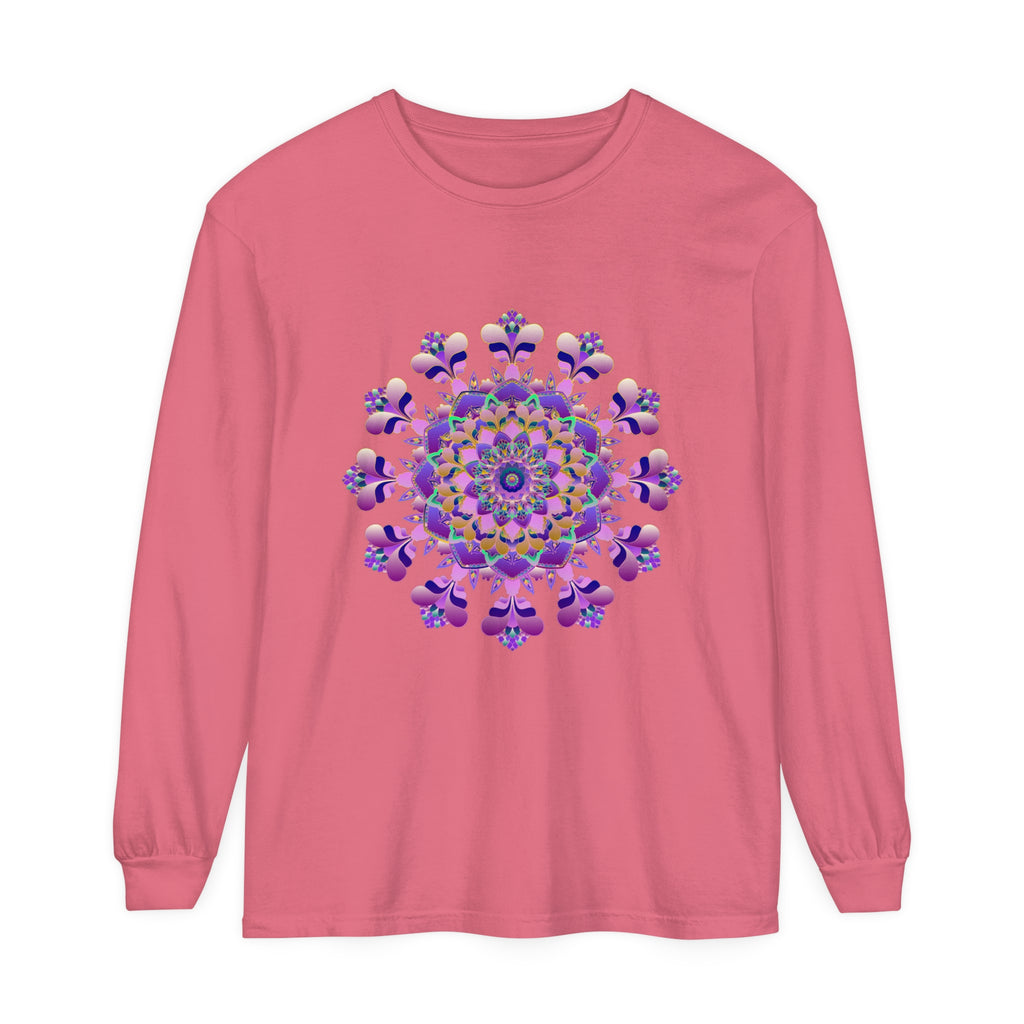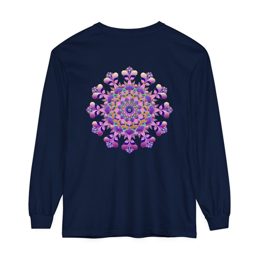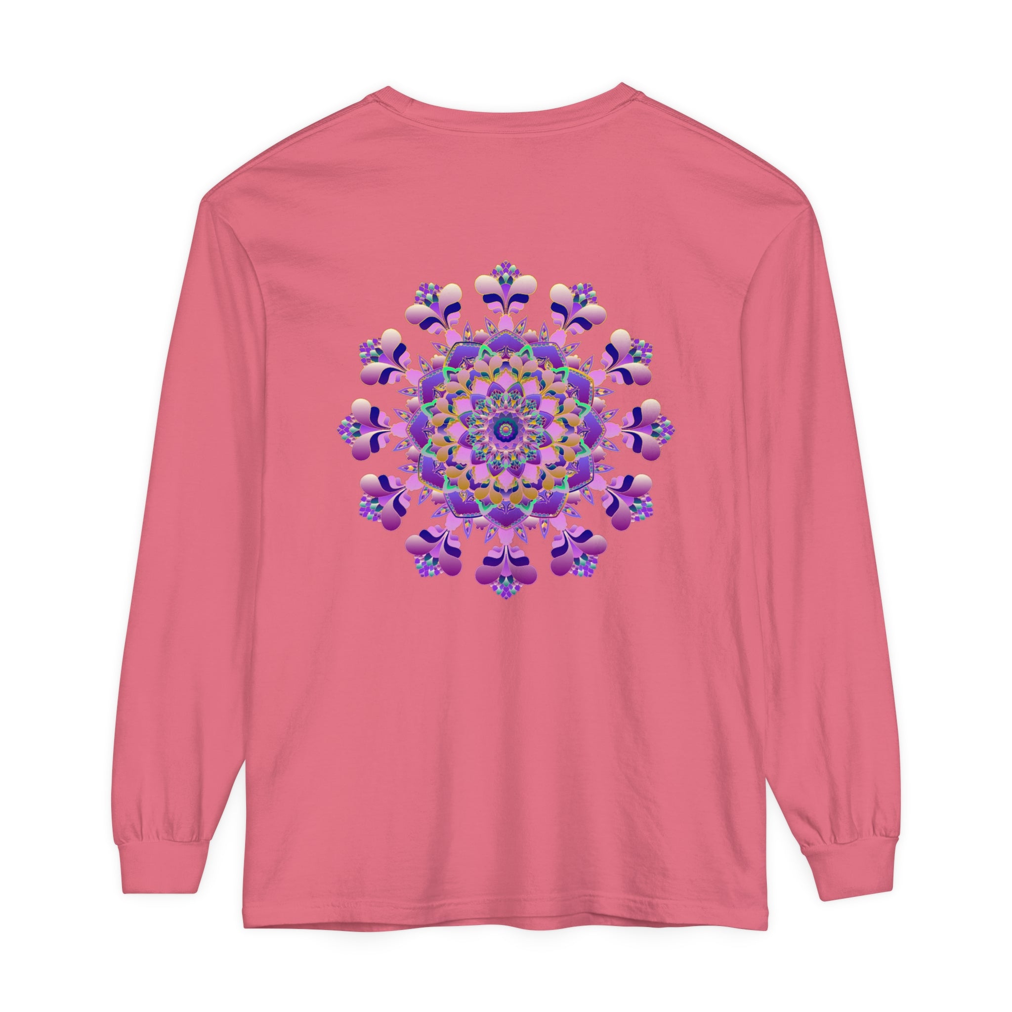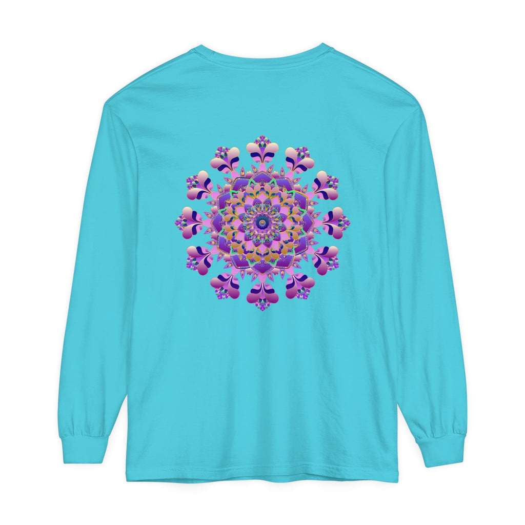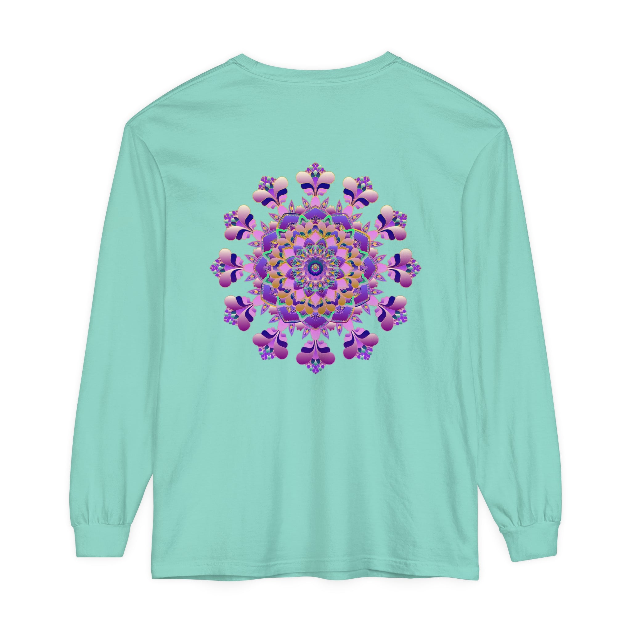 A vibrant and intricate mandala design adorns this unisex long sleeve t-shirt