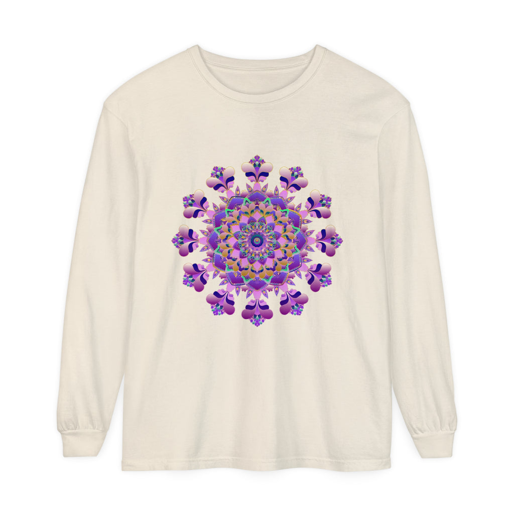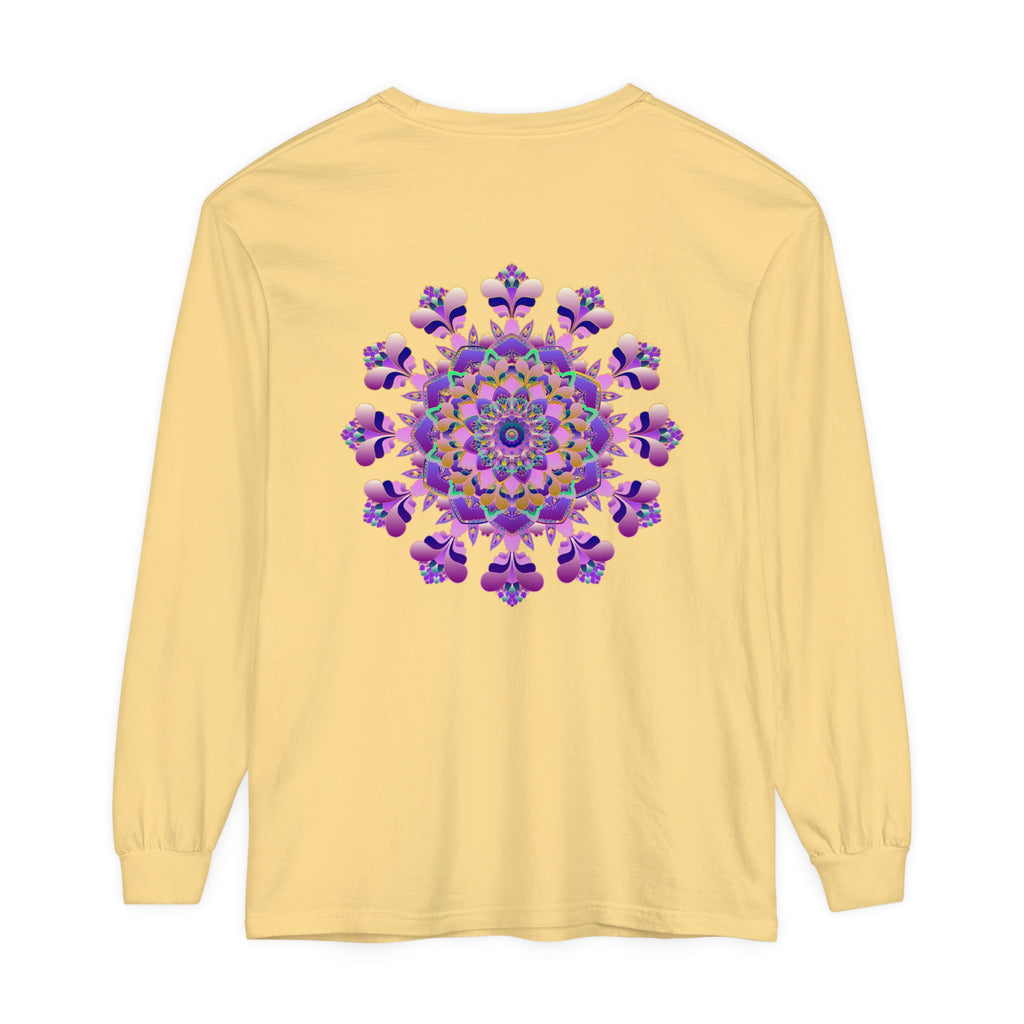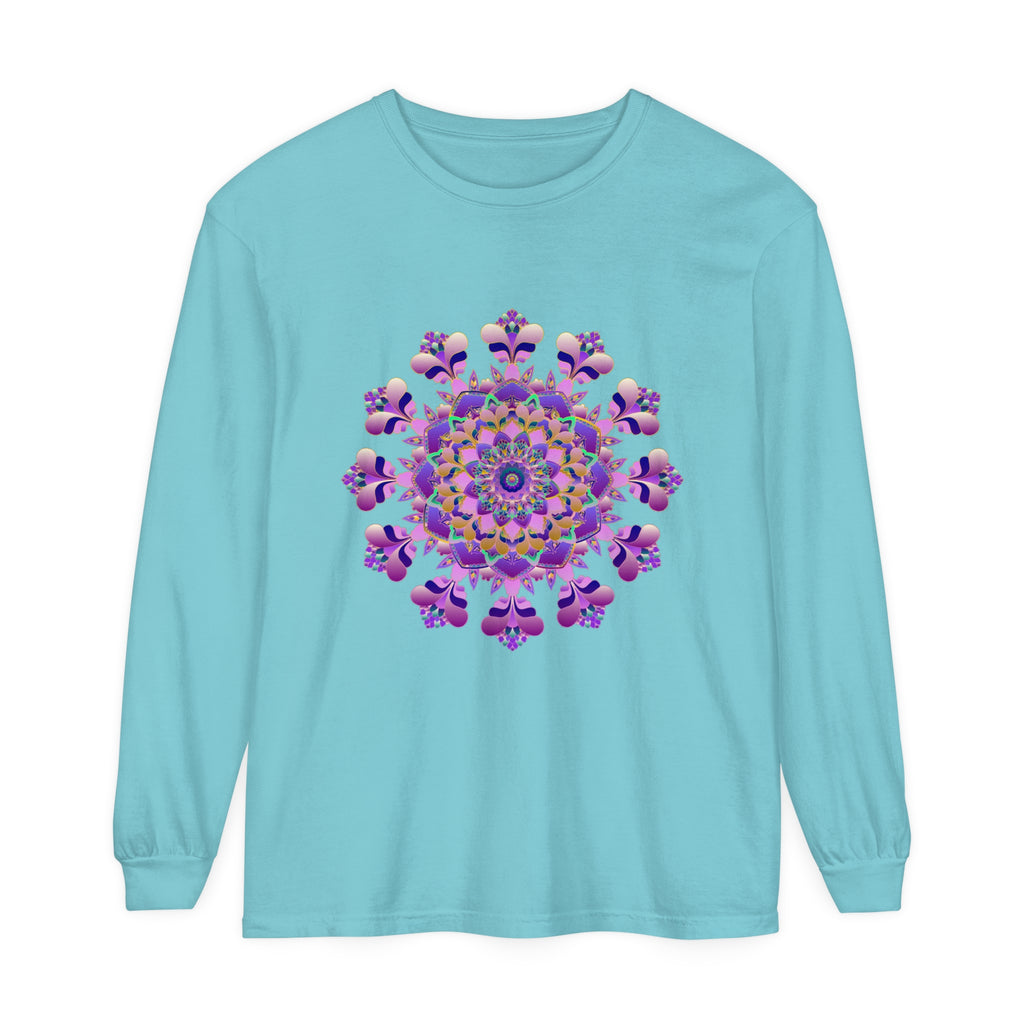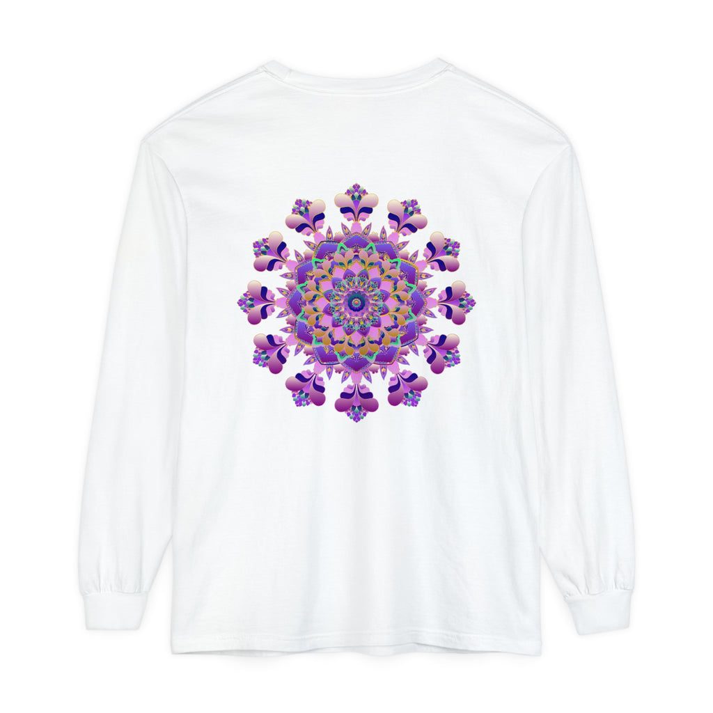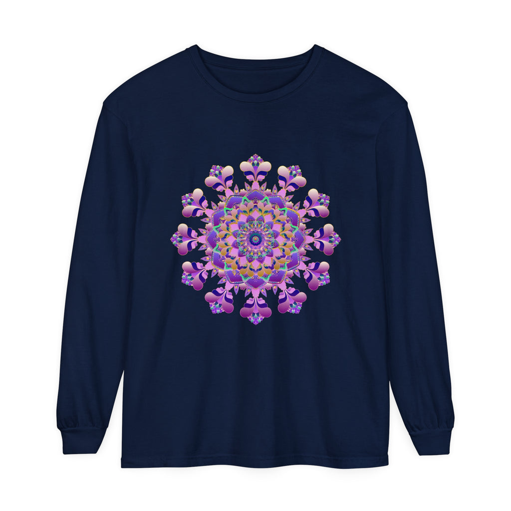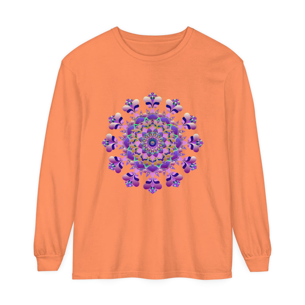 A vibrant and intricate mandala design adorns this unisex long sleeve t-shirt