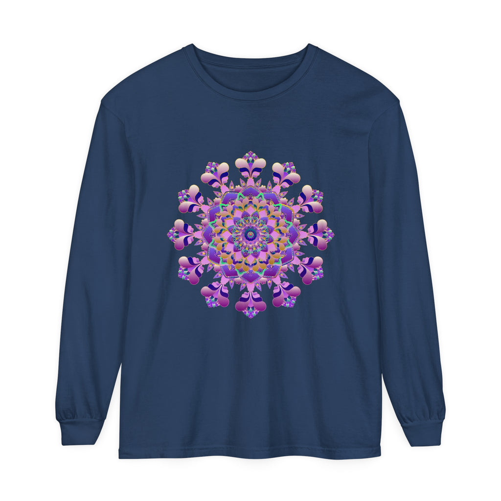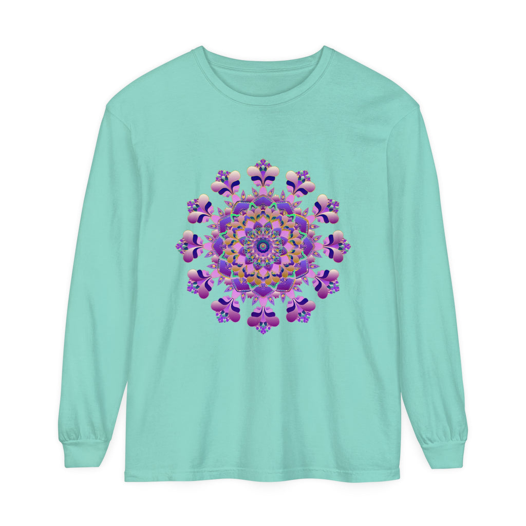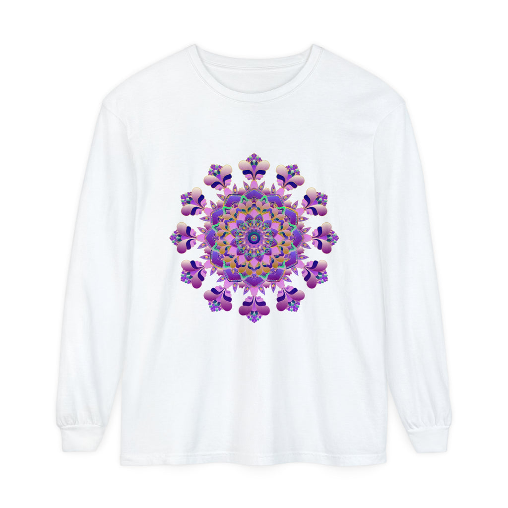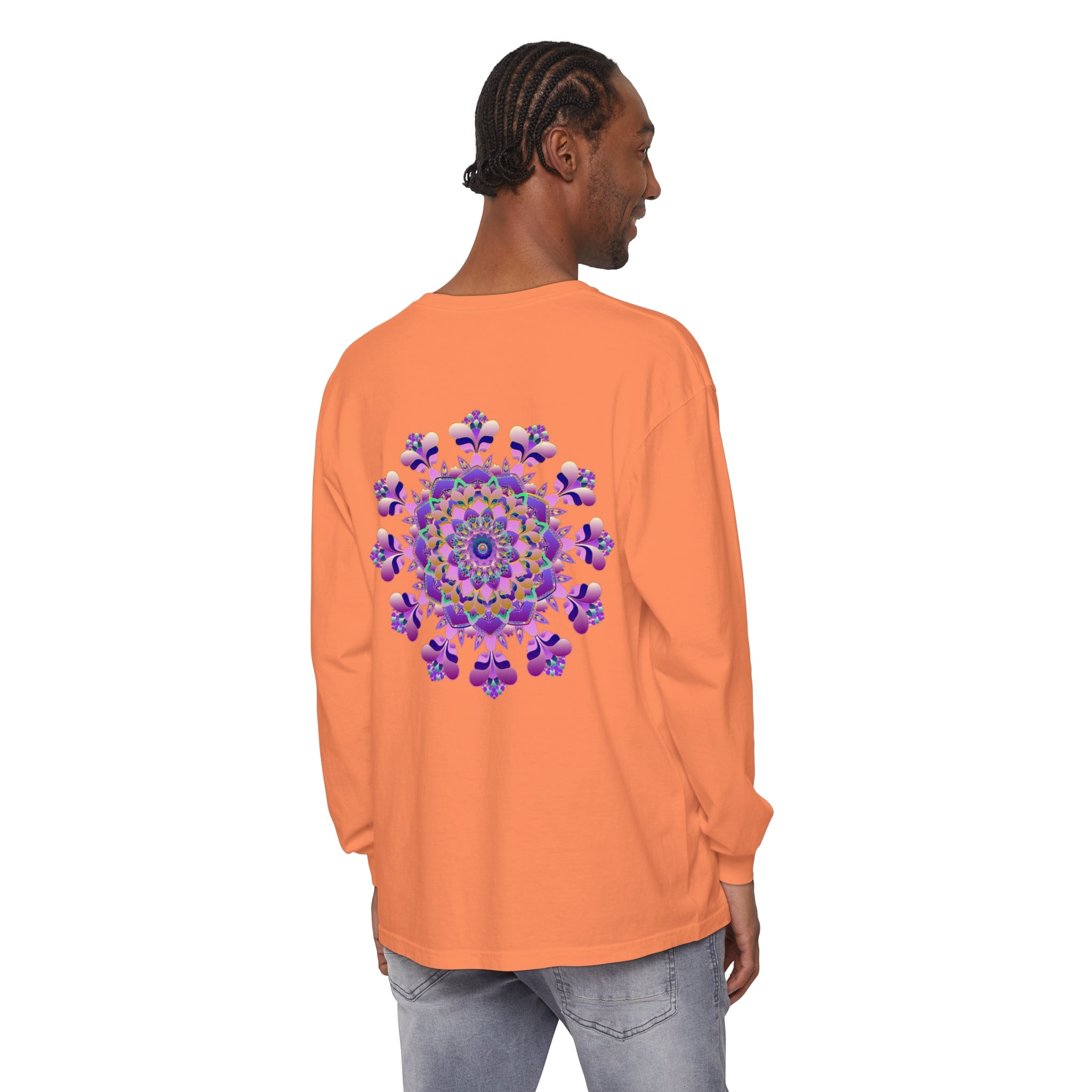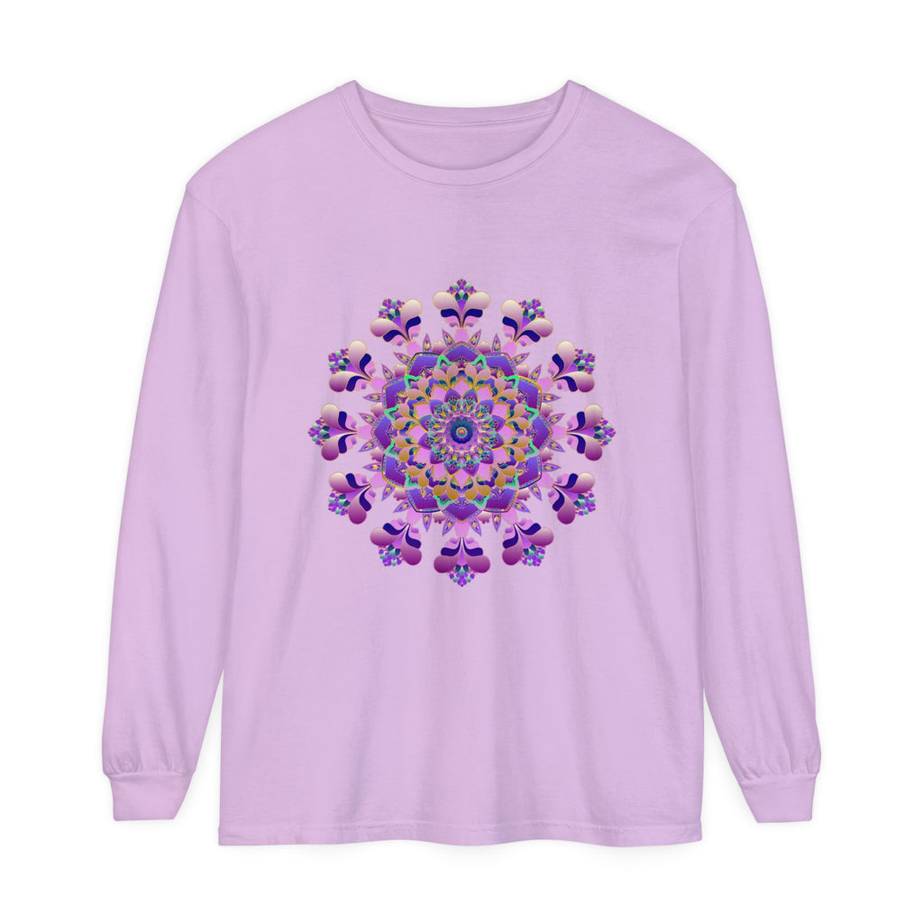 A vibrant and intricate mandala design adorns this unisex long sleeve t-shirt