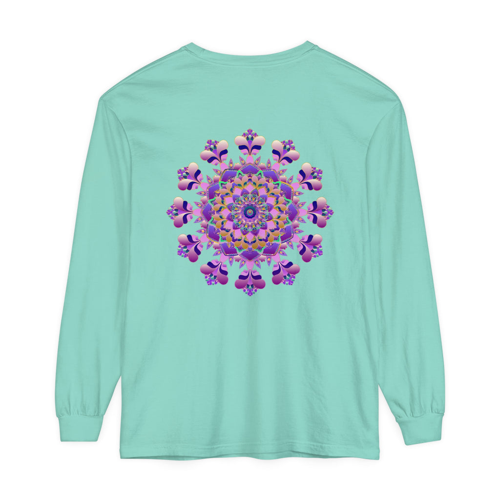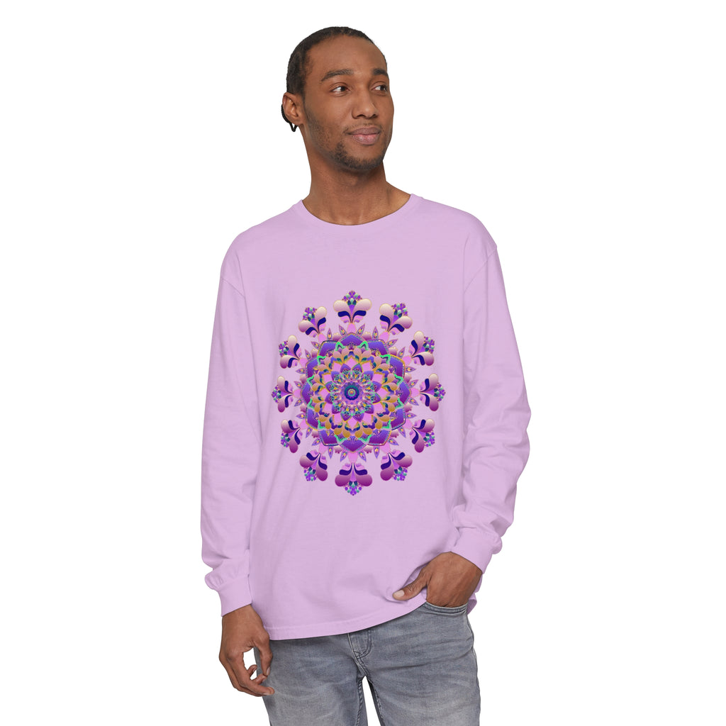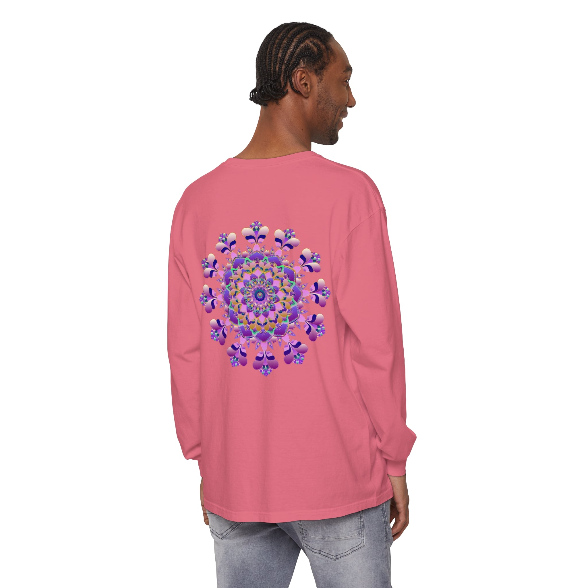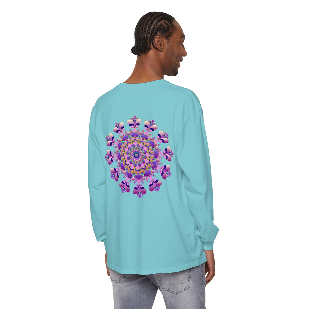 Colorful and detailed long sleeve t-shirt with intricate mandala design for men and women