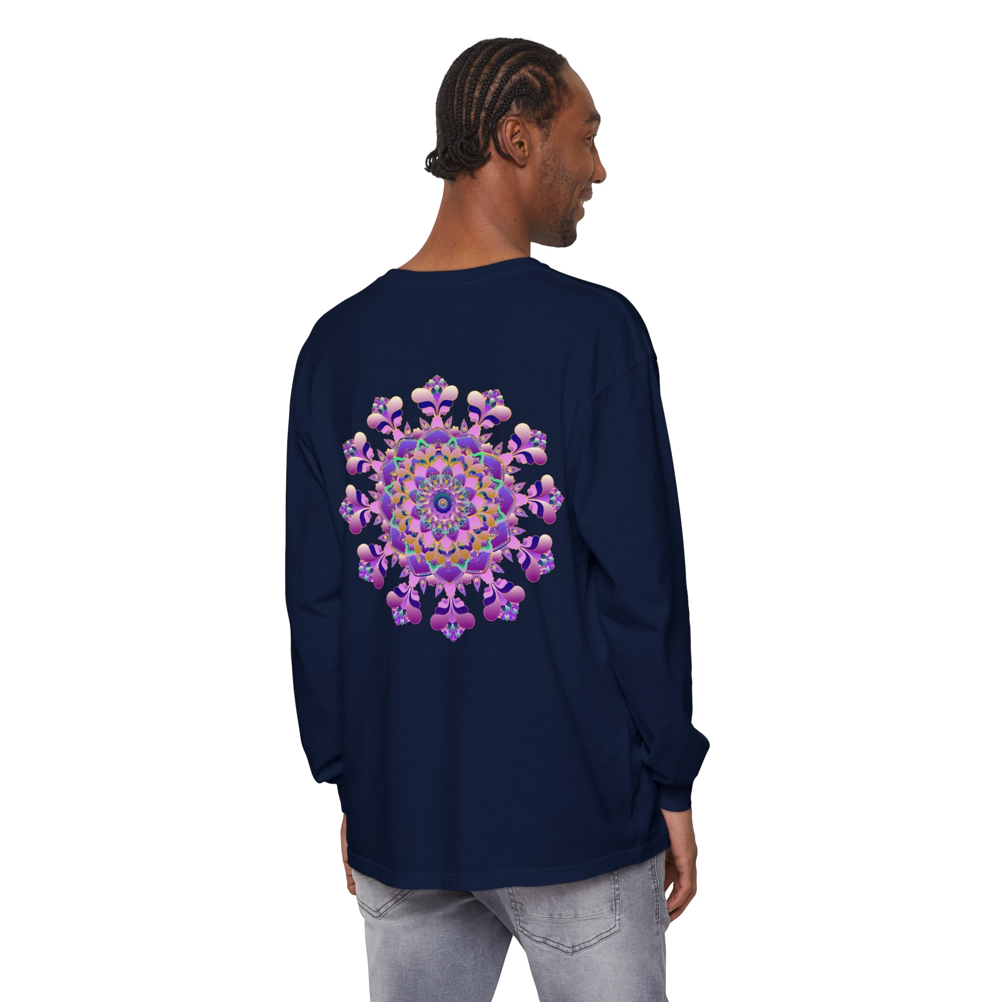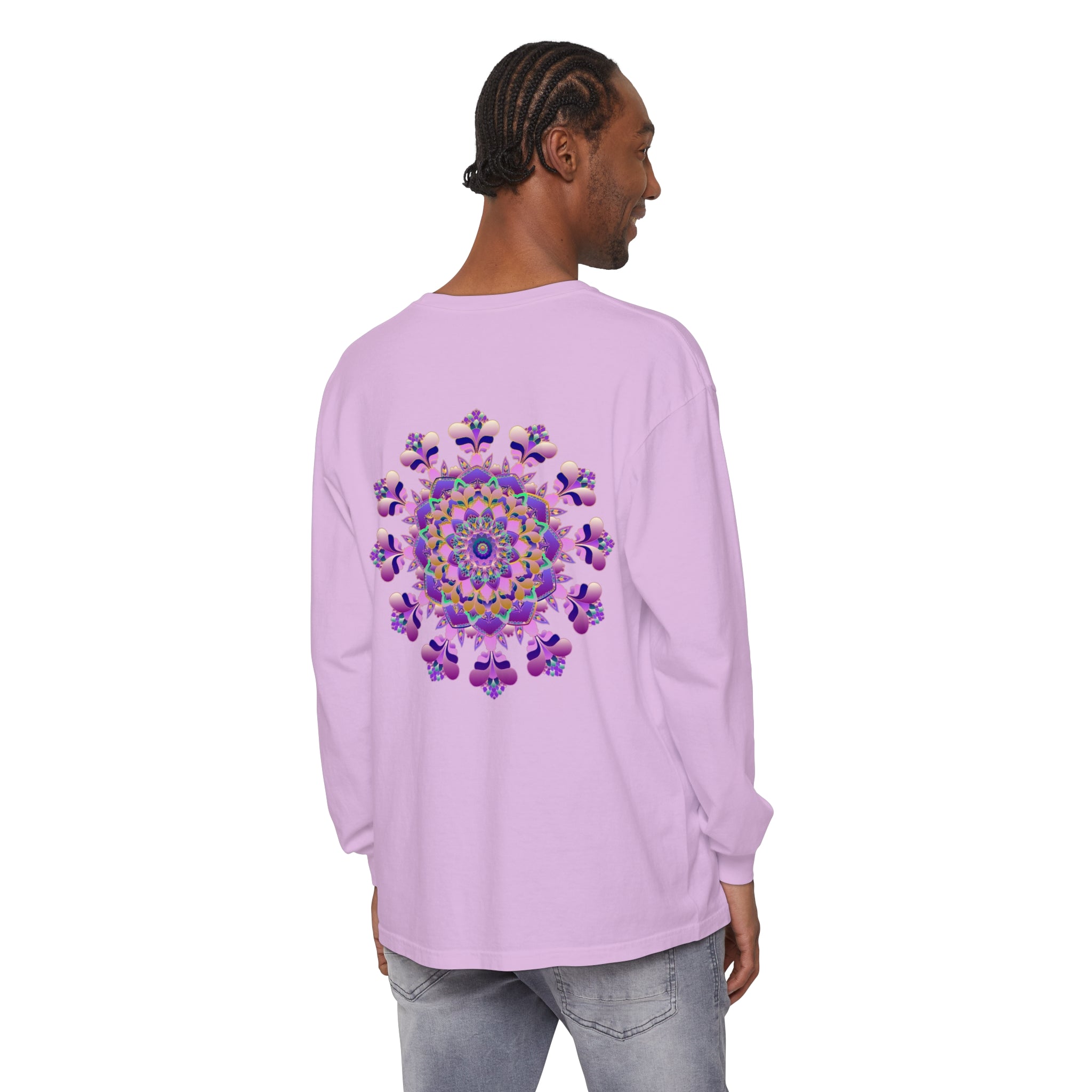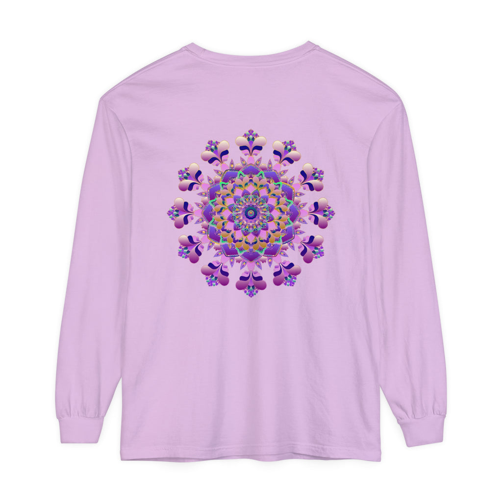 Colorful and detailed long sleeve t-shirt with intricate mandala design for men and women