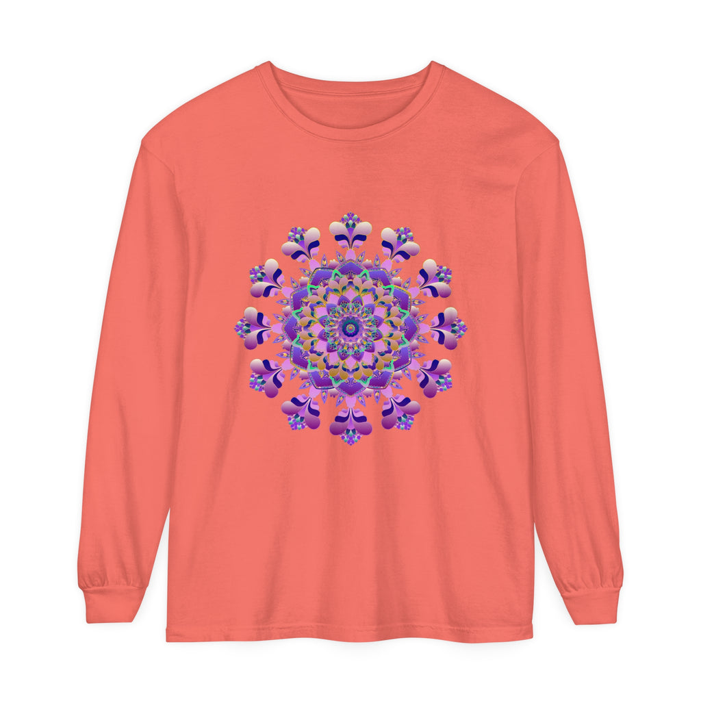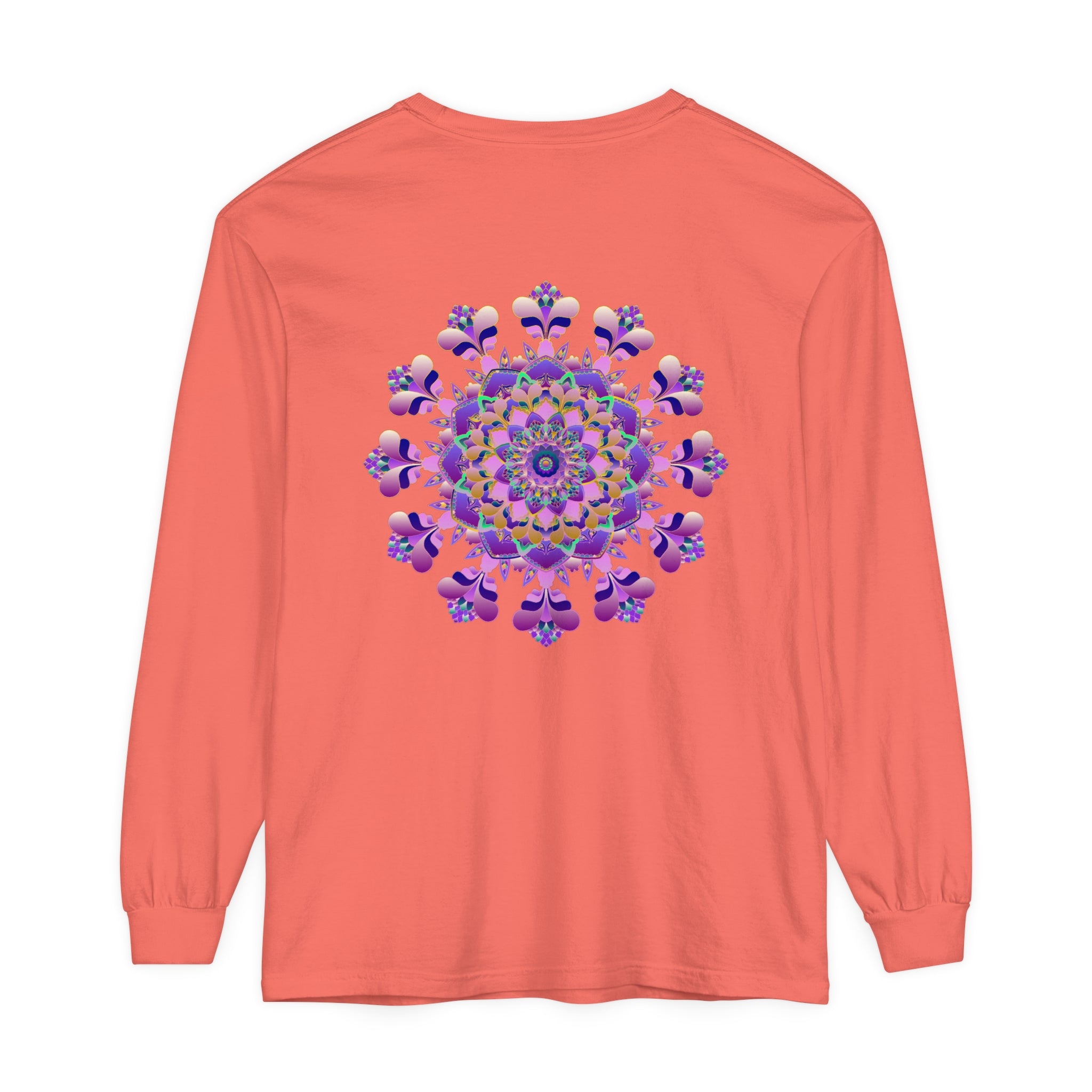 Intricate mandala design long sleeve t-shirt in vibrant colors for all genders