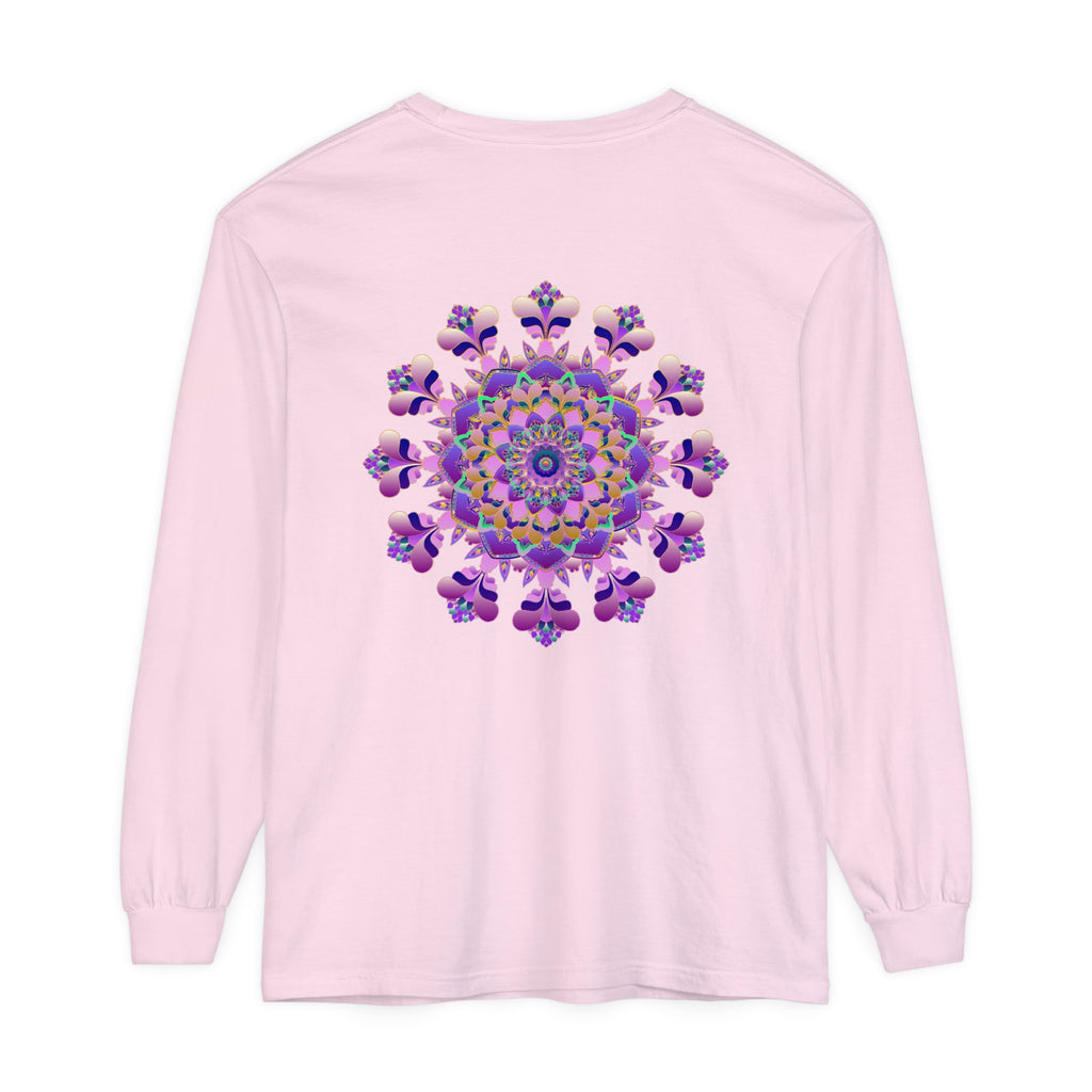 Unisex long sleeve t-shirt featuring an intricate mandala design in vibrant colors