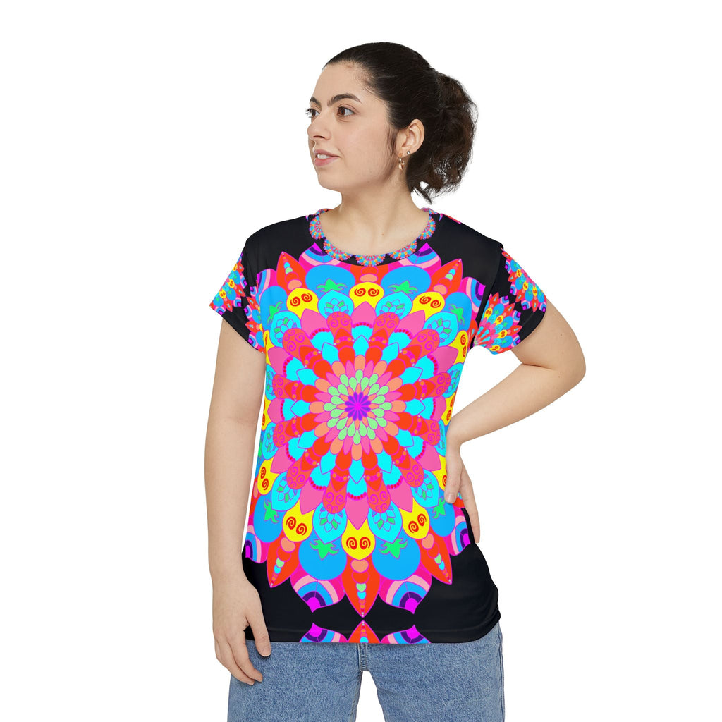 Bring a touch of mindful elegance into your life and let your uniqueness shine with this colorful mandala women's t-shirt. Perfect for those who seek to express their vibrant spirit!
