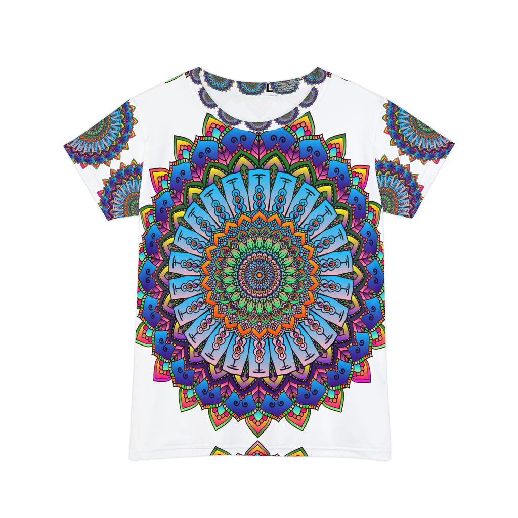 Mandala Design Women's Short Sleeve Tee in Bright Rainbow Hues