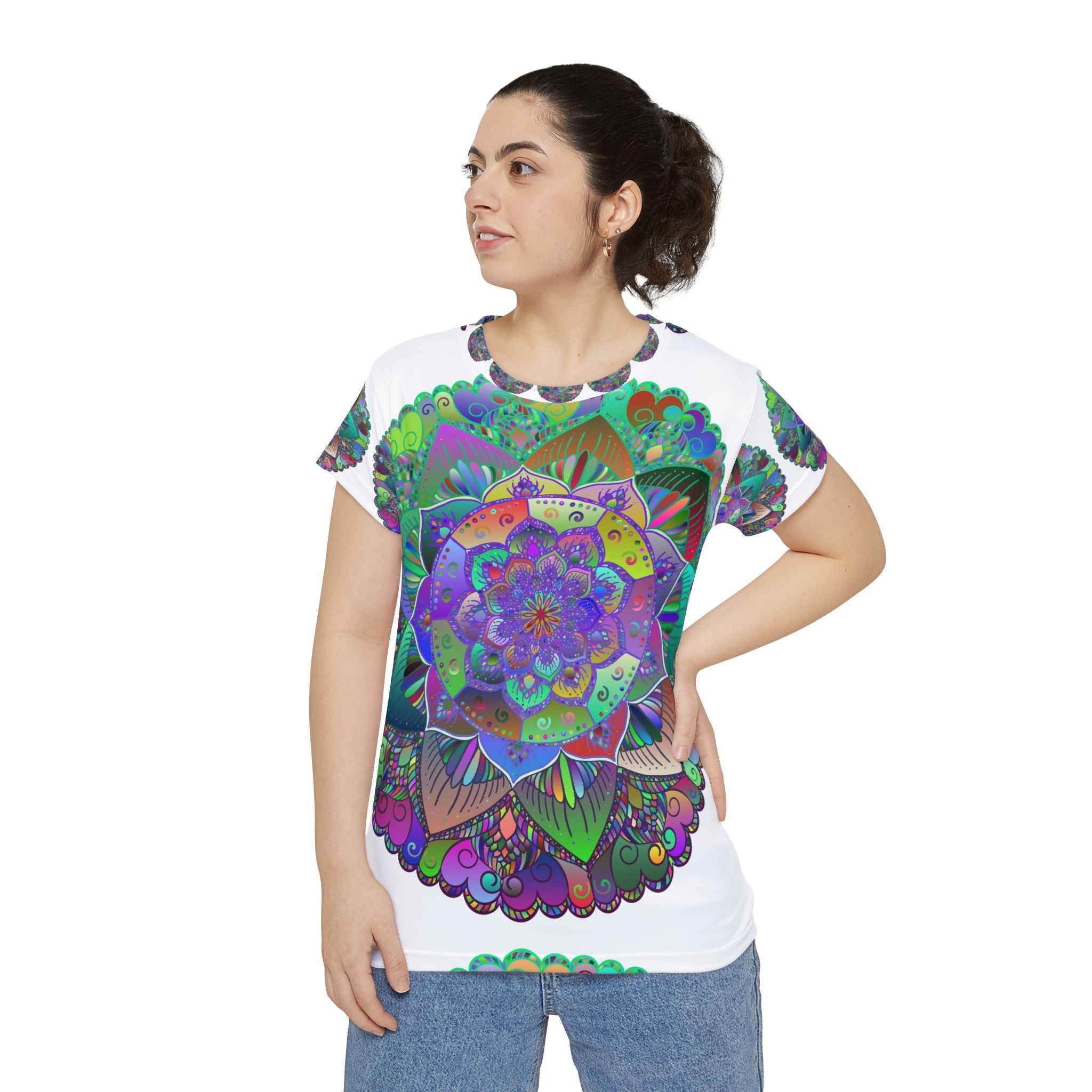 Immerse yourself in a vibrant world of color and creativity with this stunning short sleeve tee, featuring a captivating mandala design that radiates joy and serenity. Each intricate detail bursts forth in a dazzling array of hues, creating a visual story that not only enhances your wardrobe but also uplifts your spirit. This tee is the perfect expression of a bohemian lifestyle, inviting you to celebrate the beauty of daily wear.