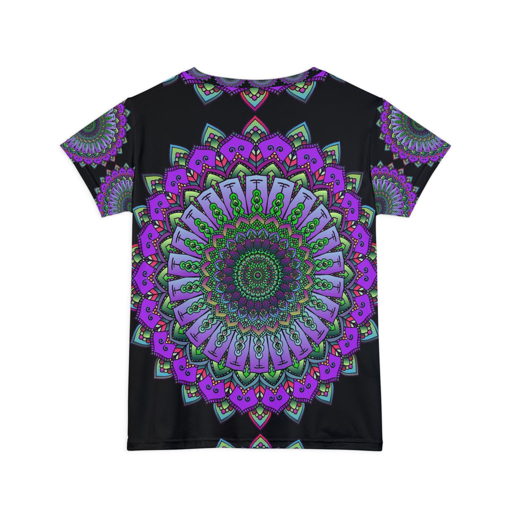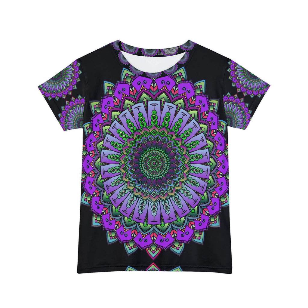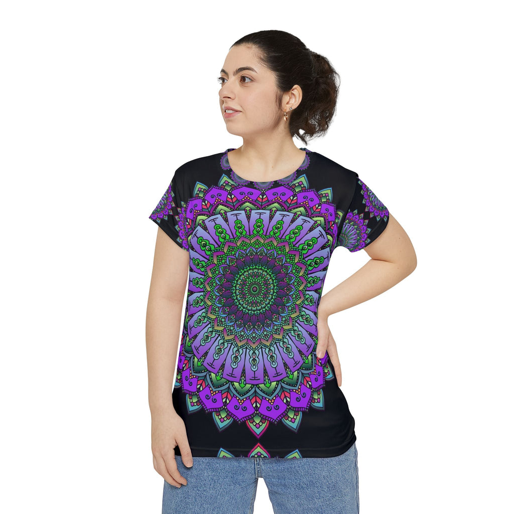 Mandala Art Women's Tee in Bold Purple and Green Tones