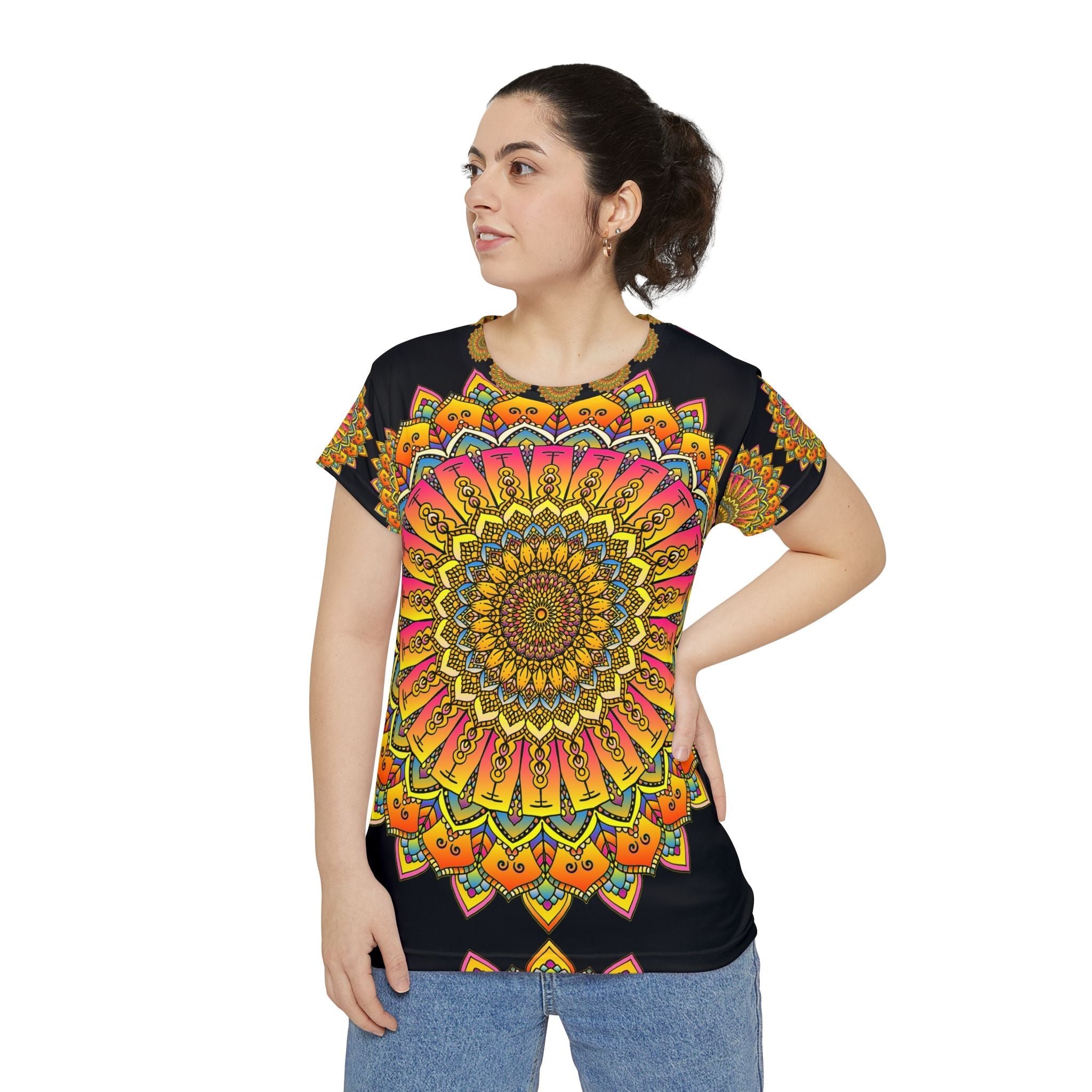 Radiant Mandala Women's Short Sleeve T-Shirt in Bold Orange and Pink