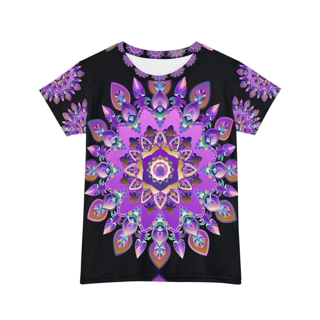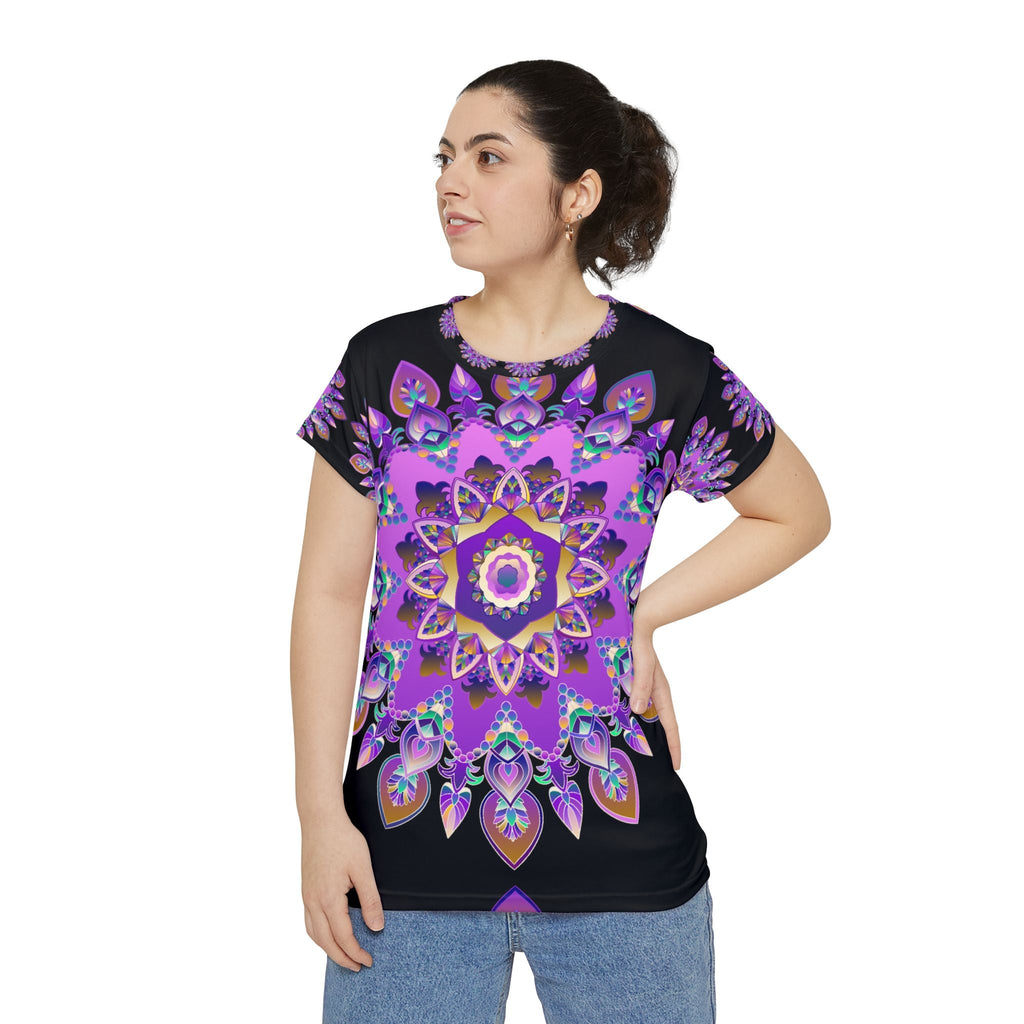 Mandala Blossom Women's T-Shirt in Rich Purple and Black Tones