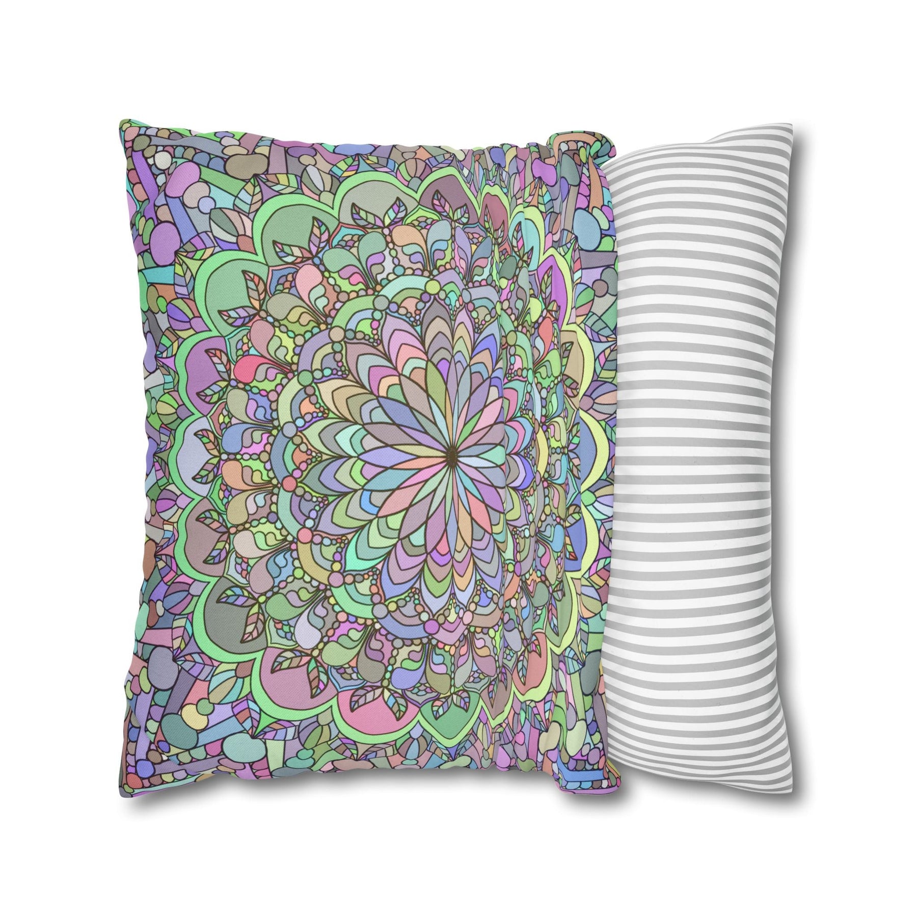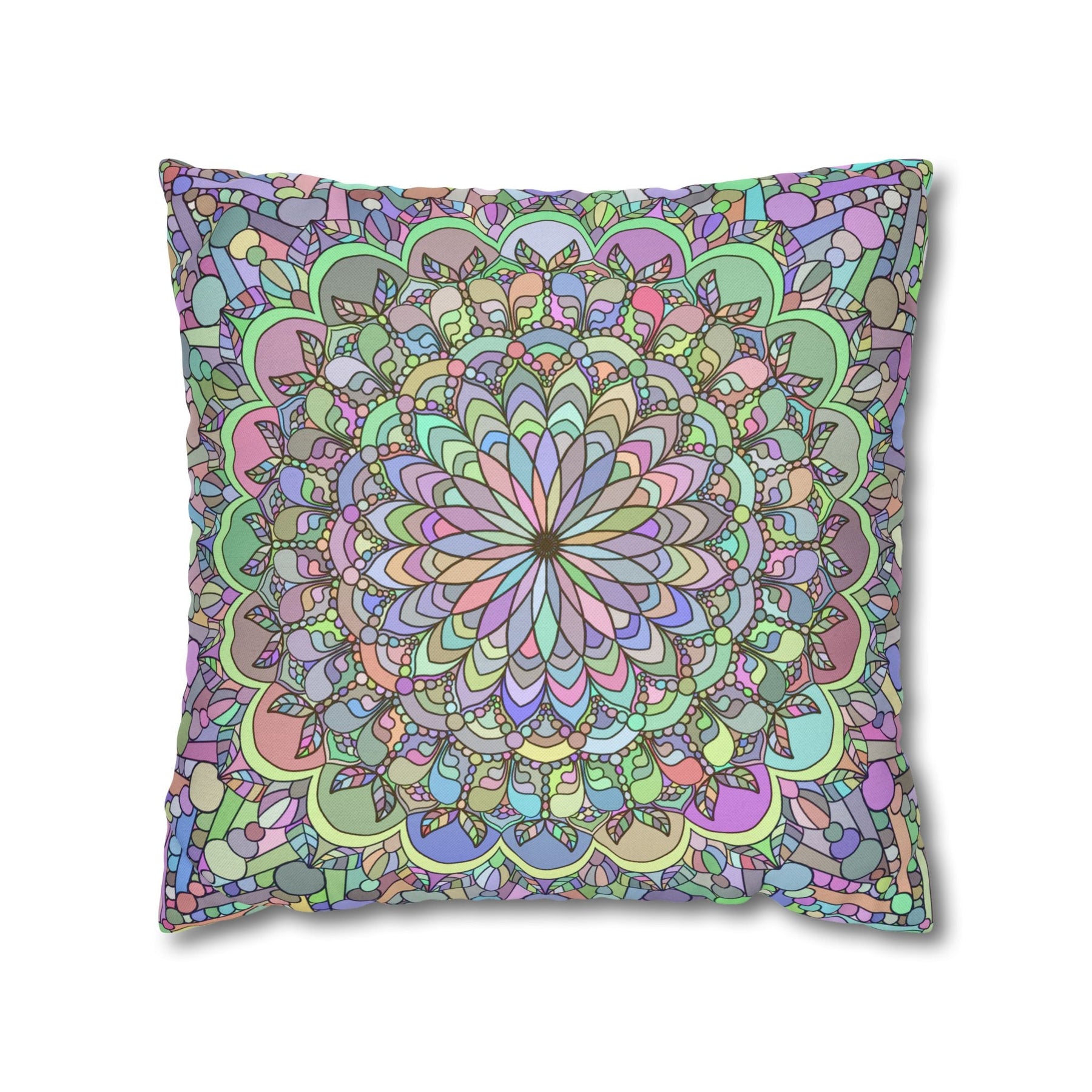 Discover a vibrant addition to your home decor with this enchanting mandala art pillowcase. Adorned with a mesmerizing array of pastel colors, the intricate design draws you into a world where every curve and detail radiates serenity and creativity, making it a delightful centerpiece for any room.