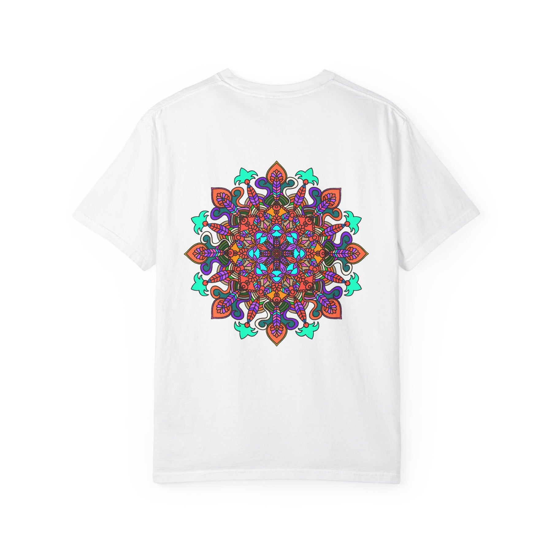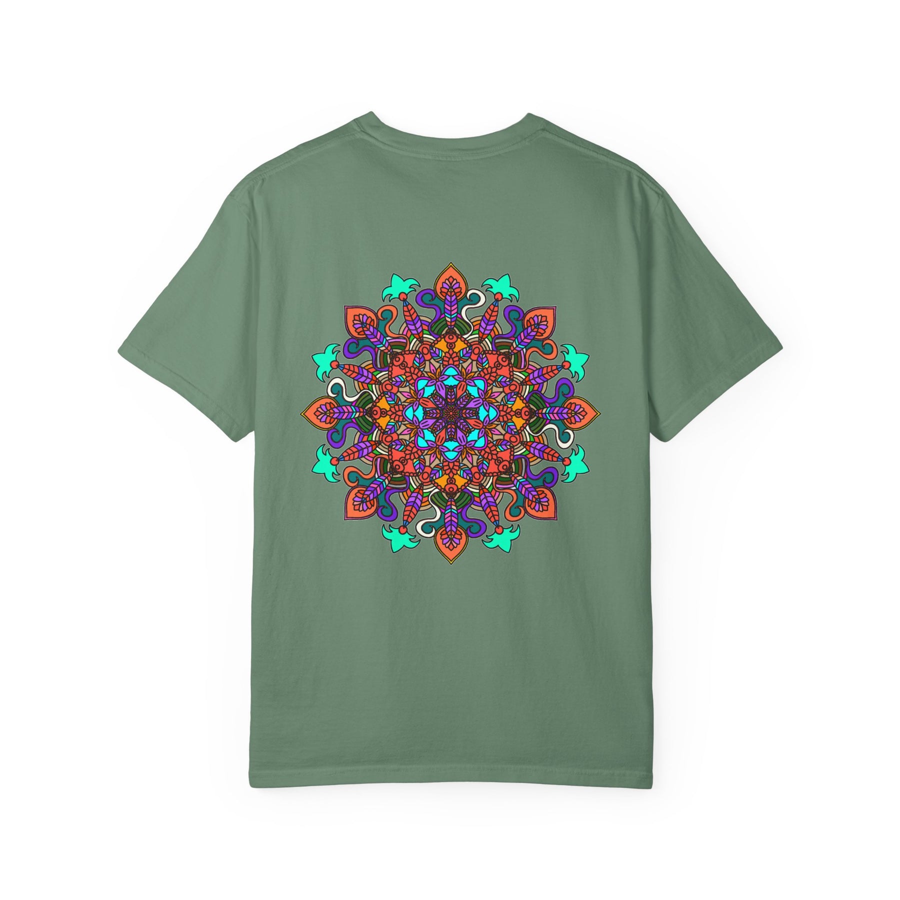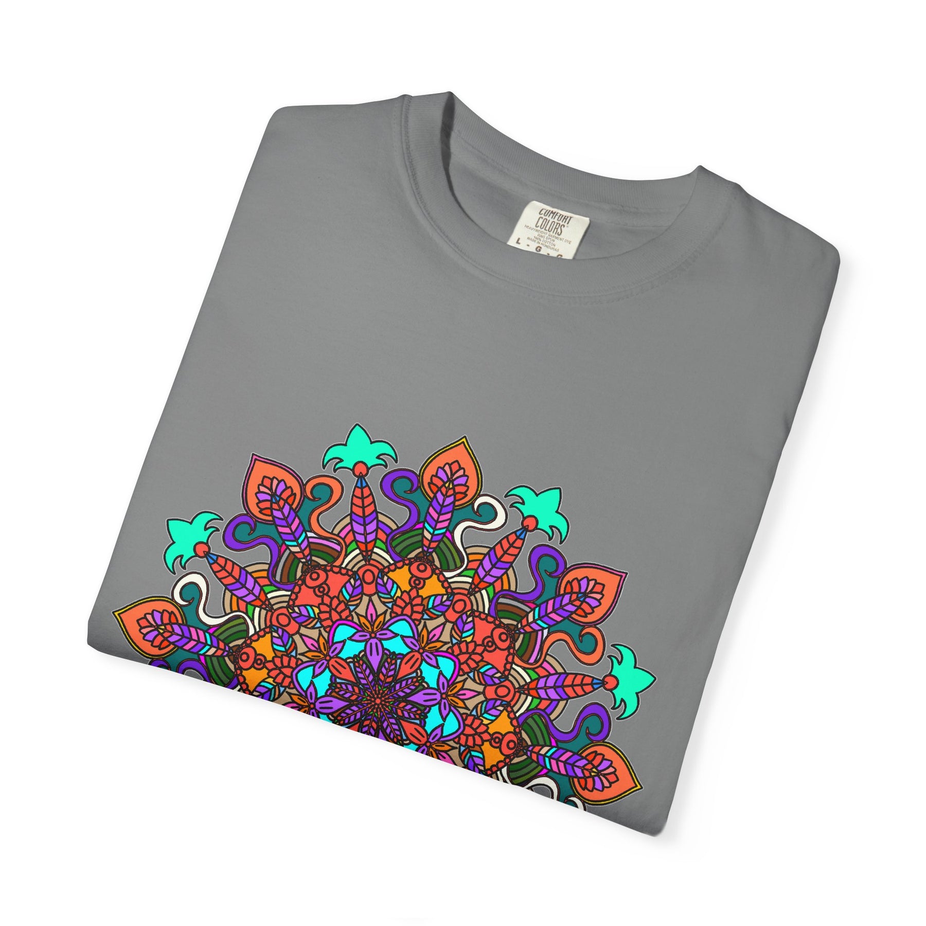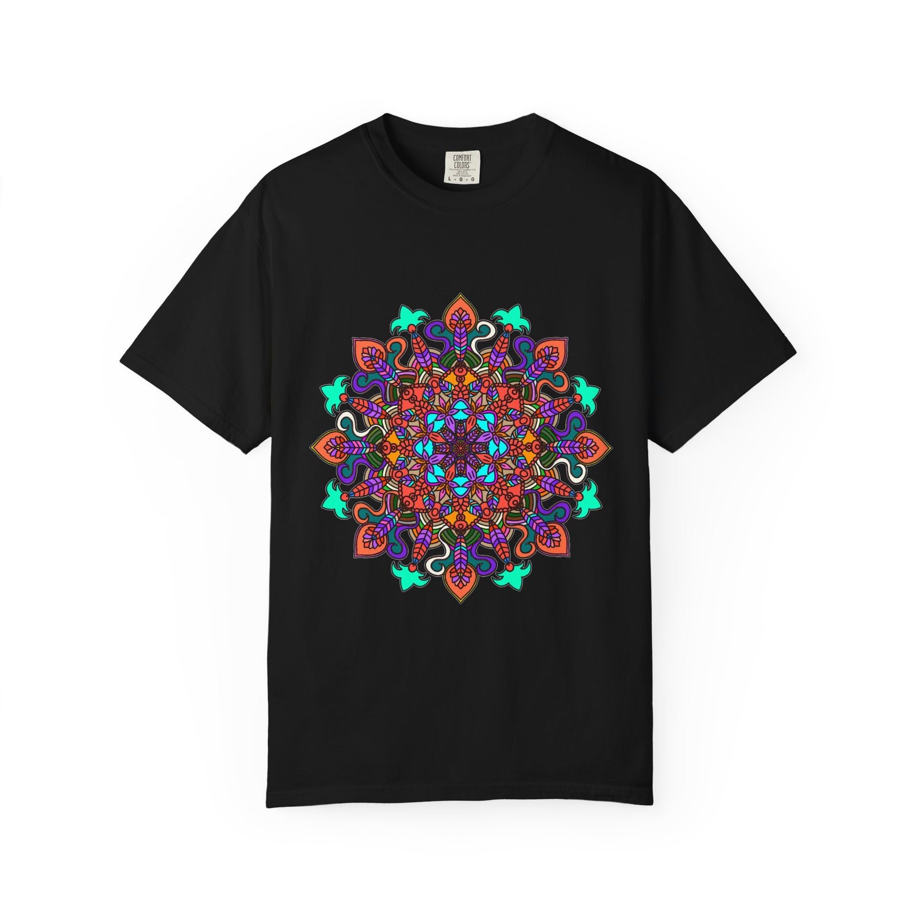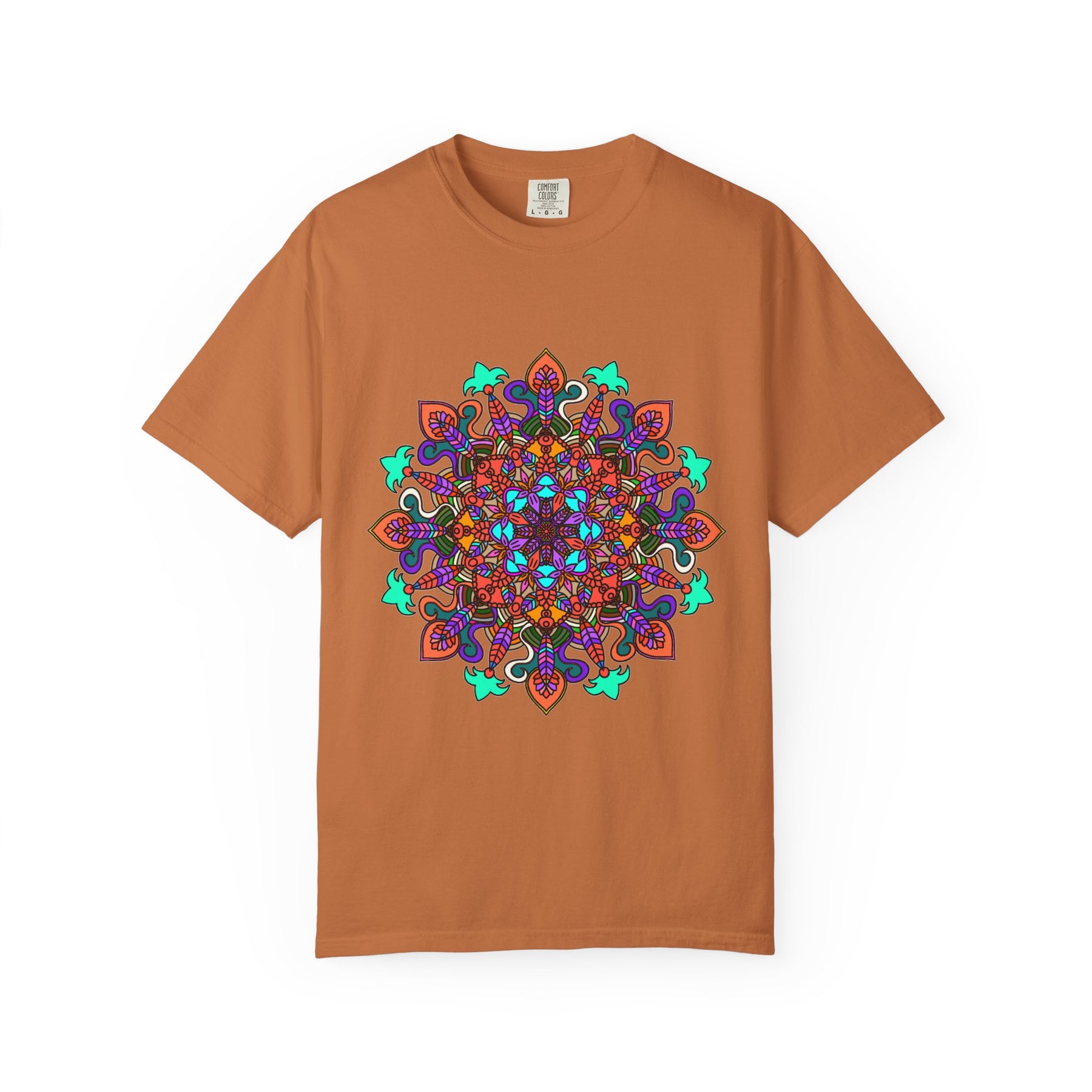 Experience the vibrant allure of a mesmerizing mandala art piece that brings life to any outfit. This stunning t-shirt radiates creativity, featuring an intricate mandala design bursting with vivid colors and intricate details. Each swirl and pattern invites you to embrace mindfulness and express your unique style, making it perfect for yoga enthusiasts and art lovers alike.